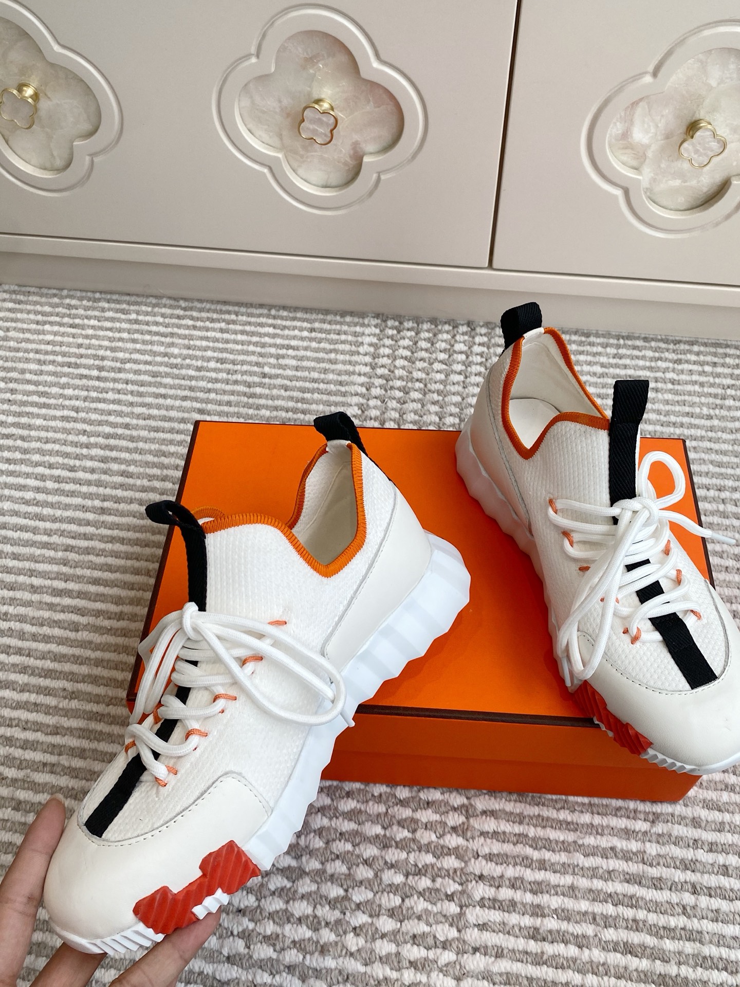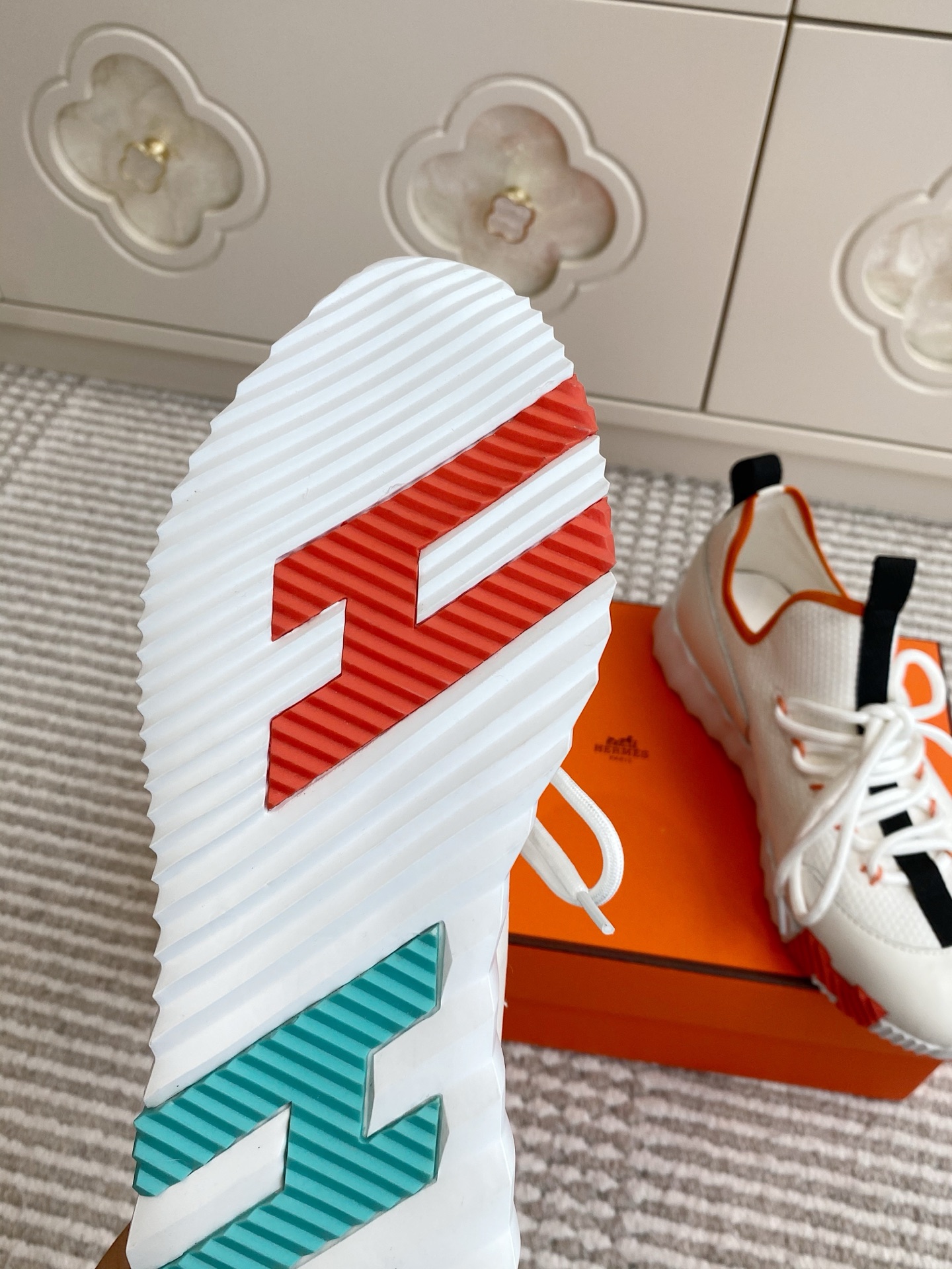 這款鞋子是AAAAA 1:1 質量(非常棒). 使用了和原版一模一樣的材料. 商標部分也保持了和愛馬仕/Hermes一樣. 圖片拍攝是實物鞋子拍攝, 您所收到的實物保證和我們圖片一模一樣.