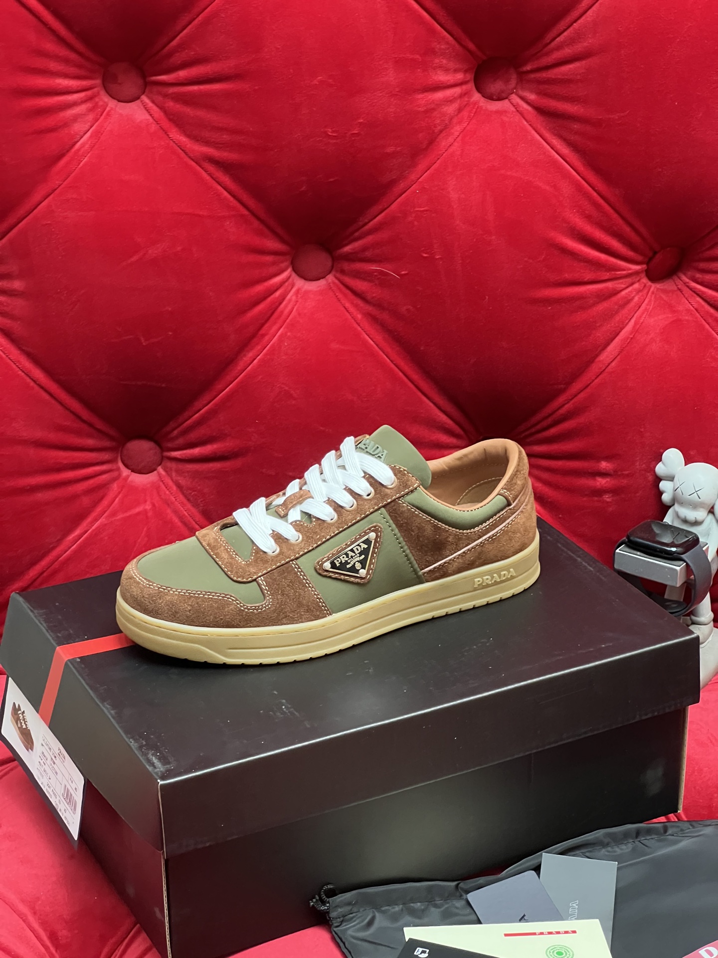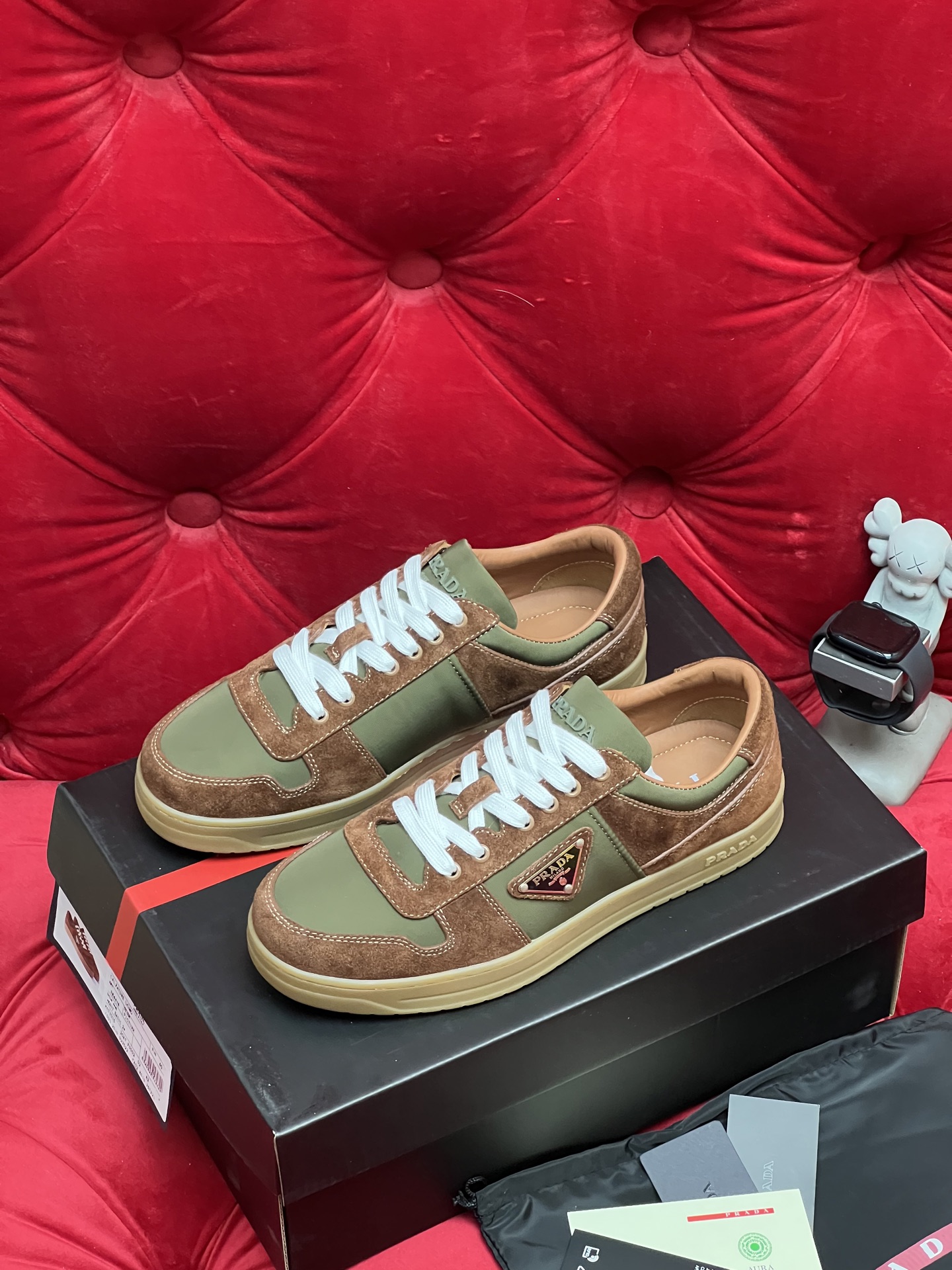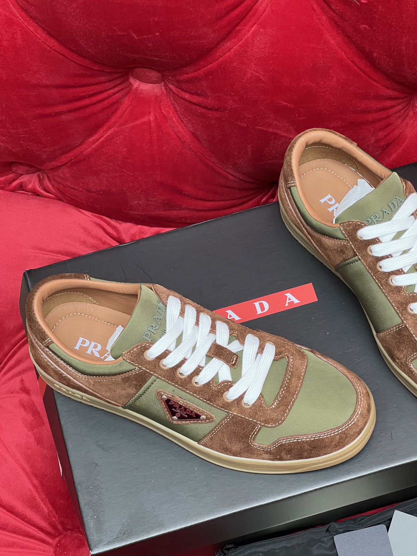 這款鞋子是AAAAA 1:1 質量(非常棒). 使用了和原版一模一樣的材料. 商標部分也保持了和普拉達/Prada一樣. 圖片拍攝是實物鞋子拍攝, 您所收到的實物保證和我們圖片一模一樣.