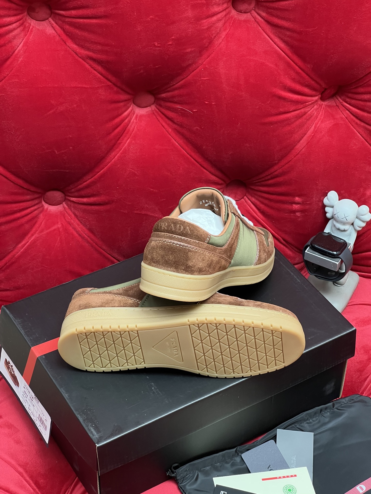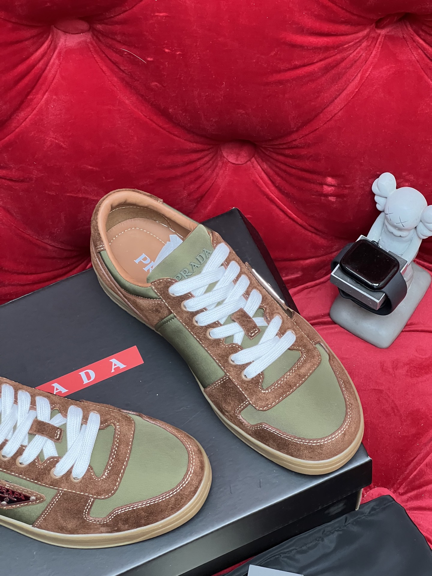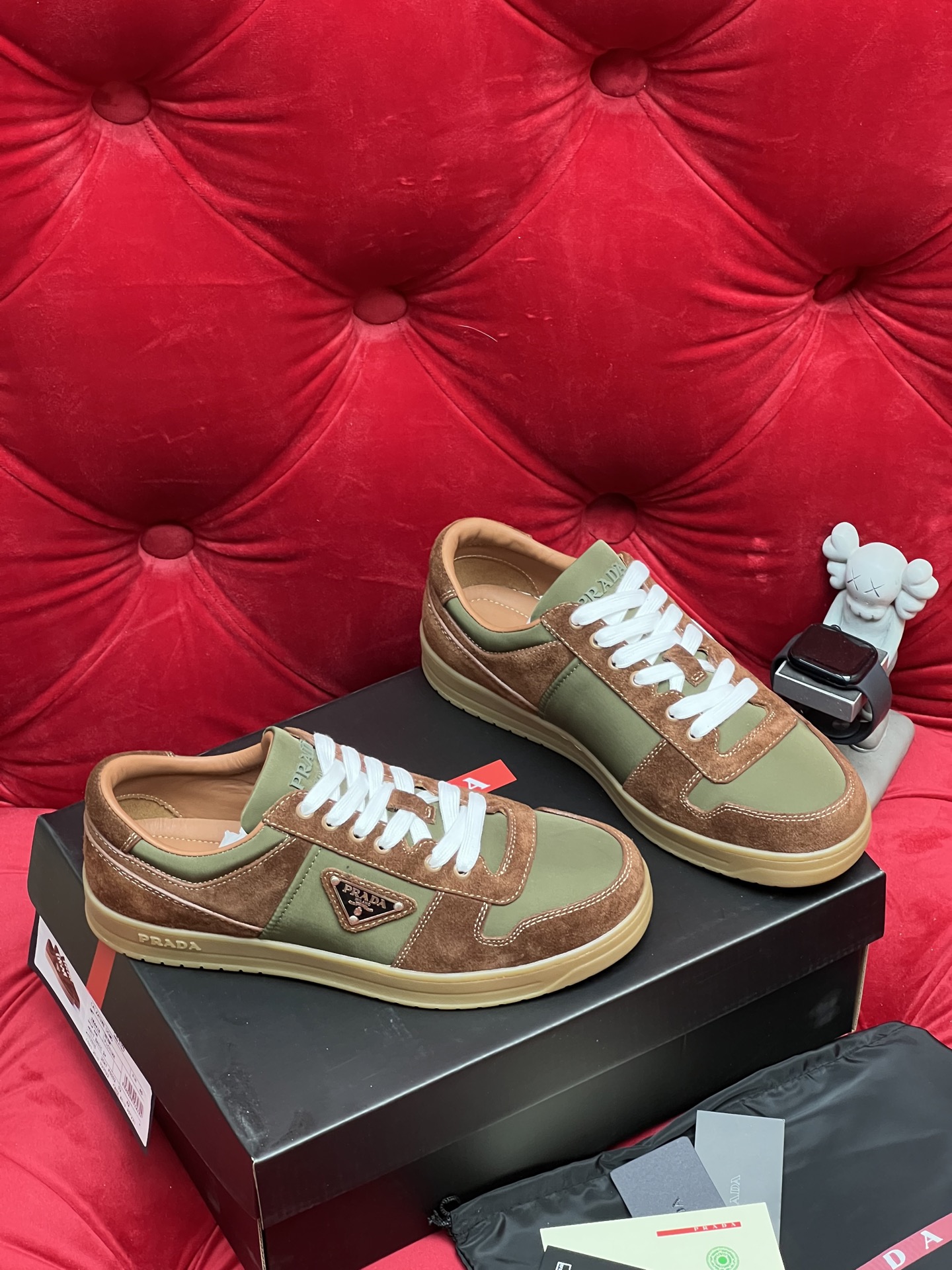 這款鞋子是AAAAA 1:1 質量(非常棒). 使用了和原版一模一樣的材料. 商標部分也保持了和普拉達/Prada一樣. 圖片拍攝是實物鞋子拍攝, 您所收到的實物保證和我們圖片一模一樣.