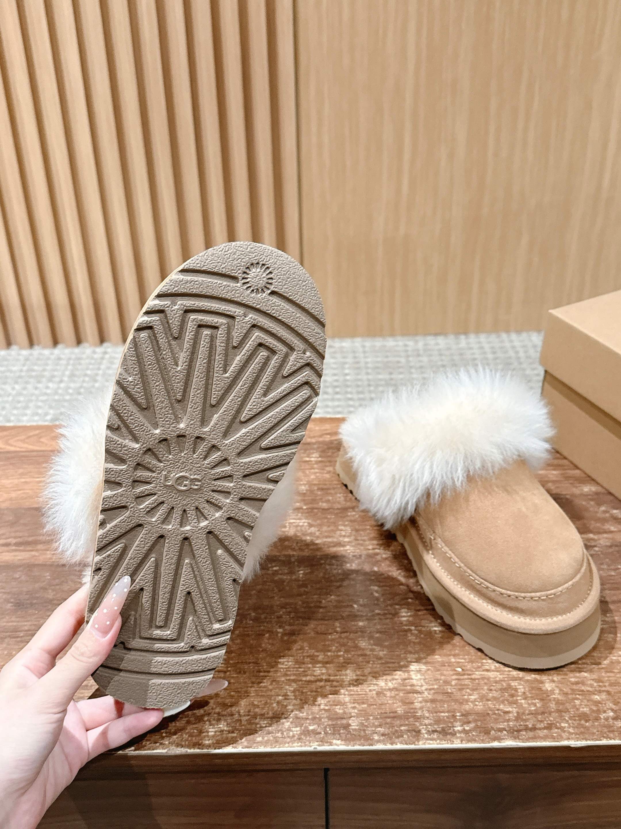 這款鞋子是AAAAA 1:1 質量(非常棒). 使用了和原版一模一樣的材料. 商標部分也保持了和UGG一樣. 圖片拍攝是實物鞋子拍攝, 您所收到的實物保證和我們圖片一模一樣.
