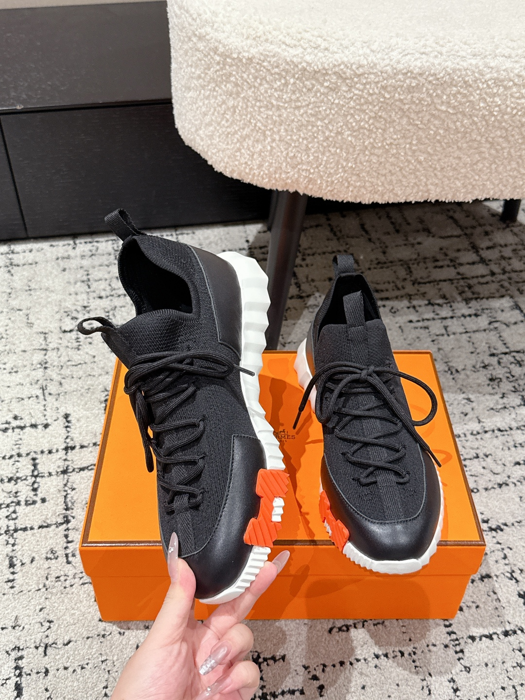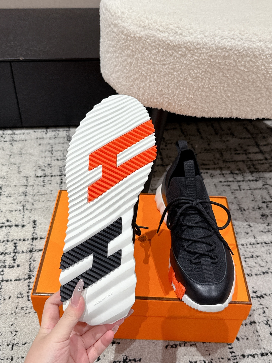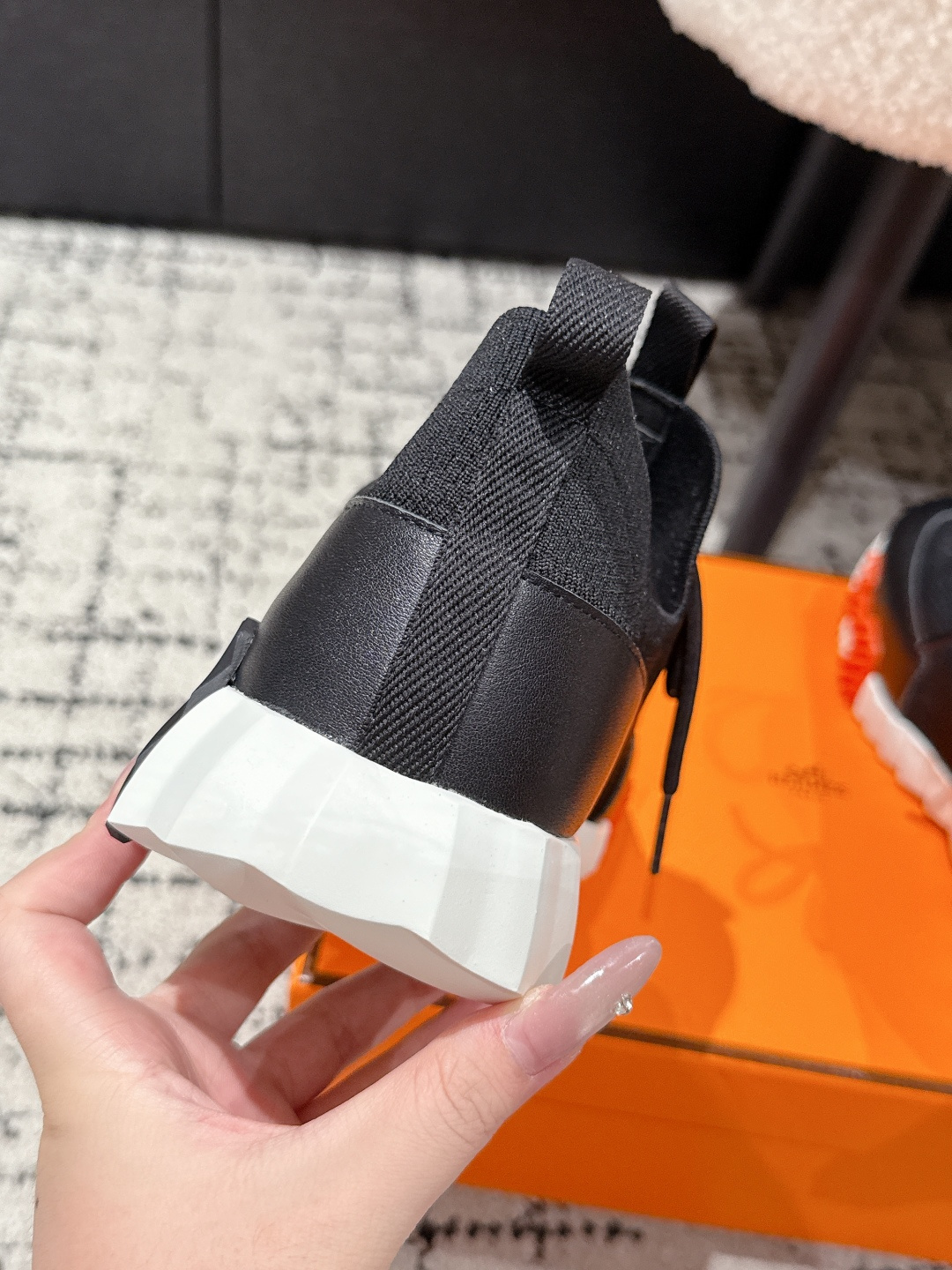 這款鞋子是AAAAA 1:1 質量(非常棒). 使用了和原版一模一樣的材料. 商標部分也保持了和愛馬仕/Hermes一樣. 圖片拍攝是實物鞋子拍攝, 您所收到的實物保證和我們圖片一模一樣.