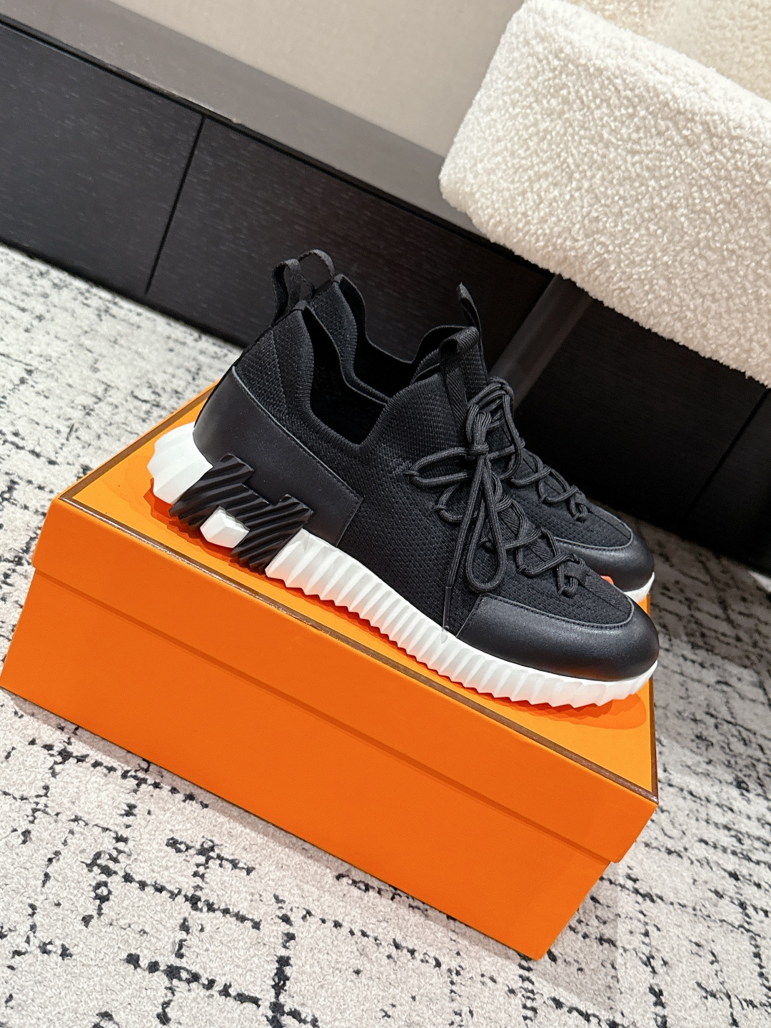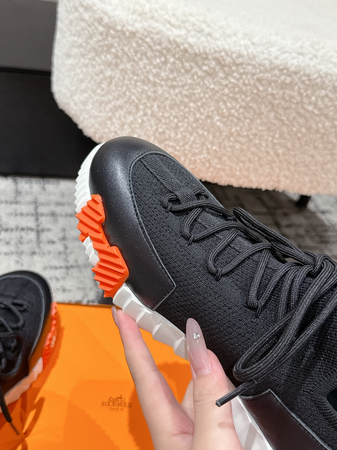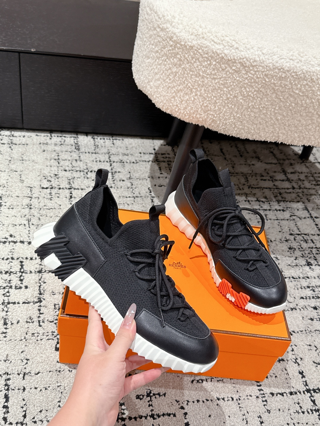 這款鞋子是AAAAA 1:1 質量(非常棒). 使用了和原版一模一樣的材料. 商標部分也保持了和愛馬仕/Hermes一樣. 圖片拍攝是實物鞋子拍攝, 您所收到的實物保證和我們圖片一模一樣.