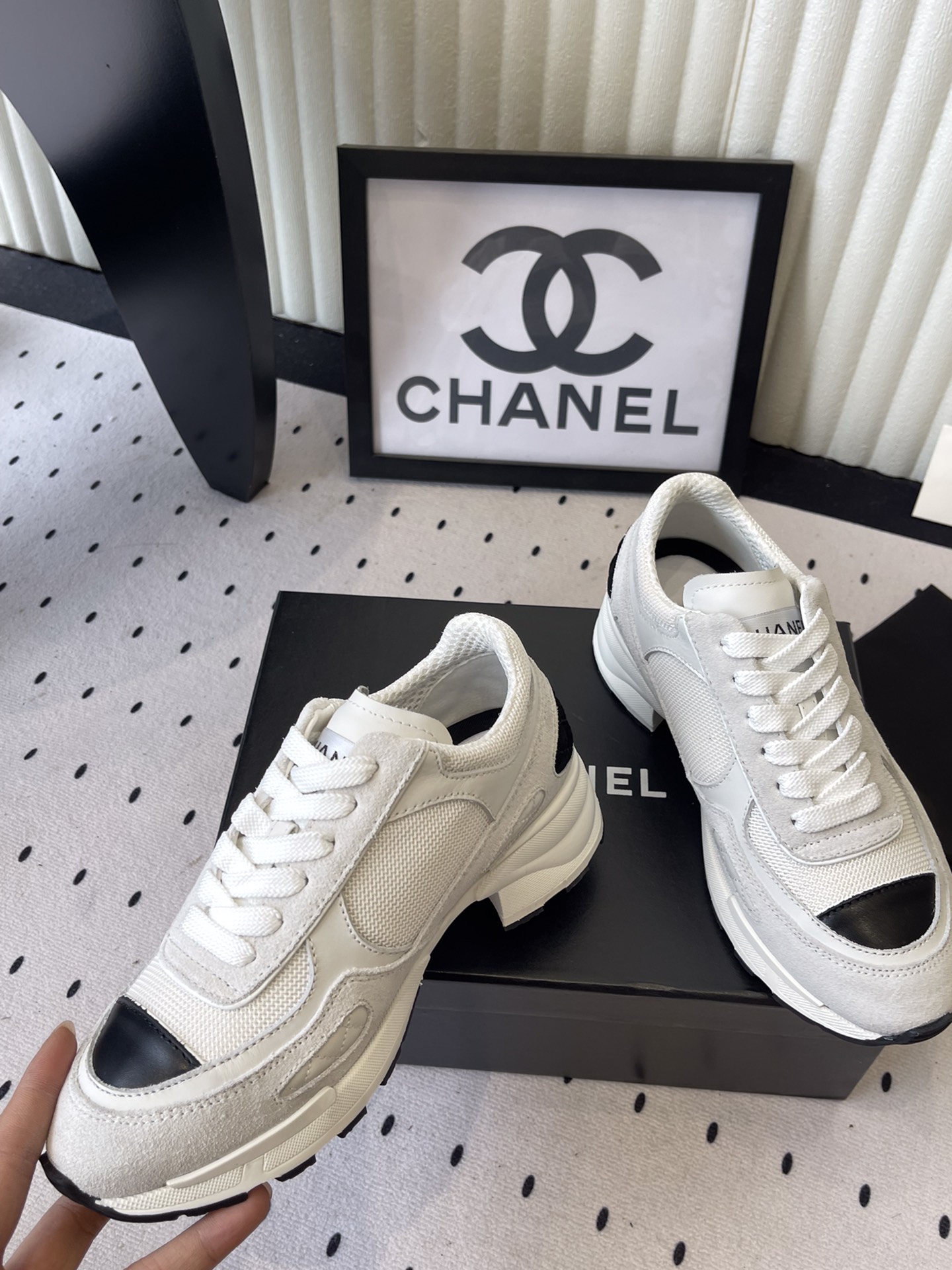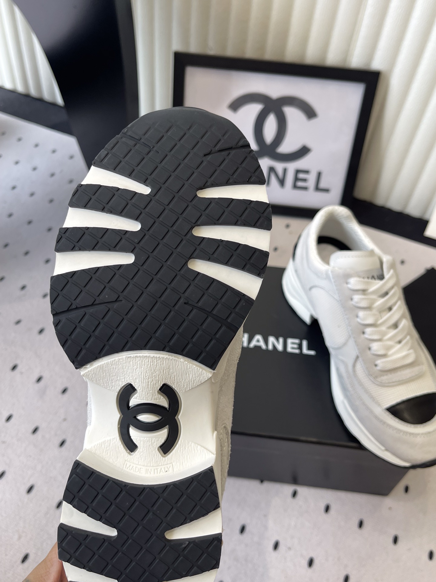 這款鞋子是AAAAA 1:1 質量(非常棒). 使用了和原版一模一樣的材料. 商標部分也保持了和香奈兒/Chanel一樣. 圖片拍攝是實物鞋子拍攝, 您所收到的實物保證和我們圖片一模一樣.