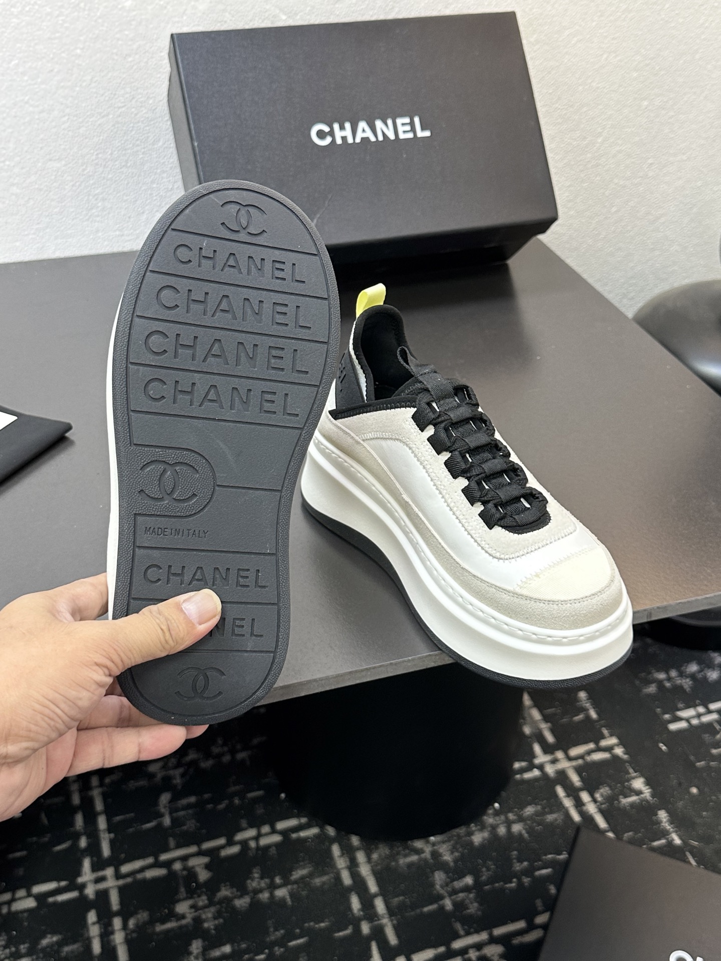 這款鞋子是AAAAA 1:1 質量(非常棒). 使用了和原版一模一樣的材料. 商標部分也保持了和香奈兒/Chanel一樣. 圖片拍攝是實物鞋子拍攝, 您所收到的實物保證和我們圖片一模一樣.