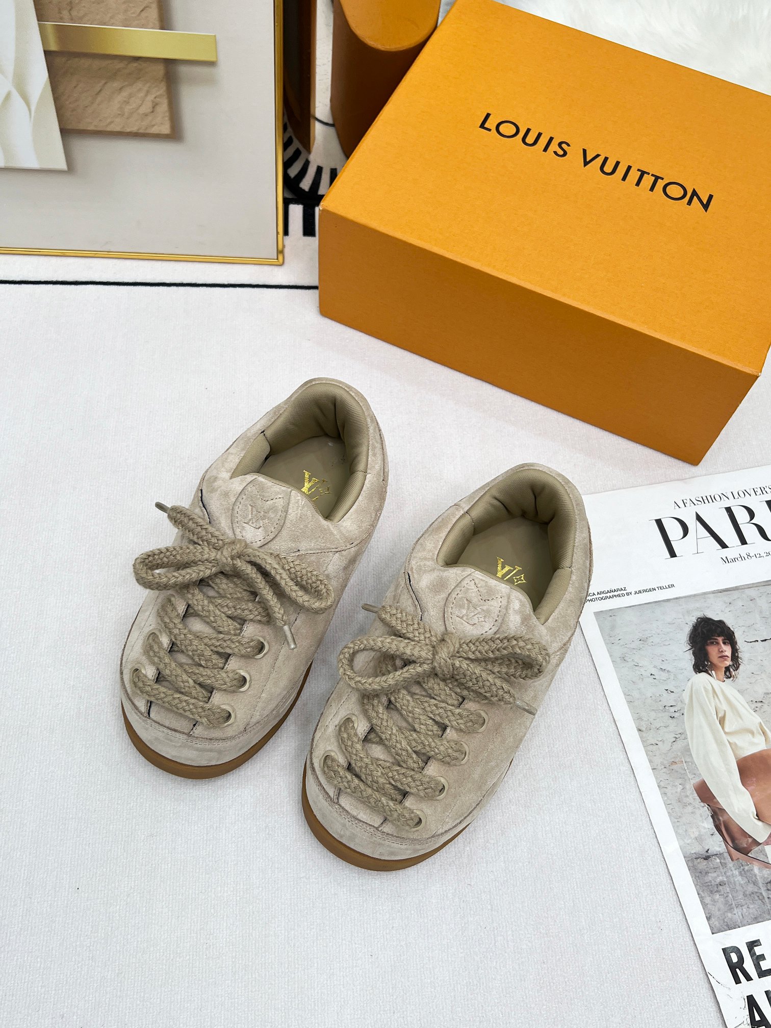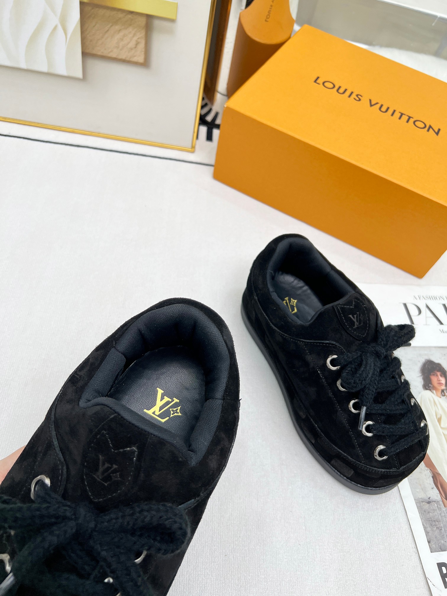 這款鞋子是AAAAA 1:1 質量(非常棒). 使用了和原版一模一樣的材料. 商標部分也保持了和路易威登/Louis Vuitton一樣. 圖片拍攝是實物鞋子拍攝, 您所收到的實物保證和我們圖片一模一樣.