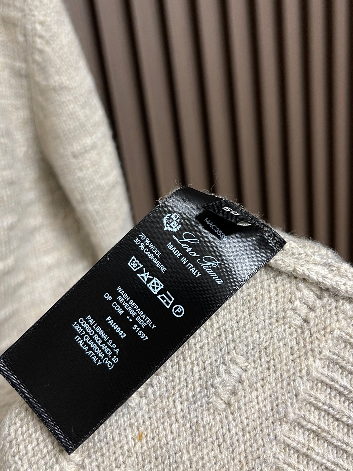 這款衣服是AAAAA 1:1 質量(非常棒). 使用了和原版一模一樣的材料. 商標部分也保持了和Loro Piana一樣. 圖片拍攝是實物衣服拍攝, 您所收到的實物保證和我們圖片一模一樣.