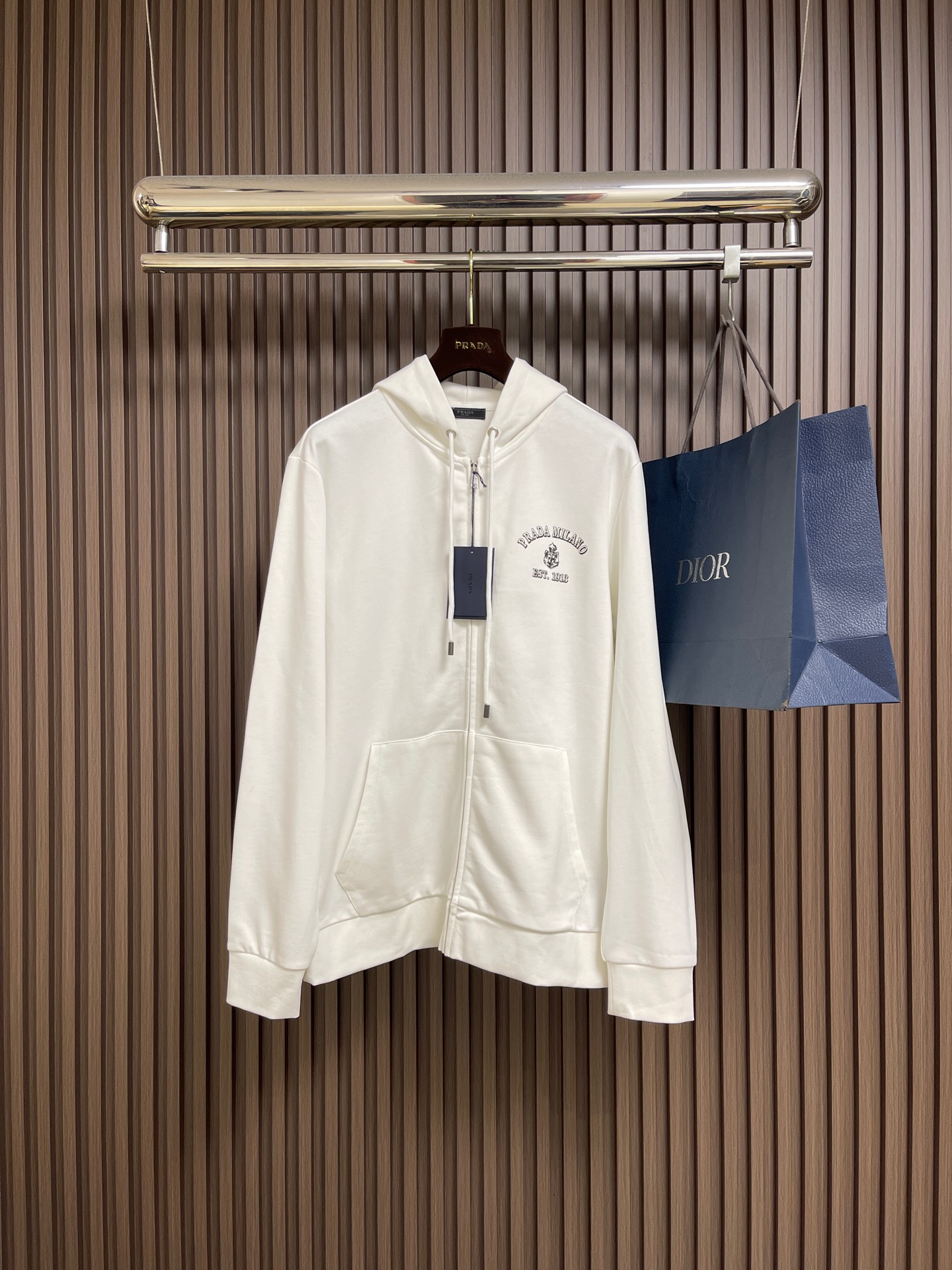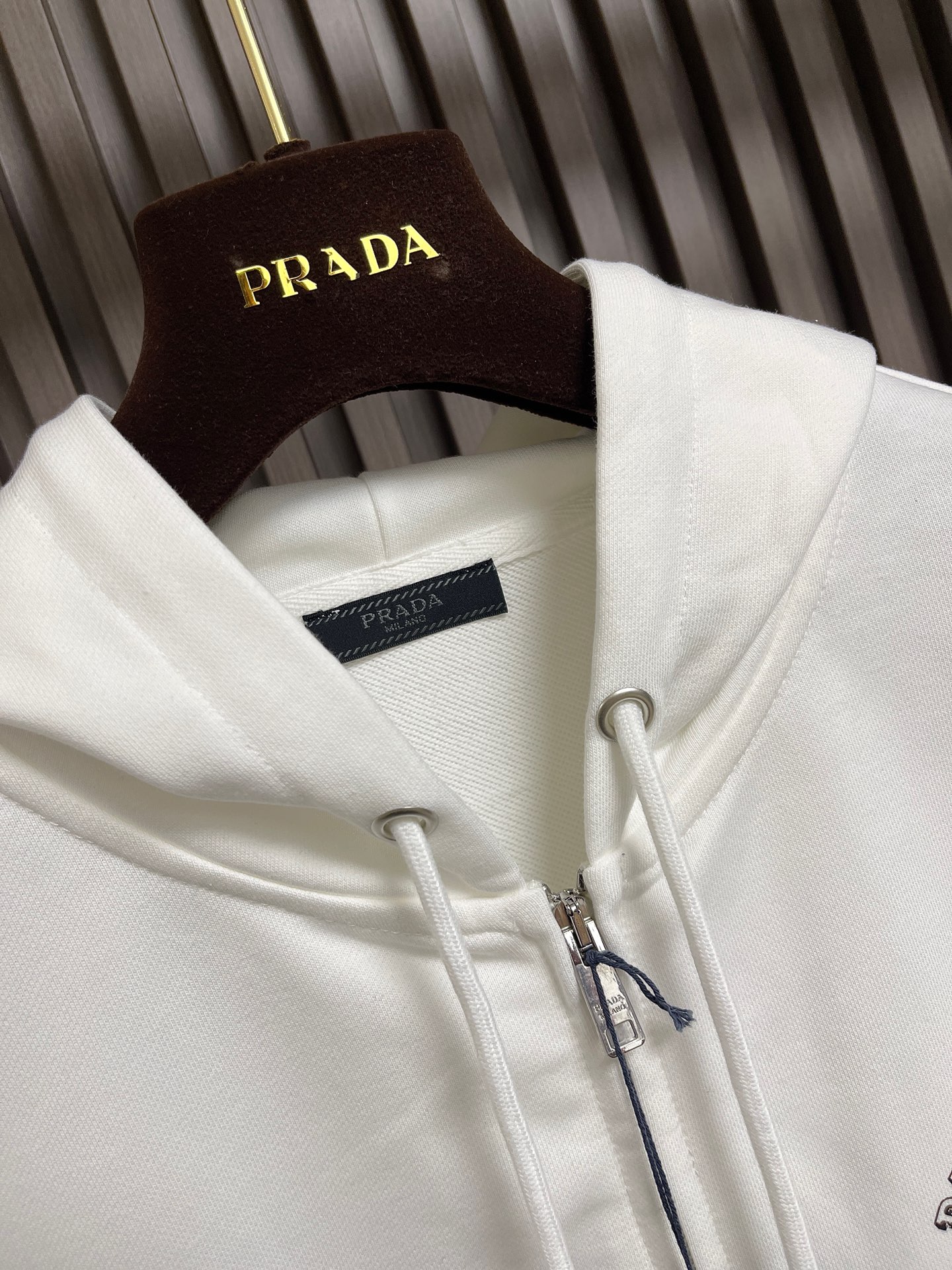這款衣服是AAAAA 1:1 質量(非常棒). 使用了和原版一模一樣的材料. 商標部分也保持了和普拉達/Prada一樣. 圖片拍攝是實物衣服拍攝, 您所收到的實物保證和我們圖片一模一樣.