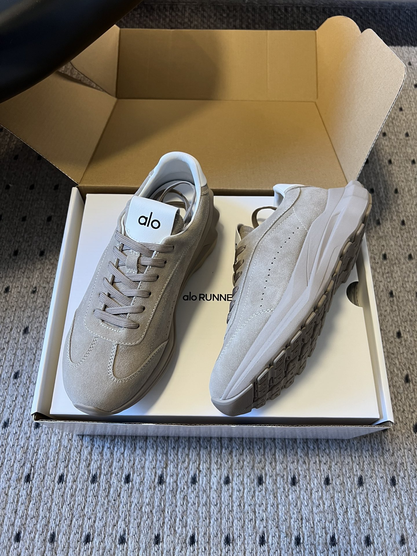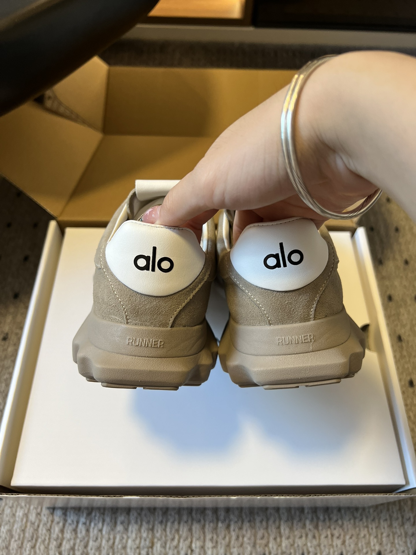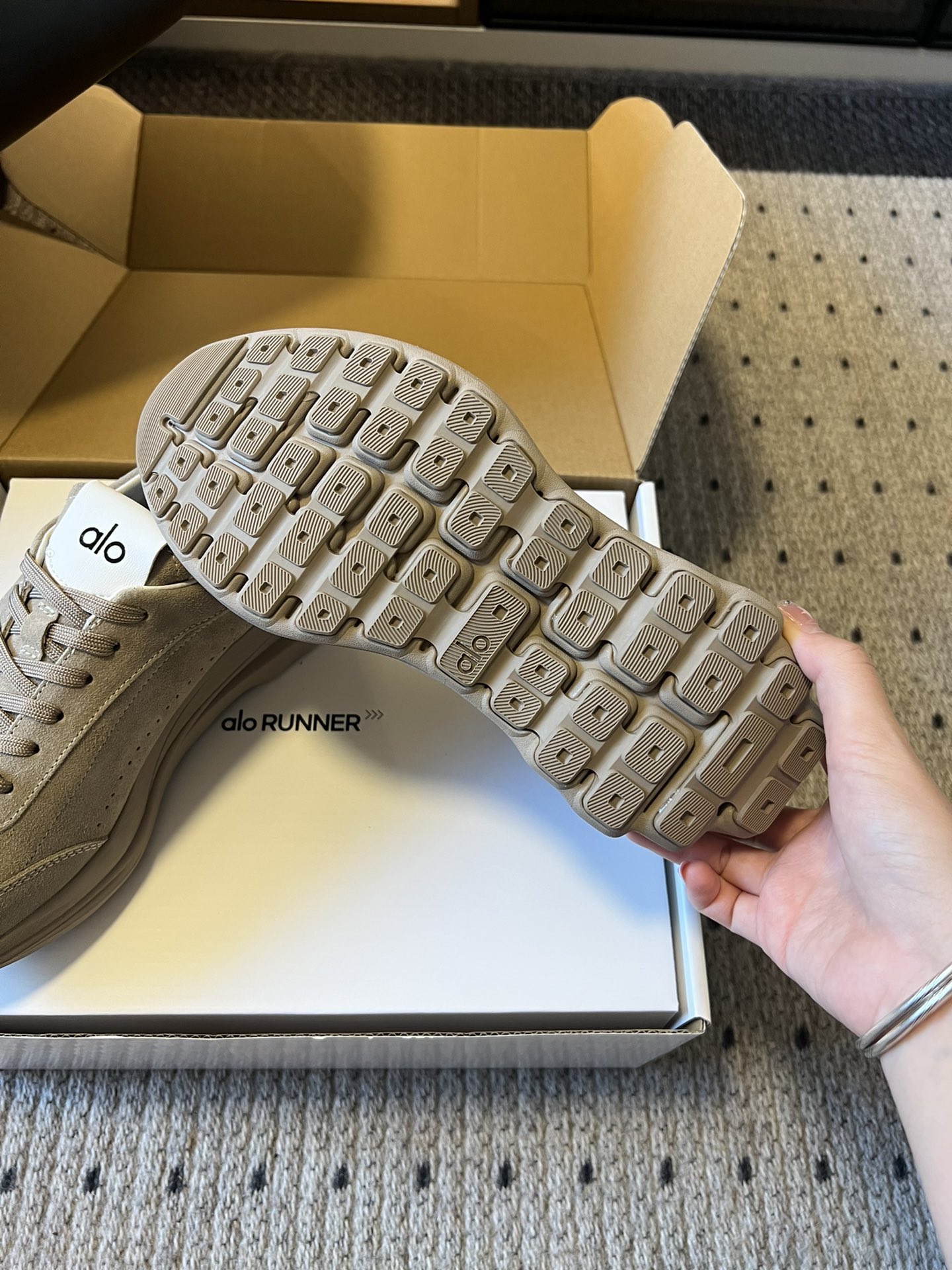 這款鞋子是AAAAA 1:1 質量(非常棒). 使用了和原版一模一樣的材料. 商標部分也保持了和Alo Yoga一樣. 圖片拍攝是實物鞋子拍攝, 您所收到的實物保證和我們圖片一模一樣.