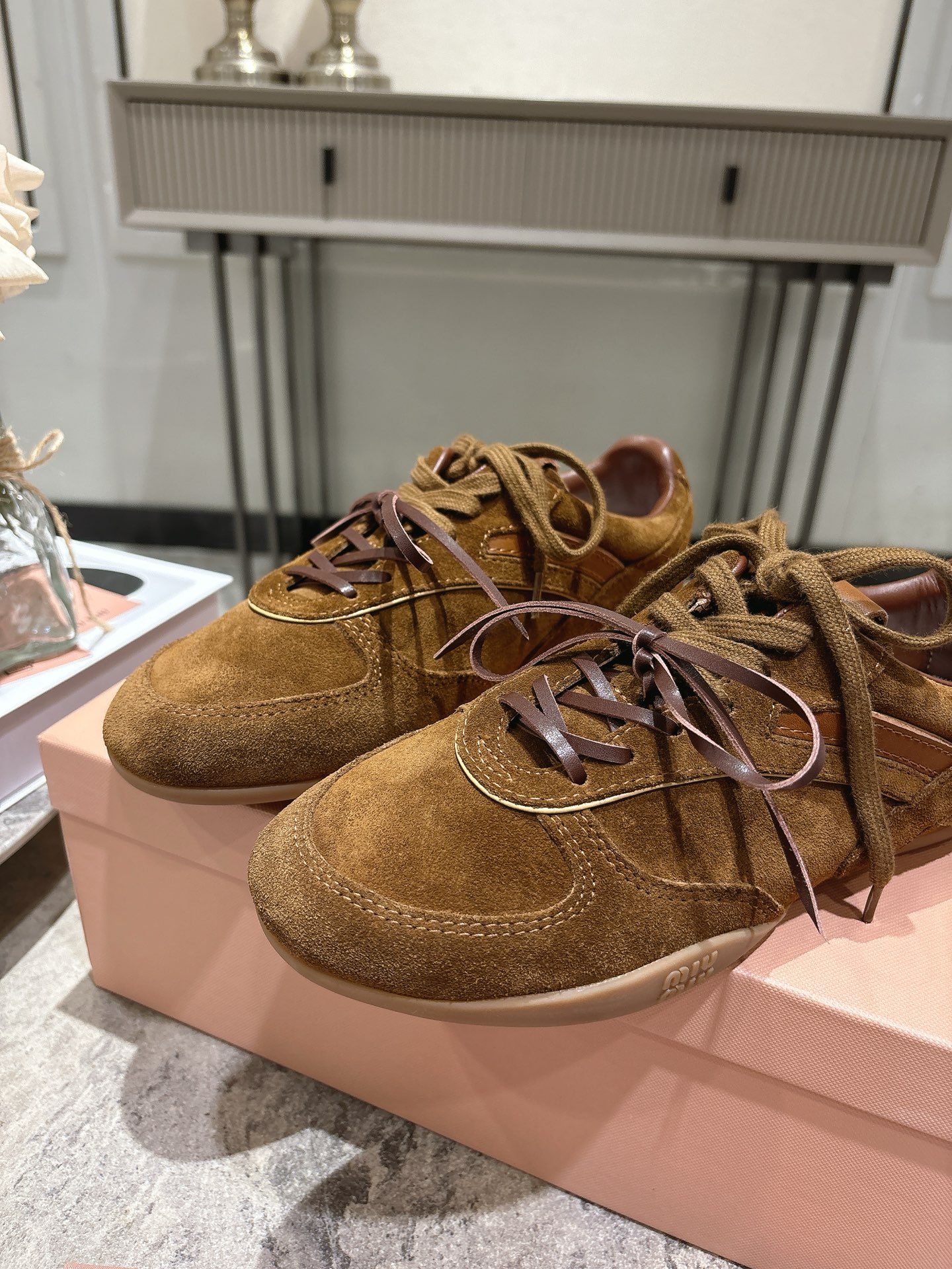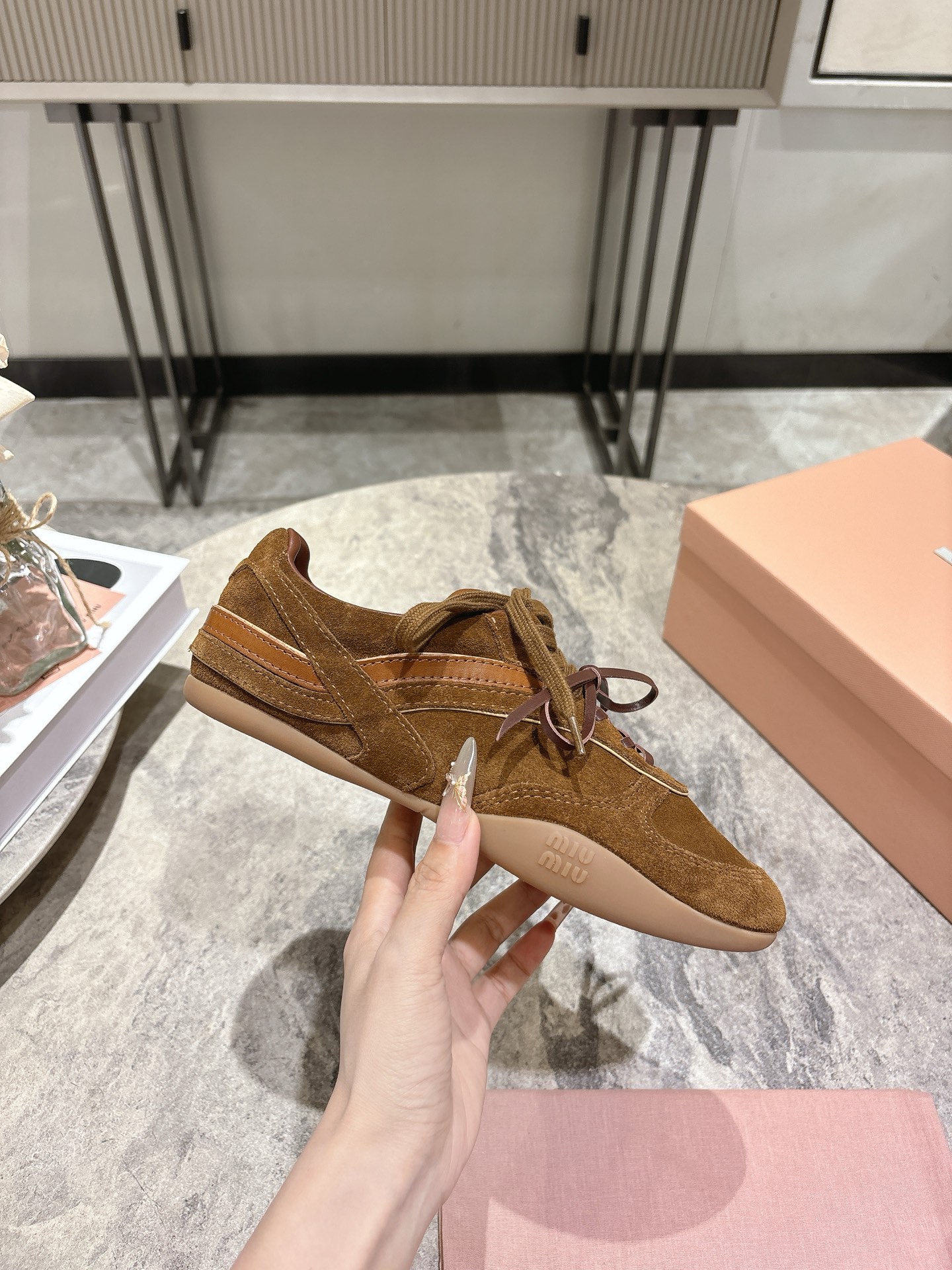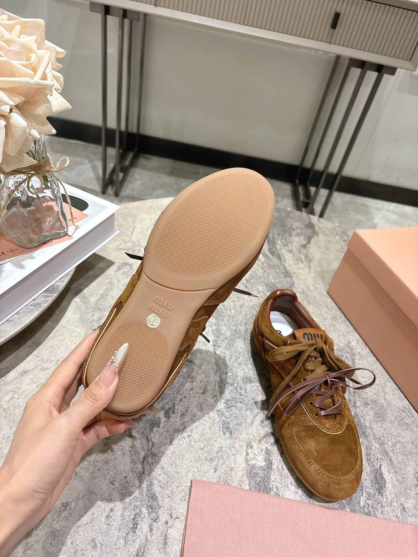 這款鞋子是AAAAA 1:1 質量(非常棒). 使用了和原版一模一樣的材料. 商標部分也保持了和繆繆/Miu Miu一樣. 圖片拍攝是實物鞋子拍攝, 您所收到的實物保證和我們圖片一模一樣.