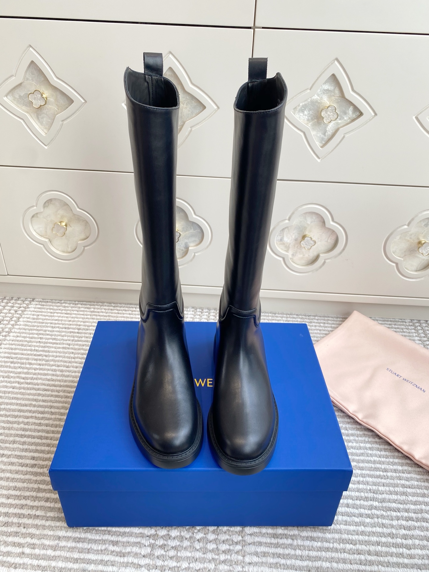 這款鞋子是AAAAA 1:1 質量(非常棒). 使用了和原版一模一樣的材料. 商標部分也保持了和斯圖爾特·維茨曼/Stuart Weitzman一樣. 圖片拍攝是實物鞋子拍攝, 您所收到的實物保證和我們圖片一模一樣.
