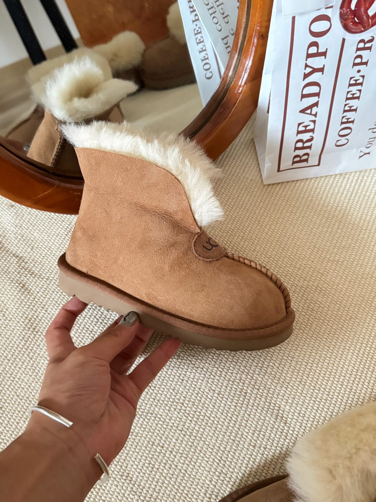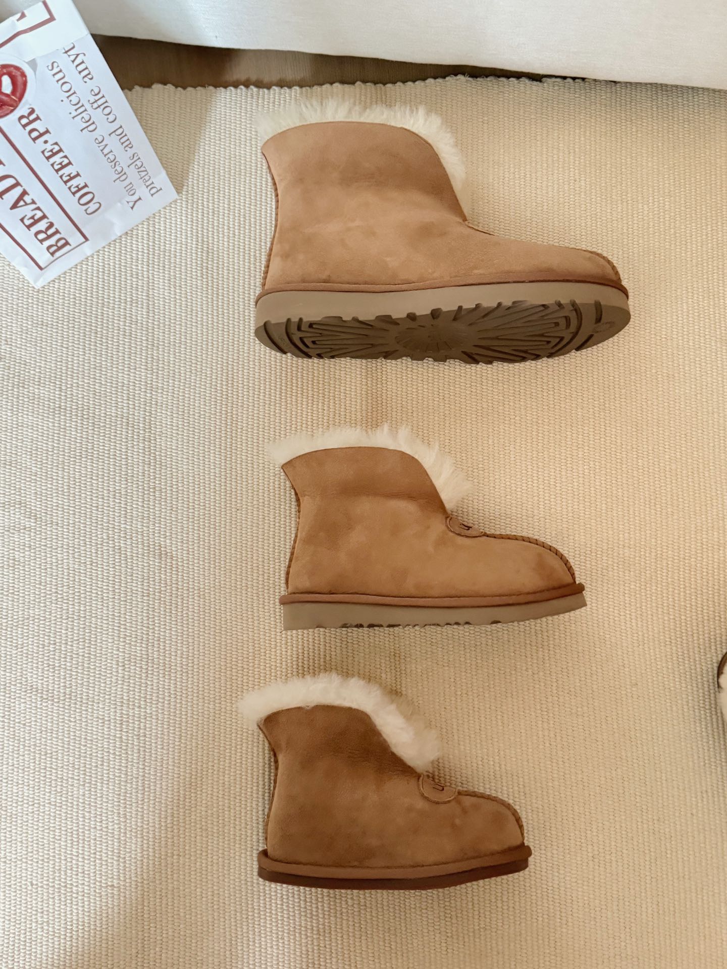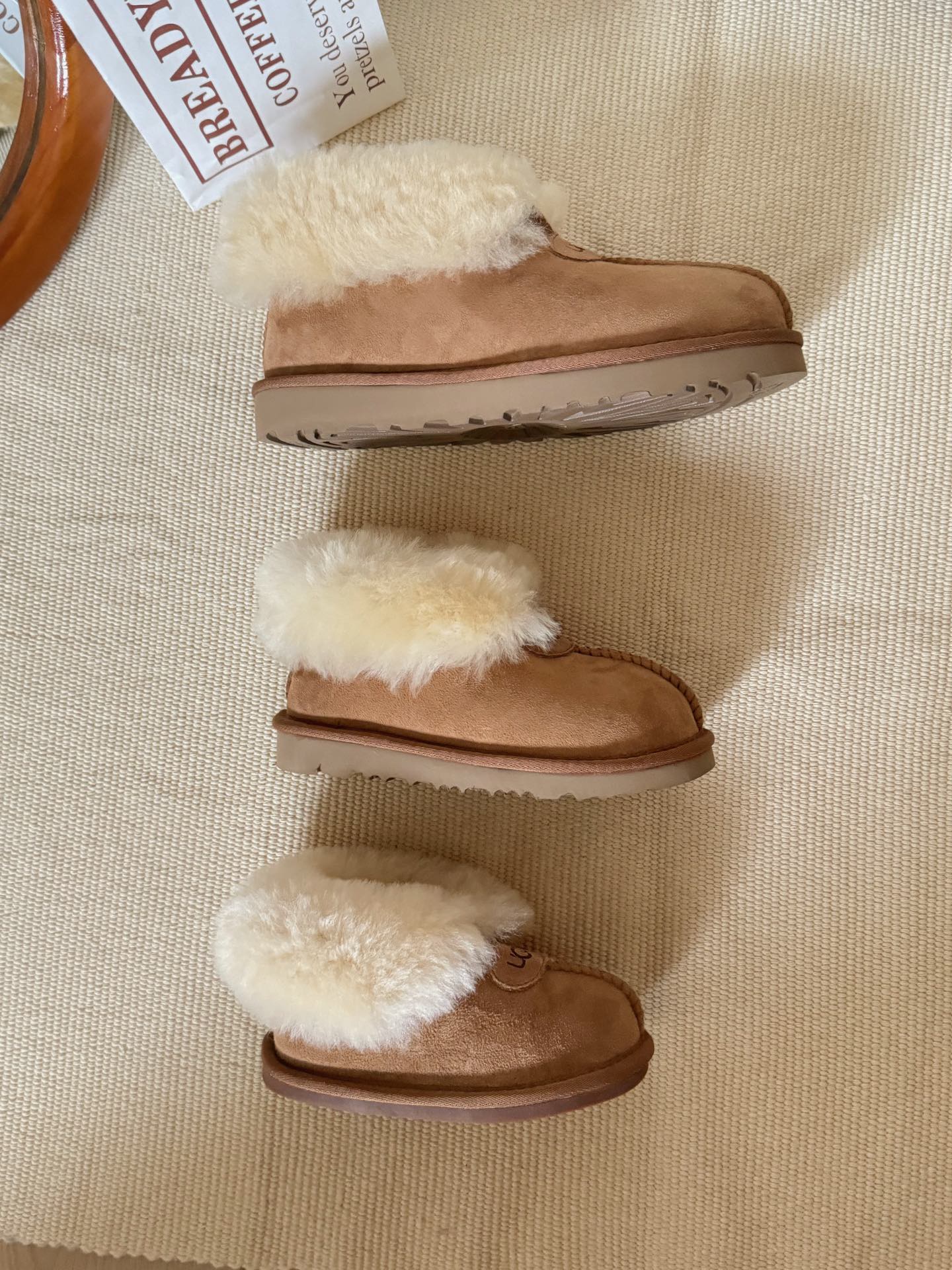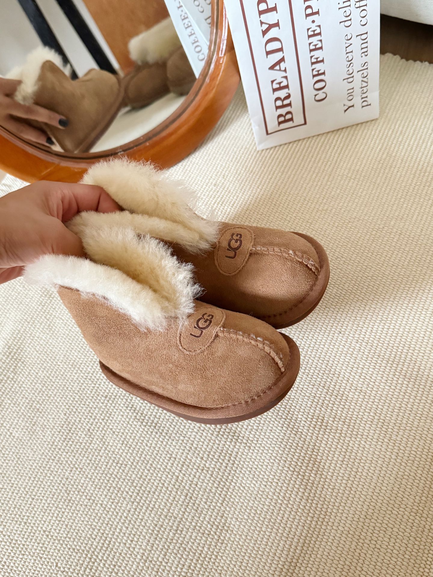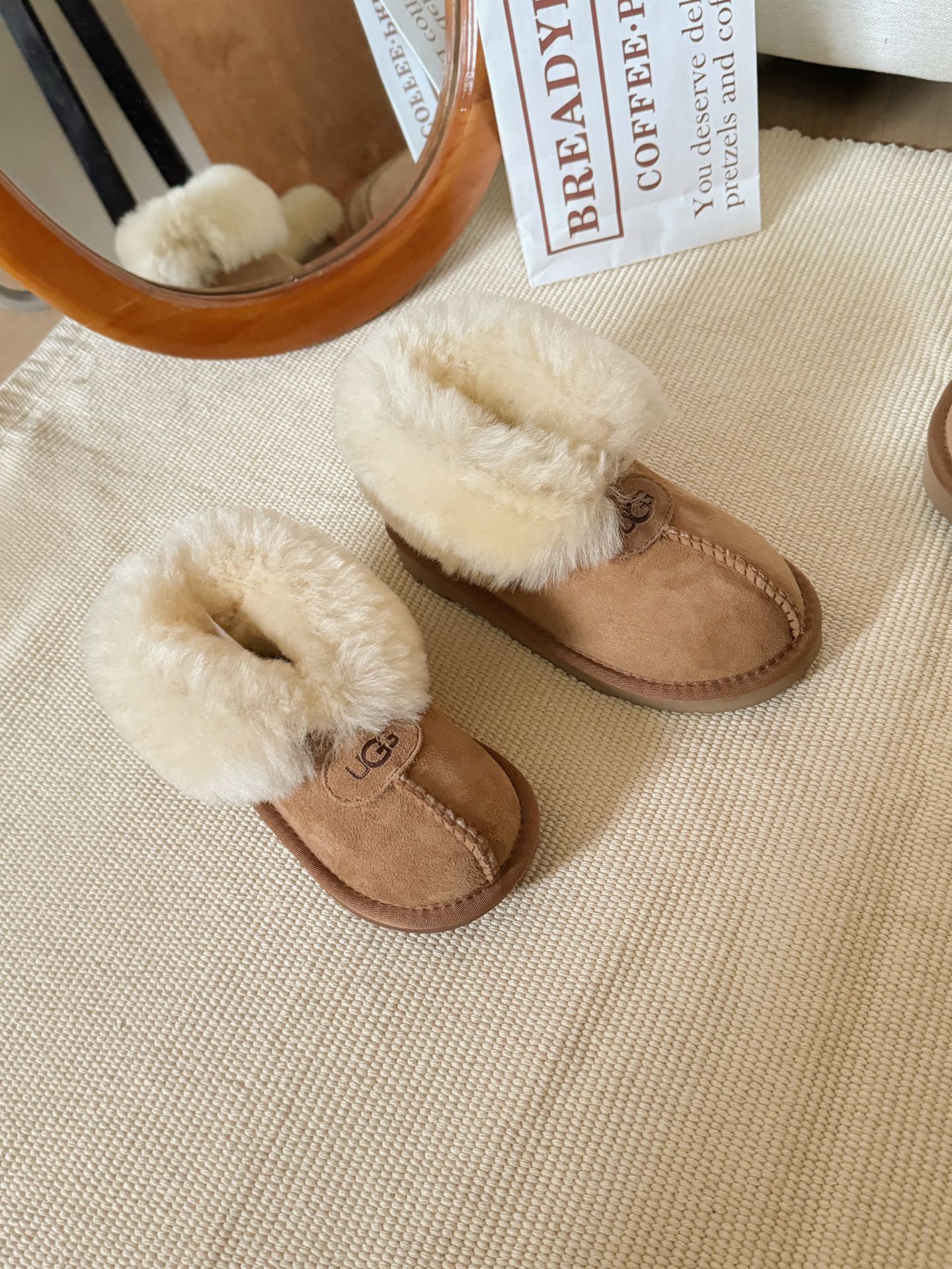 這款儿童鞋是AAAAA 1:1 質量(非常棒). 使用了和原版一模一樣的材料. 商標部分也保持了和UGG一樣. 圖片拍攝是實物儿童鞋拍攝, 您所收到的實物保證和我們圖片一模一樣.