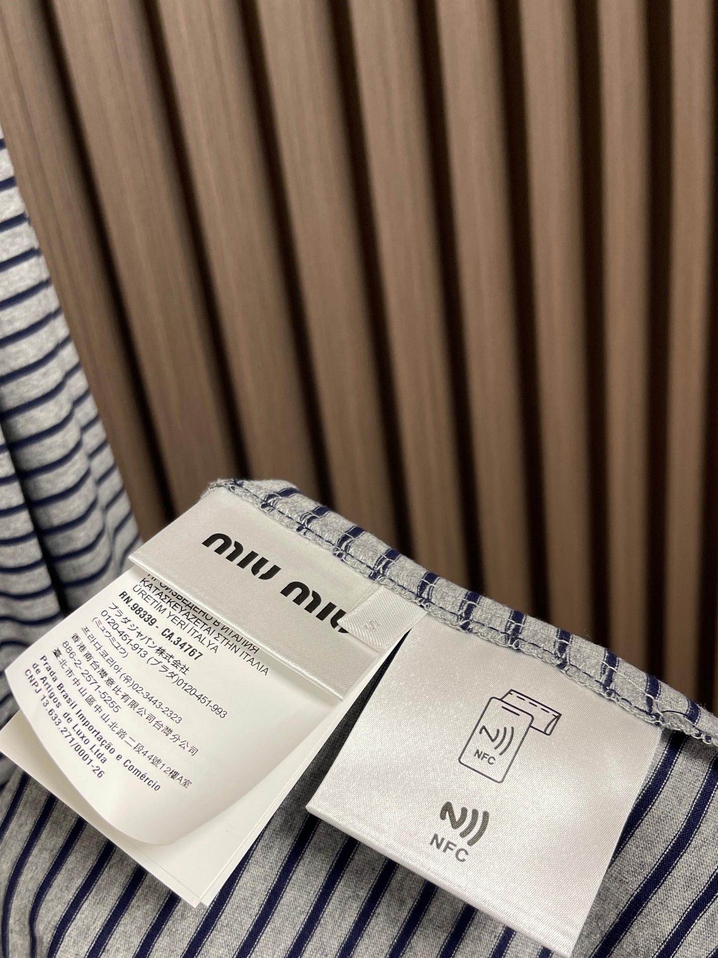 這款衣服是AAAAA 1:1 質量(非常棒). 使用了和原版一模一樣的材料. 商標部分也保持了和繆繆/Miu Miu一樣. 圖片拍攝是實物衣服拍攝, 您所收到的實物保證和我們圖片一模一樣.