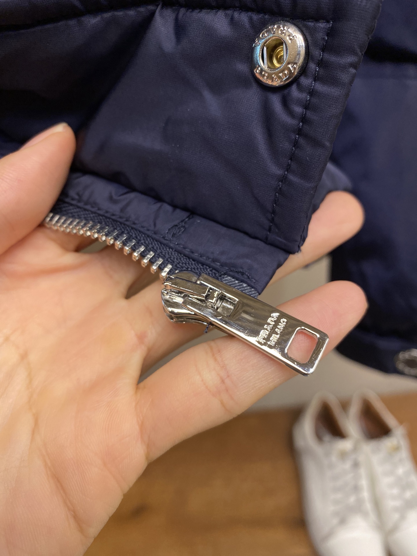 這款衣服是AAAAA 1:1 質量(非常棒). 使用了和原版一模一樣的材料. 商標部分也保持了和普拉達/Prada一樣. 圖片拍攝是實物衣服拍攝, 您所收到的實物保證和我們圖片一模一樣.