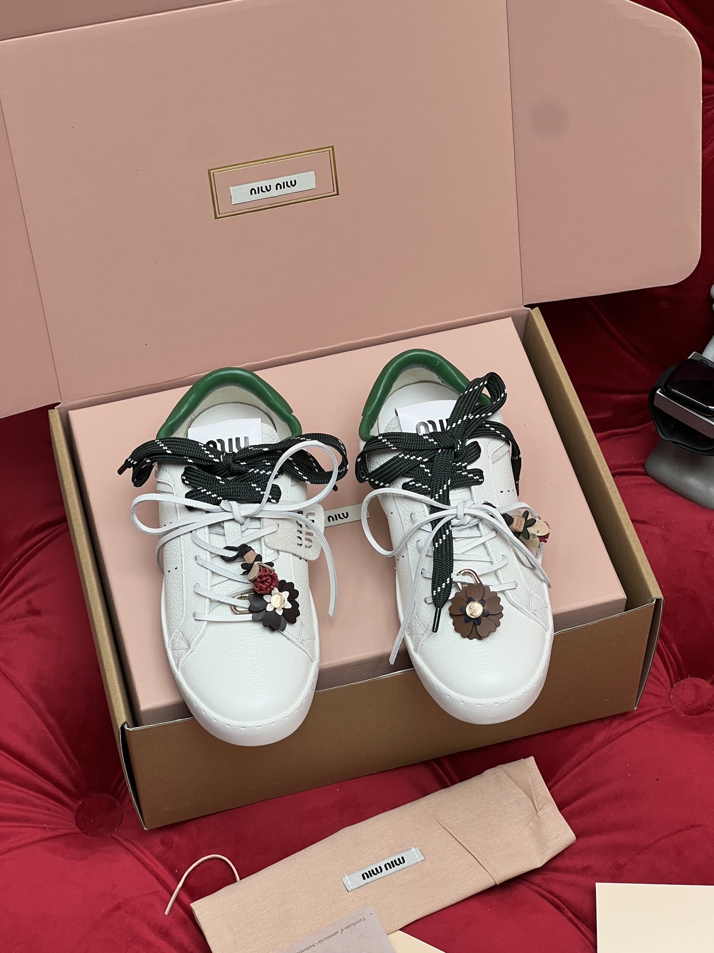 這款鞋子是AAAAA 1:1 質量(非常棒). 使用了和原版一模一樣的材料. 商標部分也保持了和繆繆/Miu Miu一樣. 圖片拍攝是實物鞋子拍攝, 您所收到的實物保證和我們圖片一模一樣.