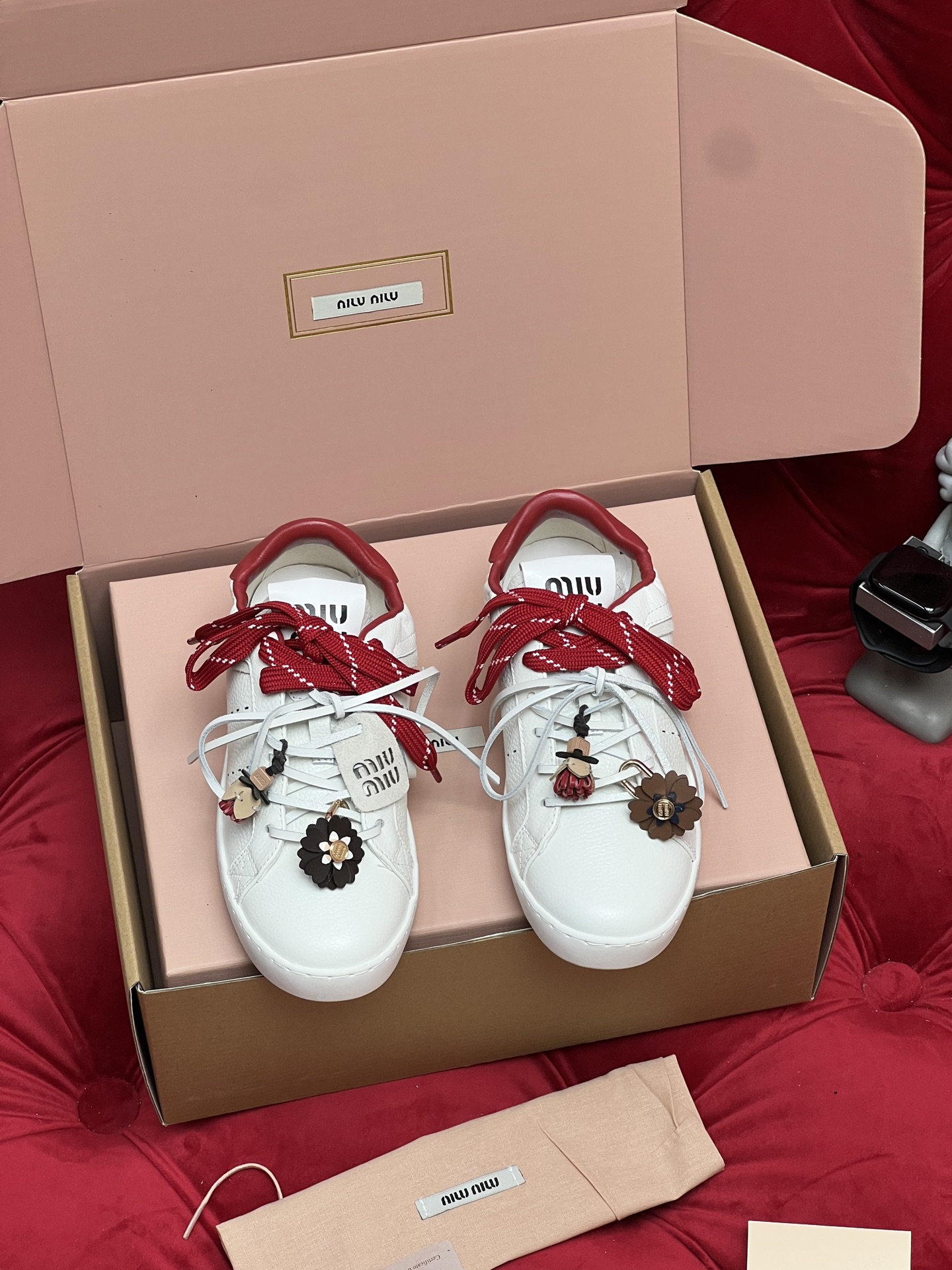 這款鞋子是AAAAA 1:1 質量(非常棒). 使用了和原版一模一樣的材料. 商標部分也保持了和繆繆/Miu Miu一樣. 圖片拍攝是實物鞋子拍攝, 您所收到的實物保證和我們圖片一模一樣.