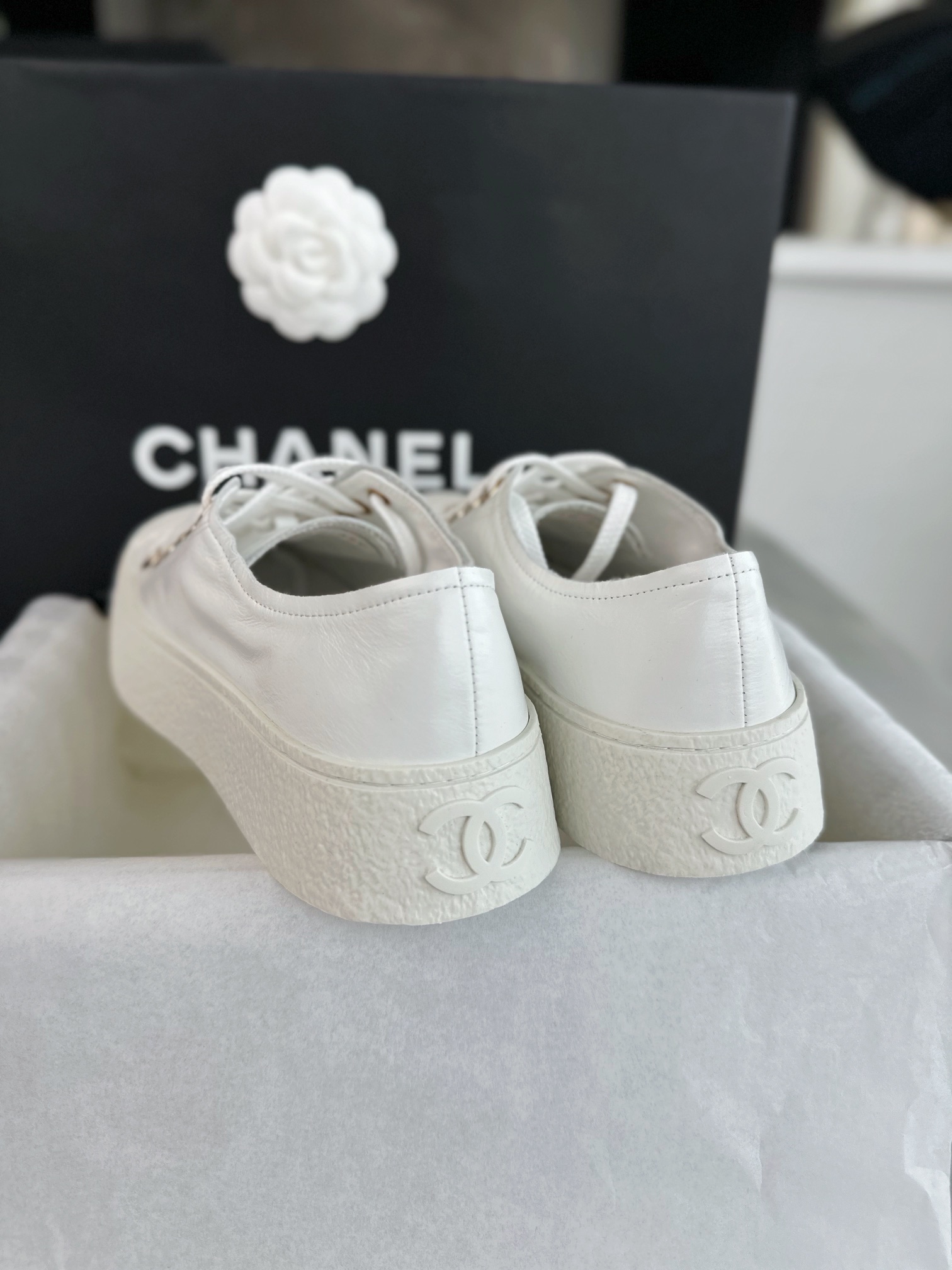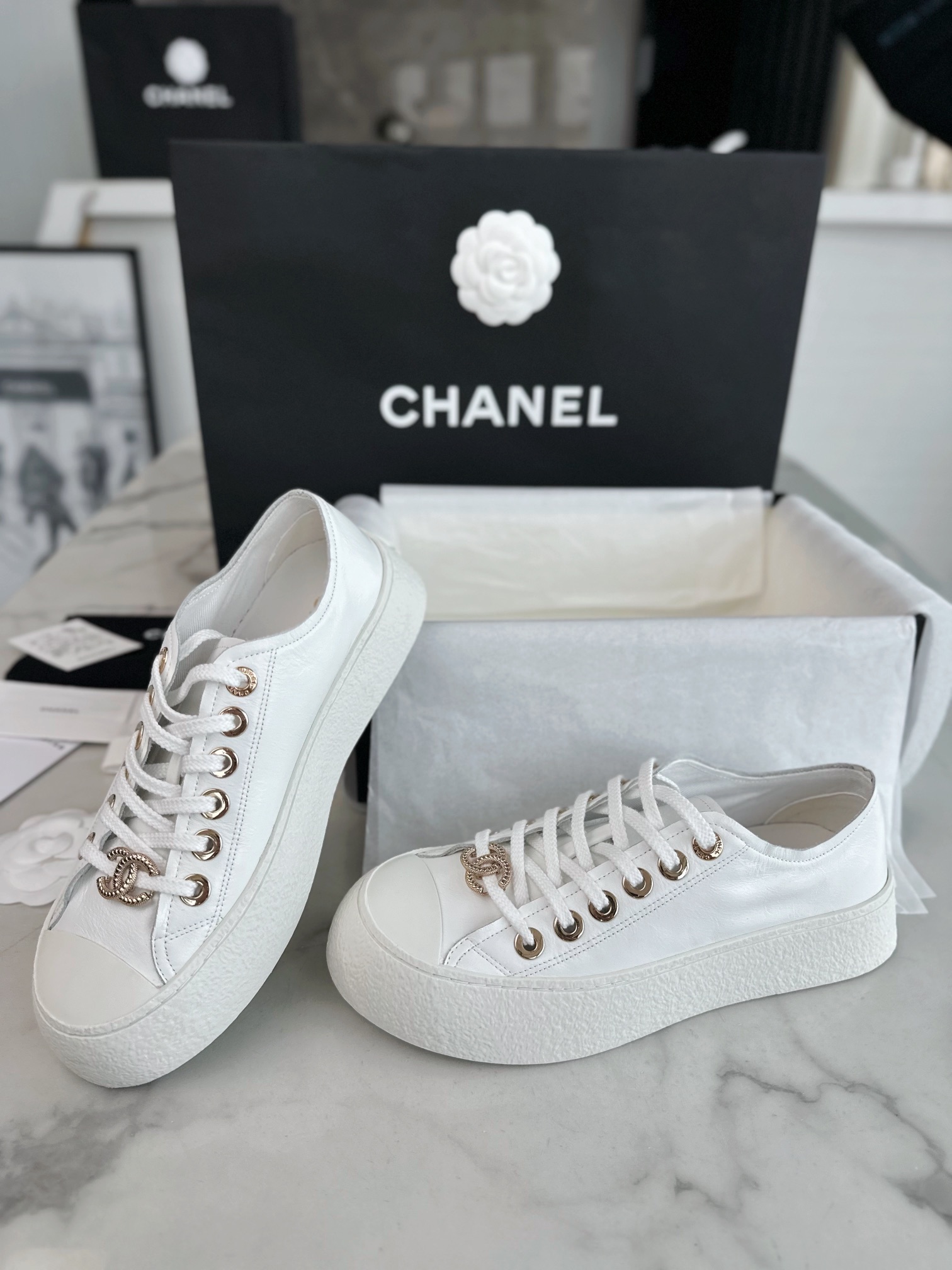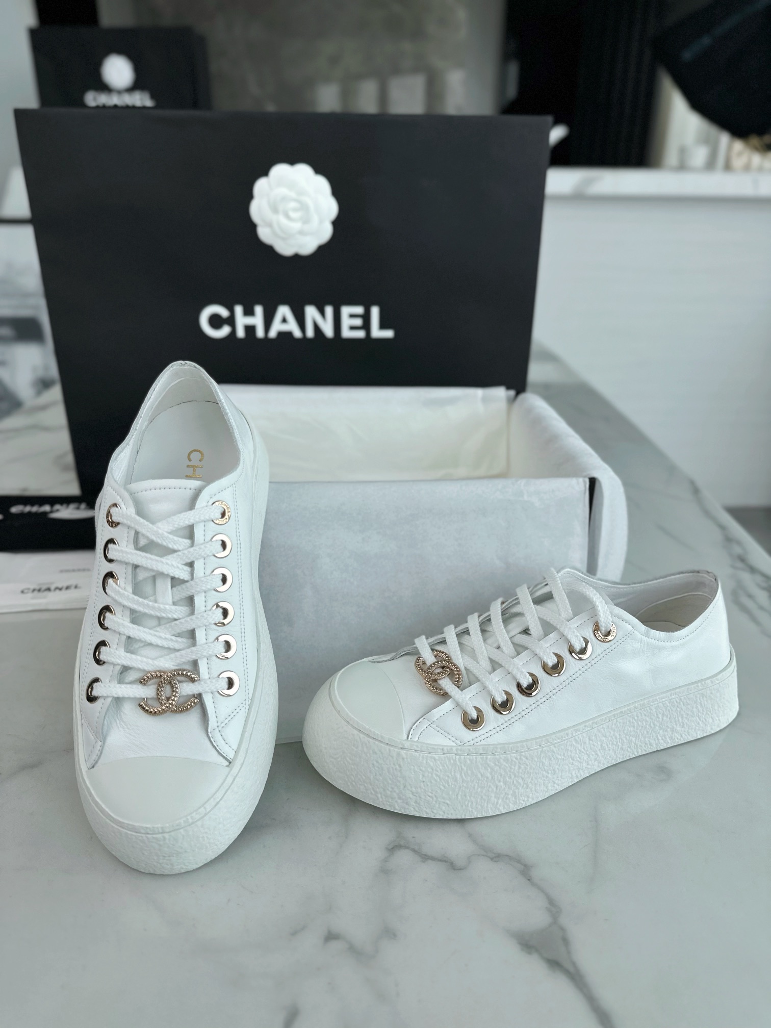 這款鞋子是AAAAA 1:1 質量(非常棒). 使用了和原版一模一樣的材料. 商標部分也保持了和香奈兒/Chanel一樣. 圖片拍攝是實物鞋子拍攝, 您所收到的實物保證和我們圖片一模一樣.