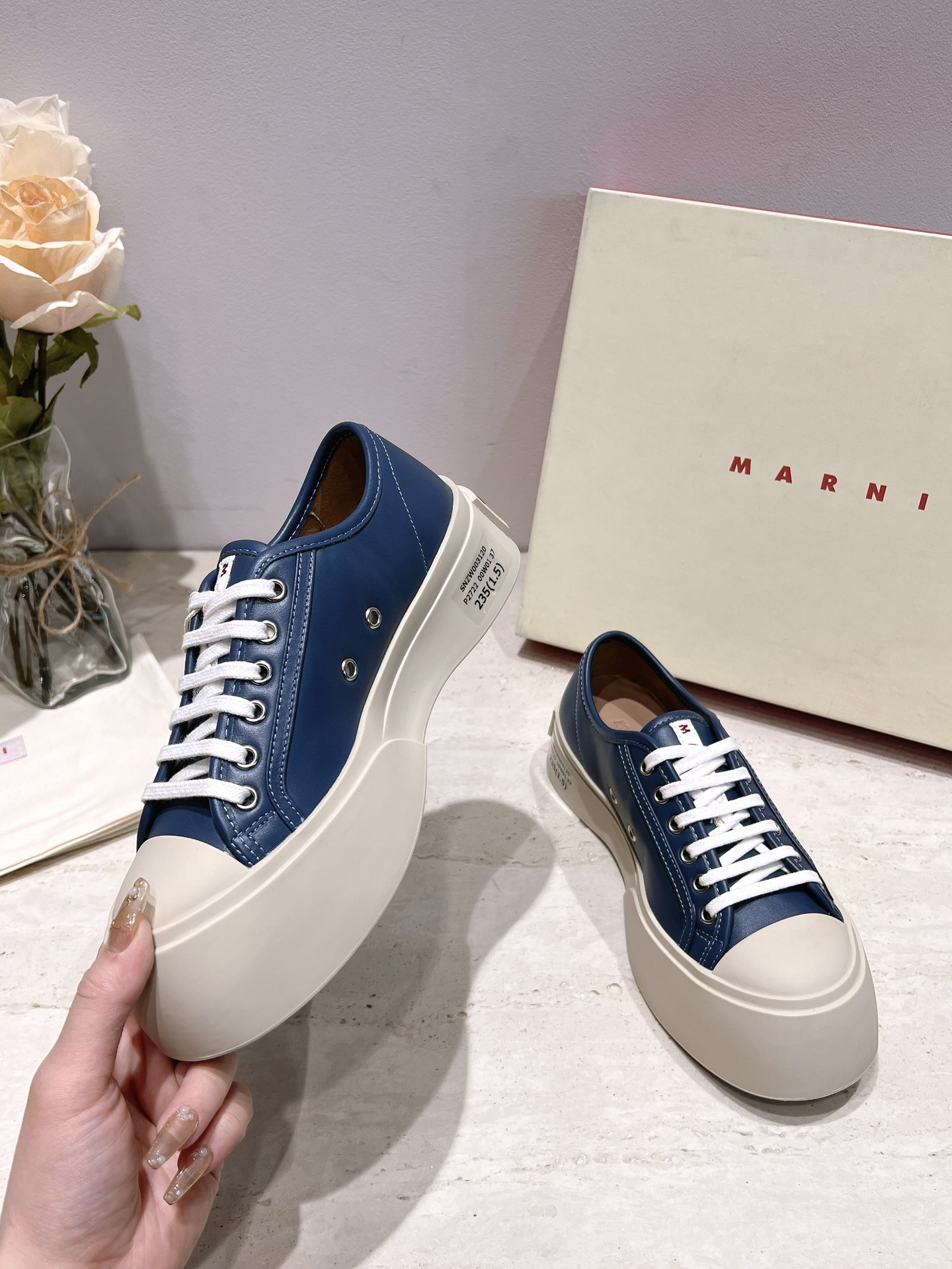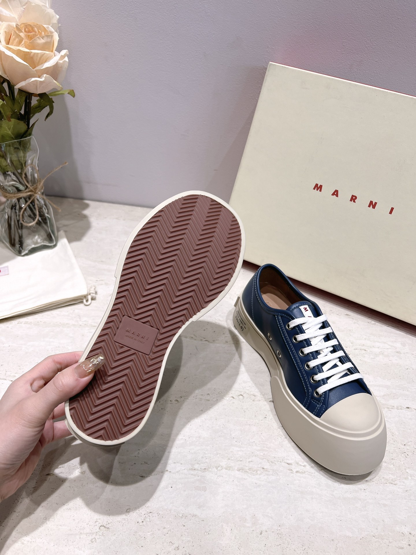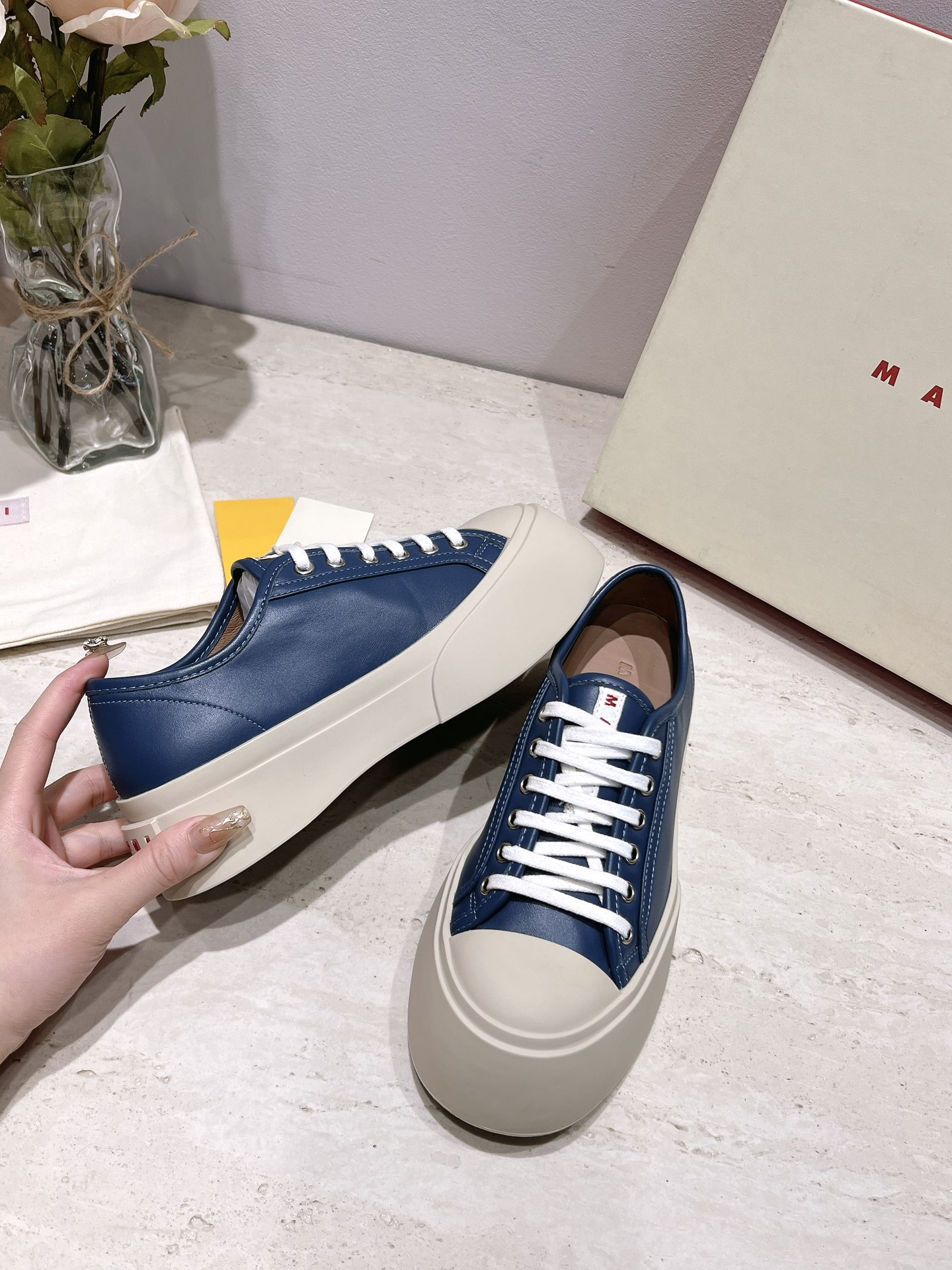 這款鞋子是AAAAA 1:1 質量(非常棒). 使用了和原版一模一樣的材料. 商標部分也保持了和馬爾尼/Marni一樣. 圖片拍攝是實物鞋子拍攝, 您所收到的實物保證和我們圖片一模一樣.