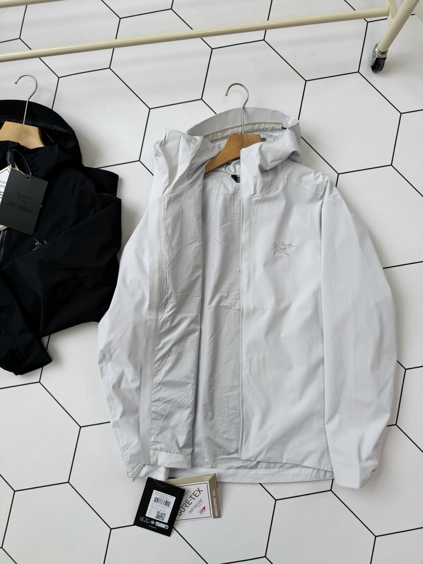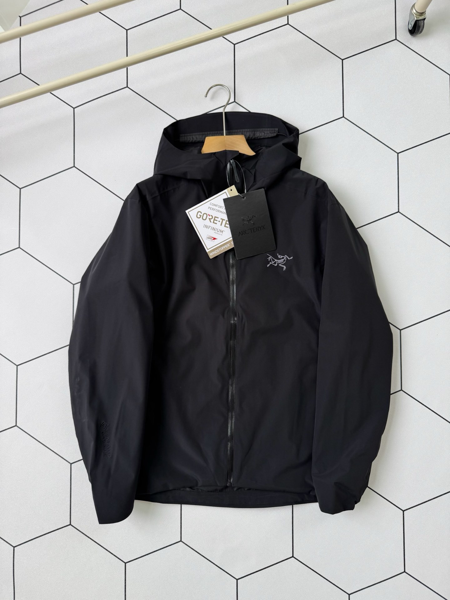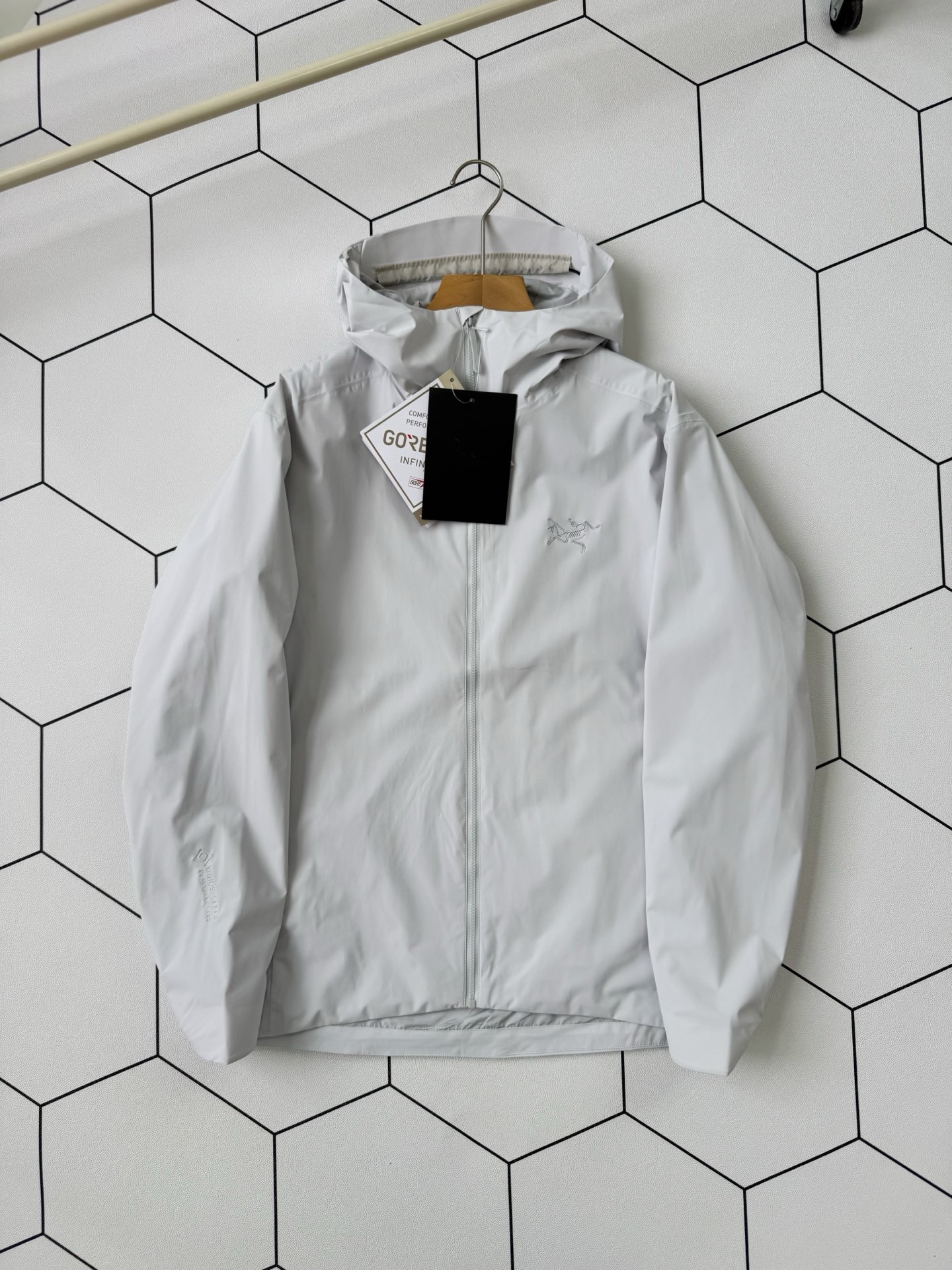 這款衣服是AAAAA 1:1 質量(非常棒). 使用了和原版一模一樣的材料. 商標部分也保持了和ARC'TERYX一樣. 圖片拍攝是實物衣服拍攝, 您所收到的實物保證和我們圖片一模一樣.