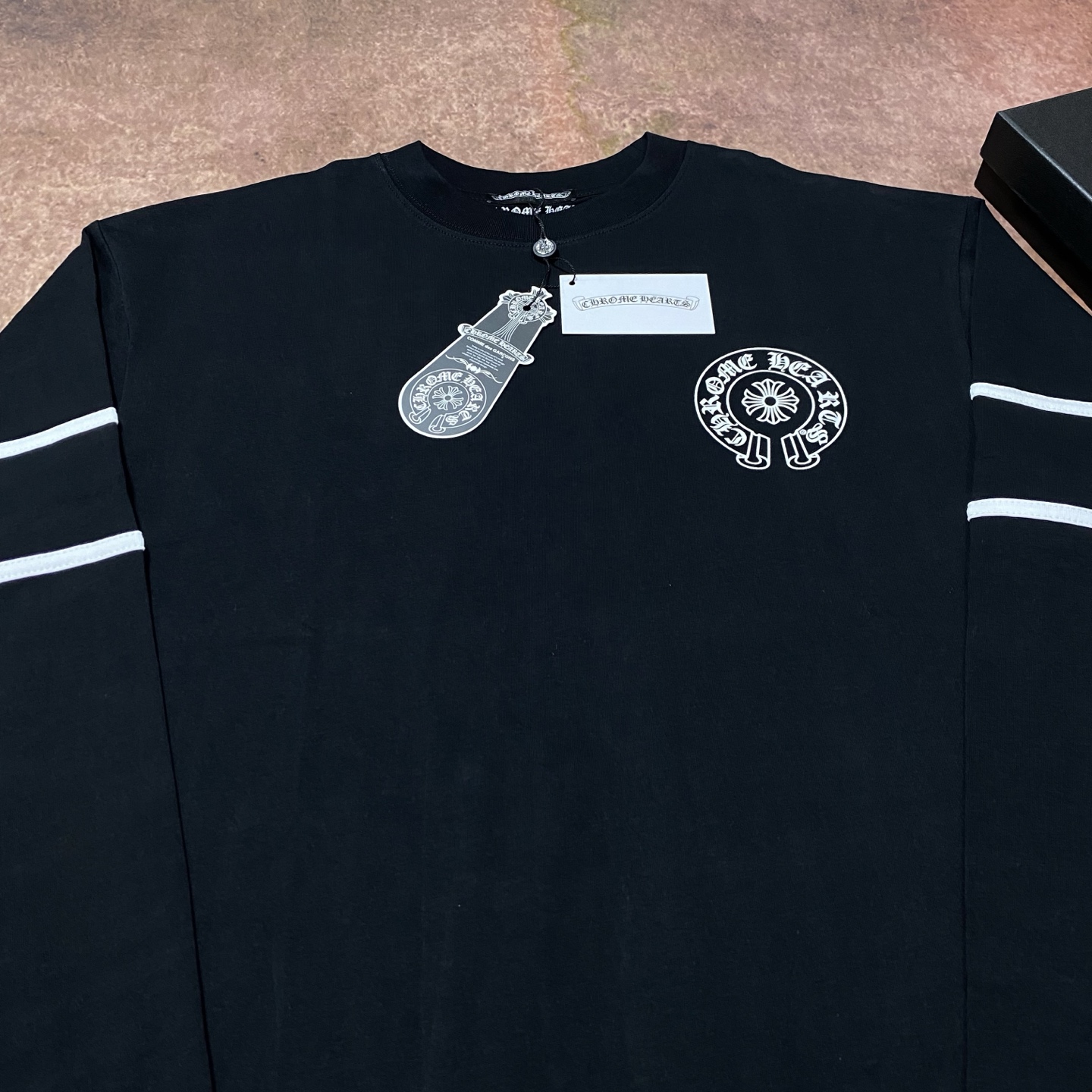 這款衣服是AAAAA 1:1 質量(非常棒). 使用了和原版一模一樣的材料. 商標部分也保持了和鉻心/Chrome Hearts一樣. 圖片拍攝是實物衣服拍攝, 您所收到的實物保證和我們圖片一模一樣.