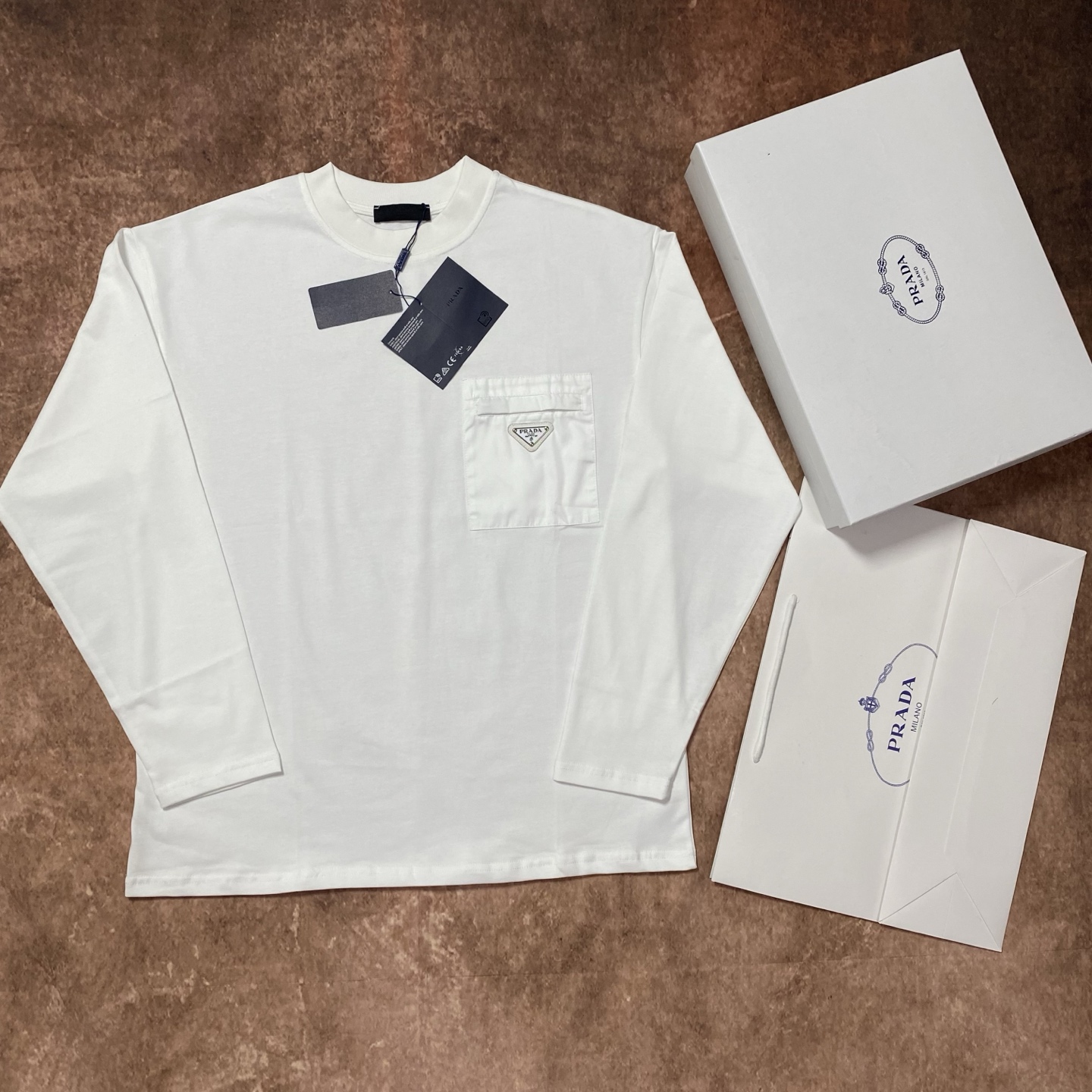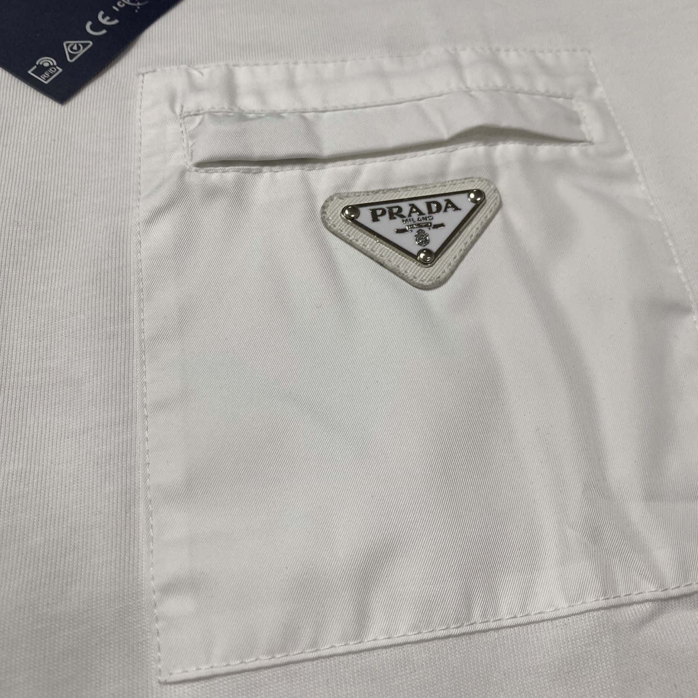 這款衣服是AAAAA 1:1 質量(非常棒). 使用了和原版一模一樣的材料. 商標部分也保持了和普拉達/Prada一樣. 圖片拍攝是實物衣服拍攝, 您所收到的實物保證和我們圖片一模一樣.