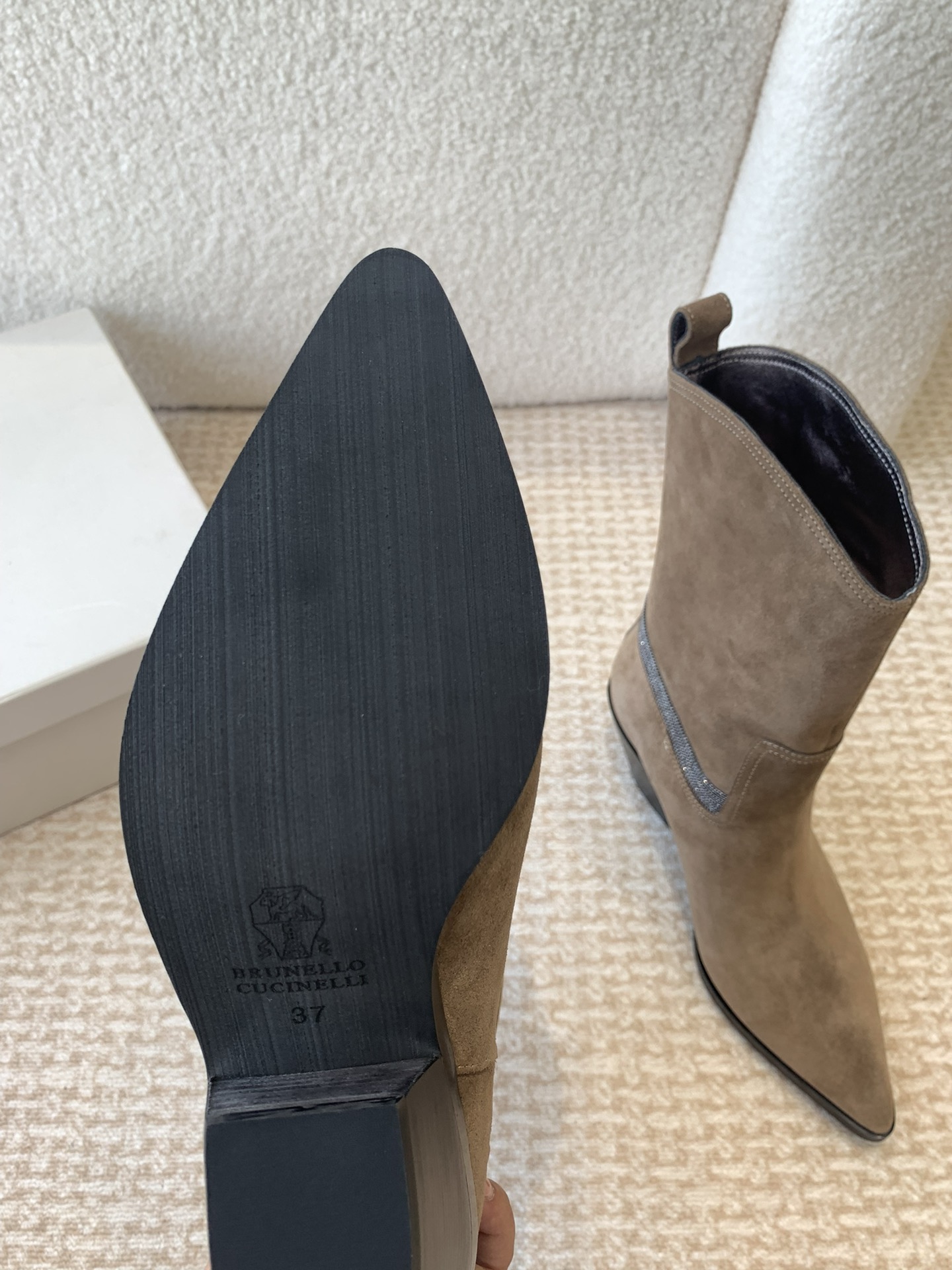 這款鞋子是AAAAA 1:1 質量(非常棒). 使用了和原版一模一樣的材料. 商標部分也保持了和Brunello Cucinelli一樣. 圖片拍攝是實物鞋子拍攝, 您所收到的實物保證和我們圖片一模一樣.