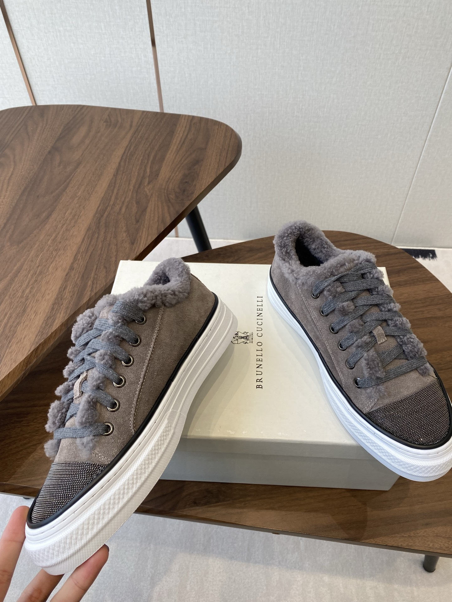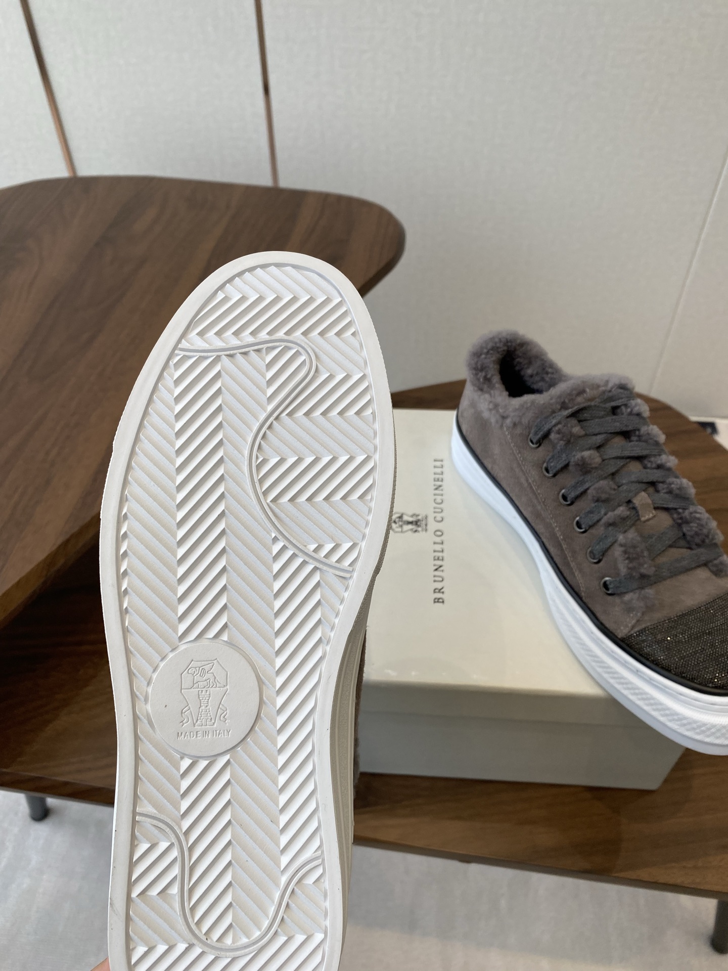 這款鞋子是AAAAA 1:1 質量(非常棒). 使用了和原版一模一樣的材料. 商標部分也保持了和Brunello Cucinelli一樣. 圖片拍攝是實物鞋子拍攝, 您所收到的實物保證和我們圖片一模一樣.