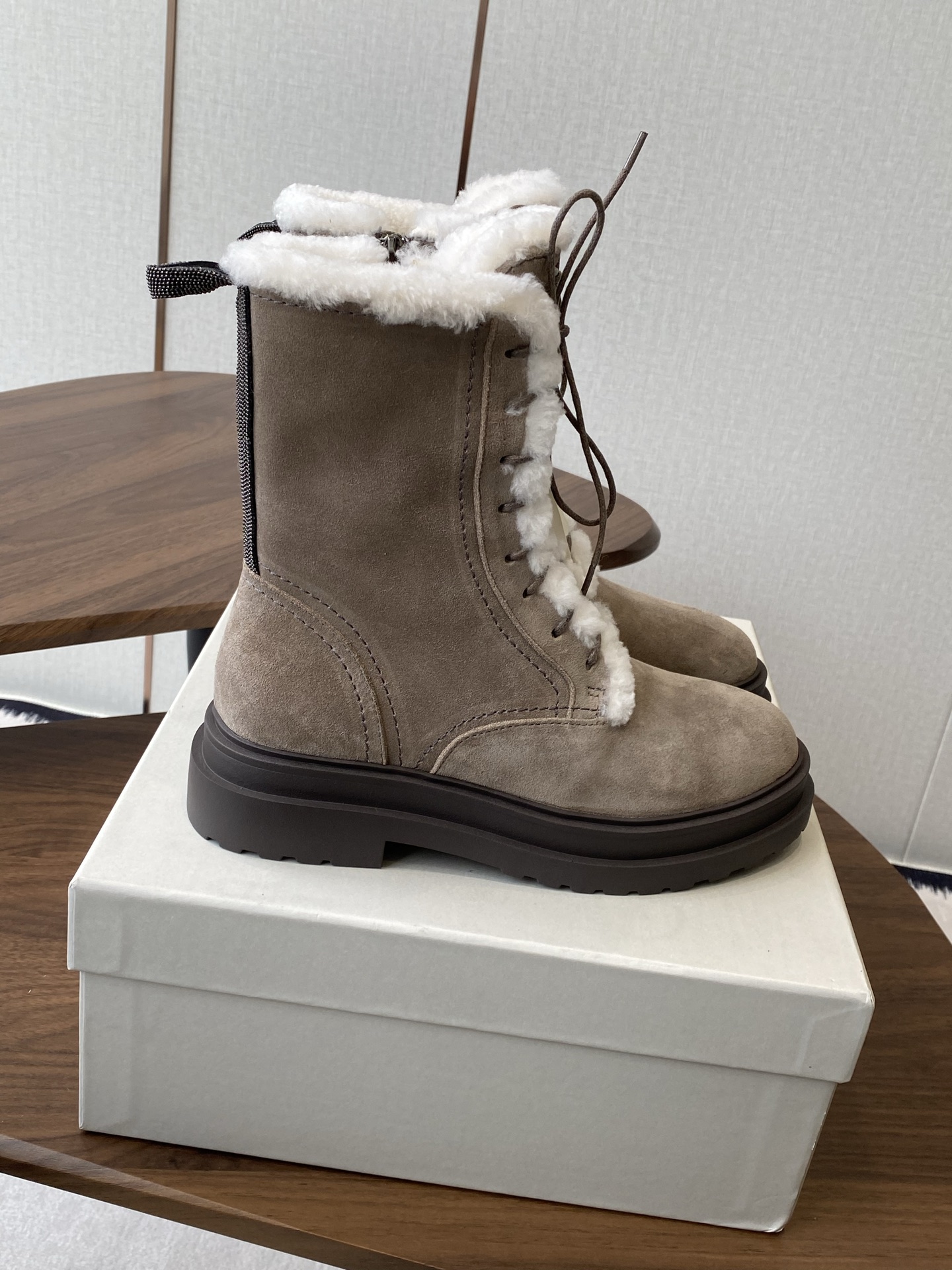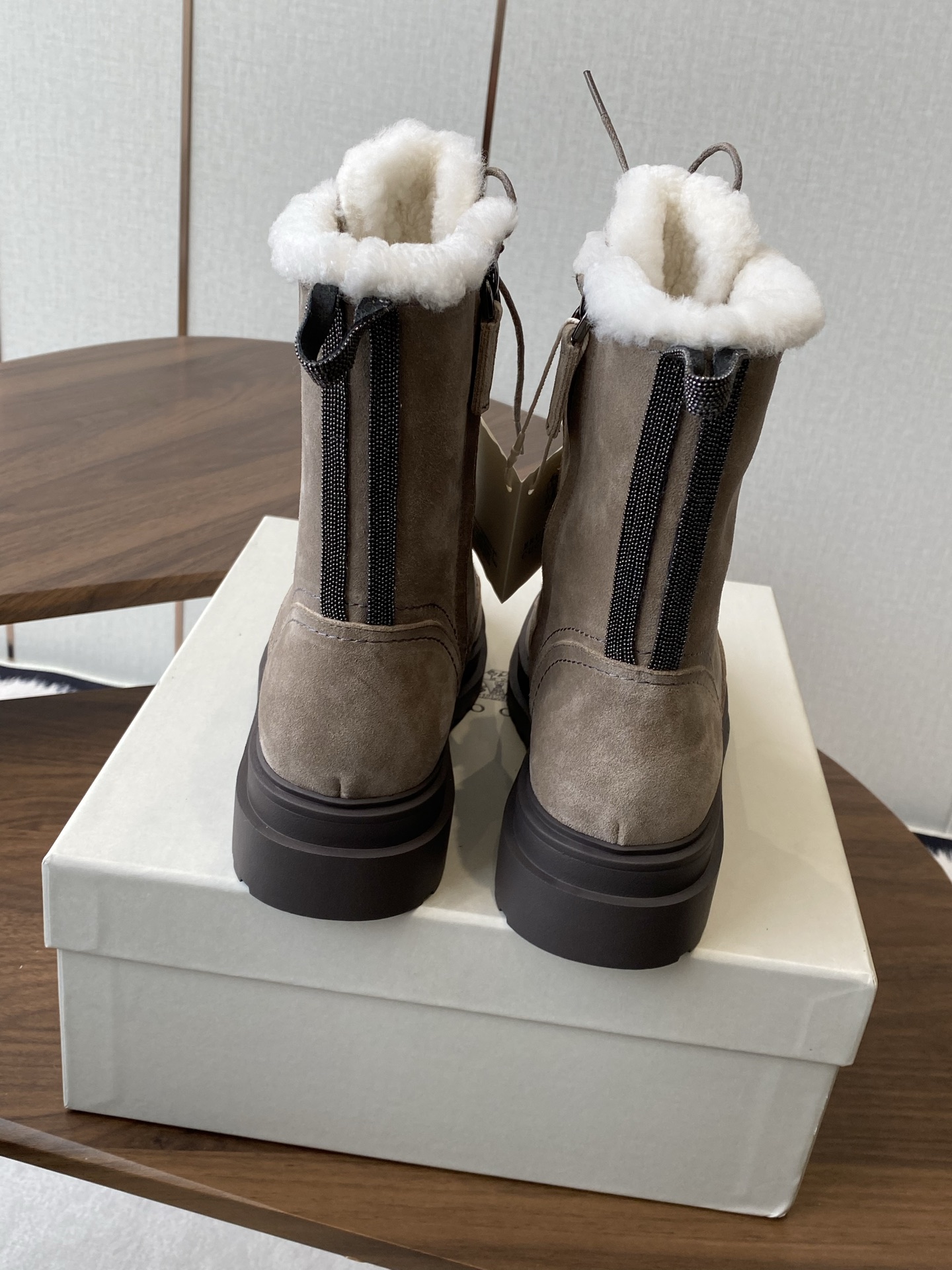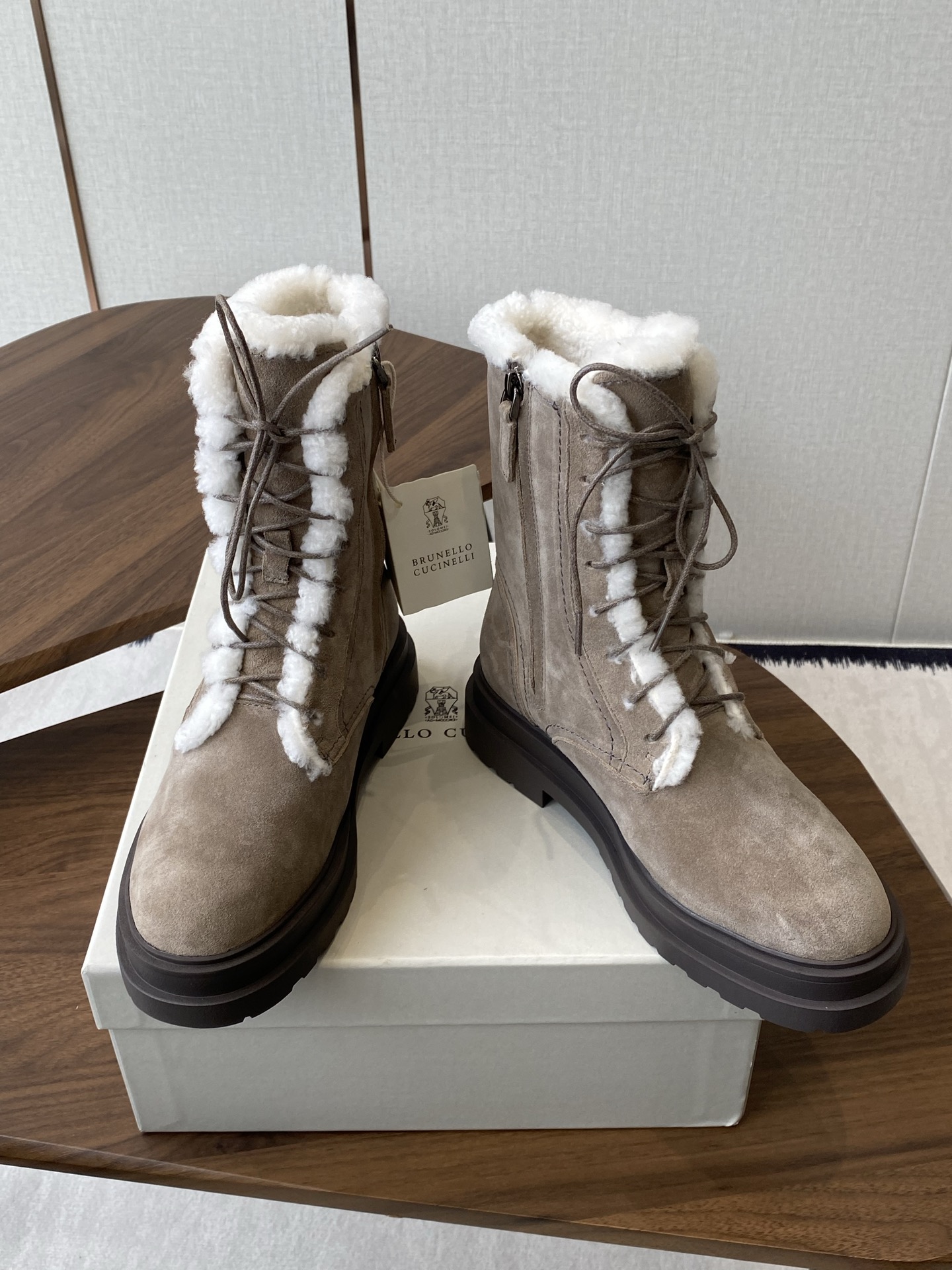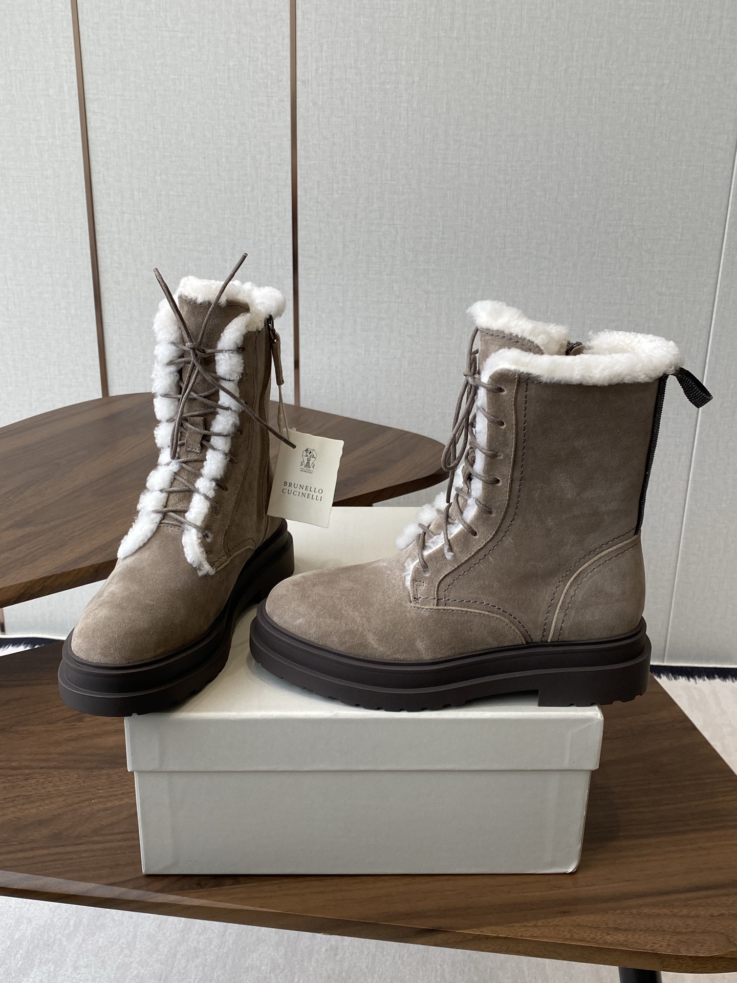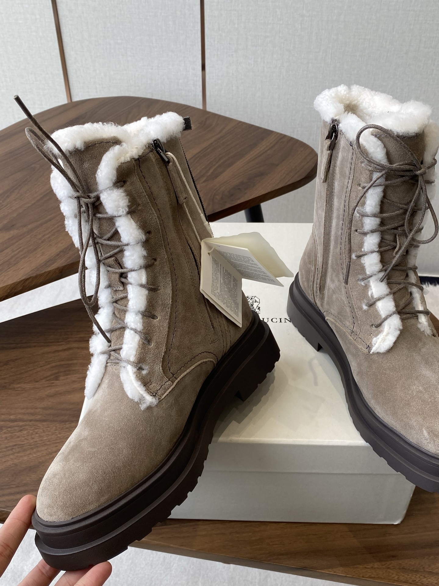 這款鞋子是AAAAA 1:1 質量(非常棒). 使用了和原版一模一樣的材料. 商標部分也保持了和Brunello Cucinelli一樣. 圖片拍攝是實物鞋子拍攝, 您所收到的實物保證和我們圖片一模一樣.