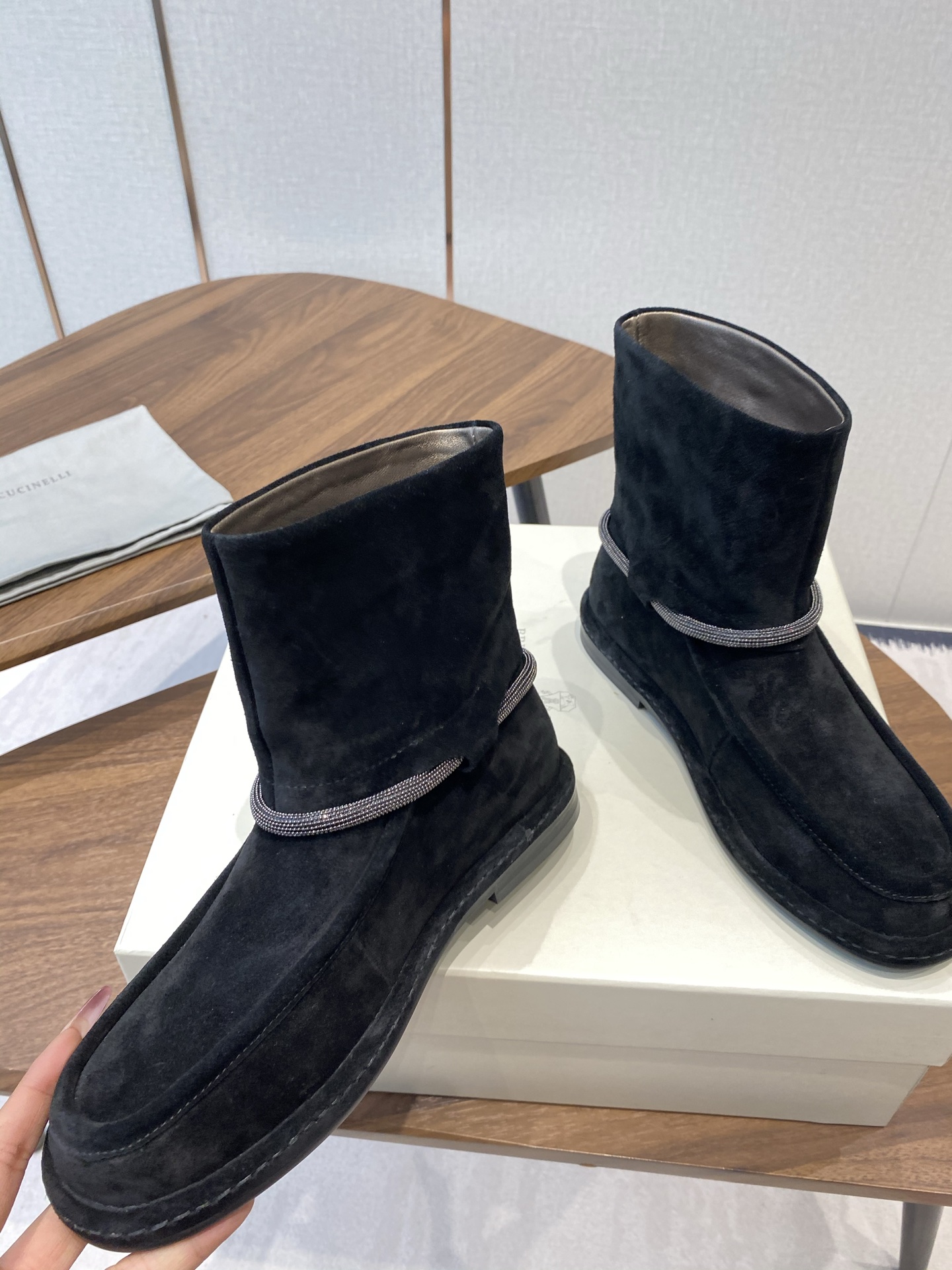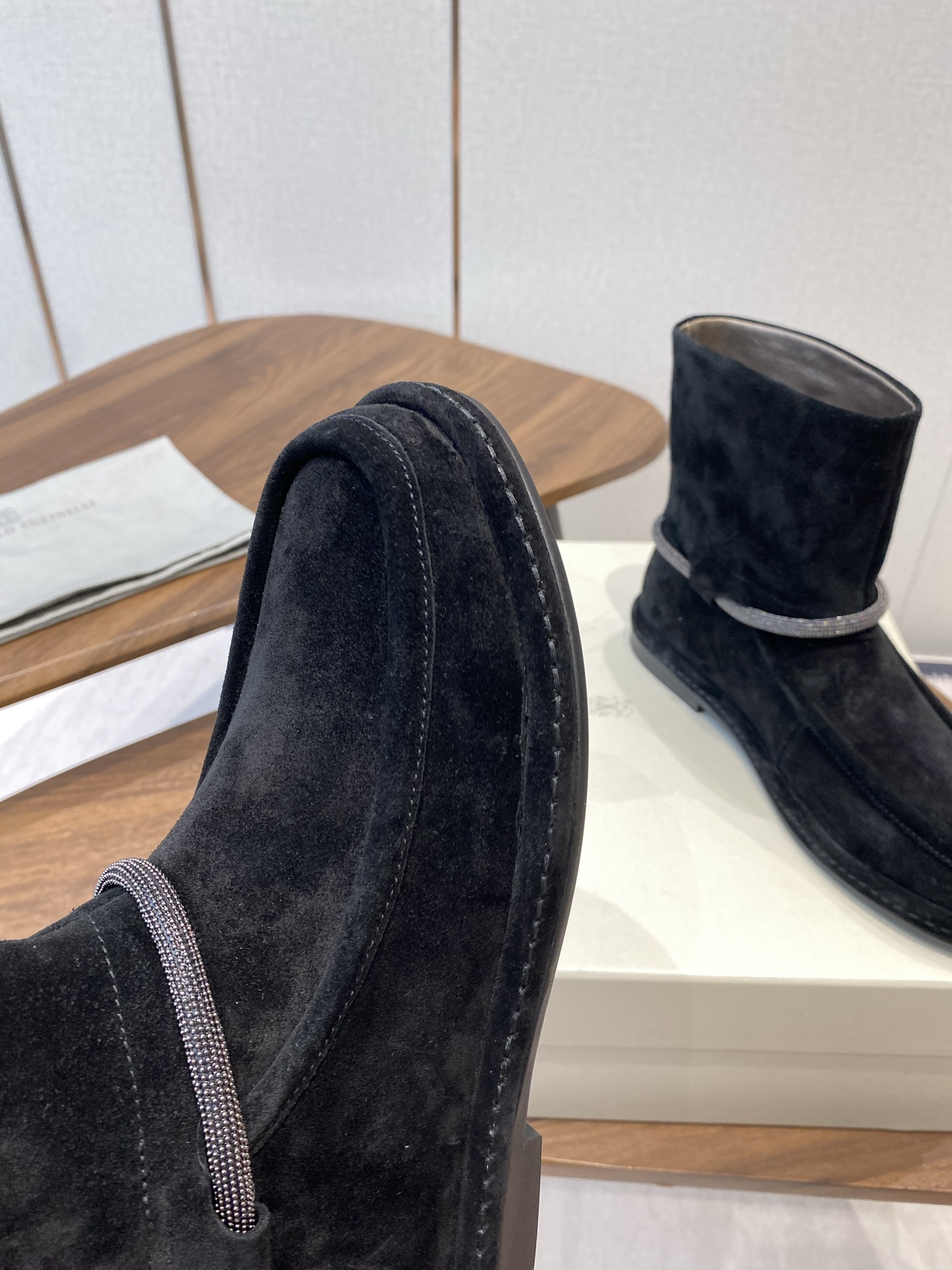 這款鞋子是AAAAA 1:1 質量(非常棒). 使用了和原版一模一樣的材料. 商標部分也保持了和Brunello Cucinelli一樣. 圖片拍攝是實物鞋子拍攝, 您所收到的實物保證和我們圖片一模一樣.