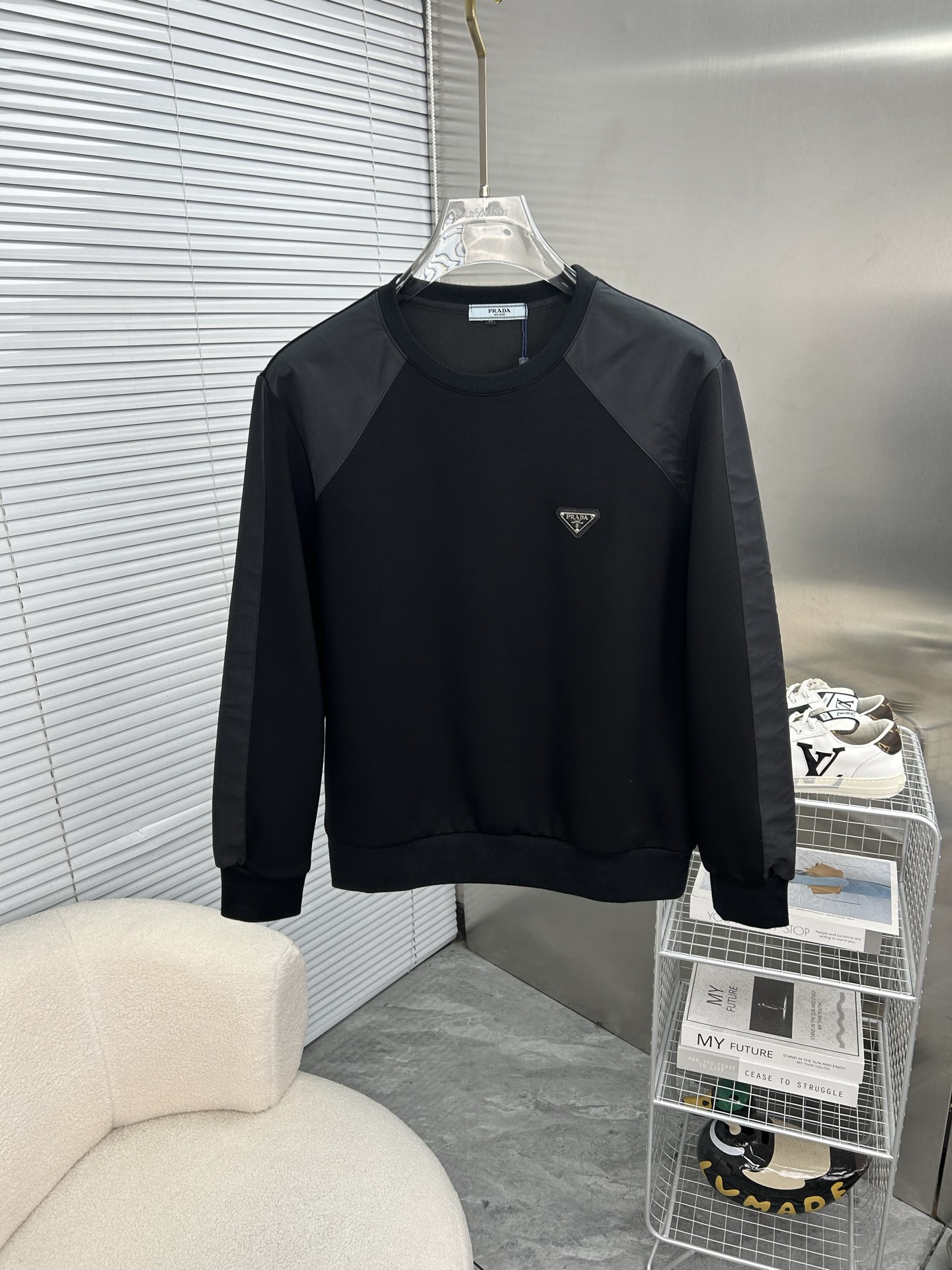 這款衣服是AAAAA 1:1 質量(非常棒). 使用了和原版一模一樣的材料. 商標部分也保持了和普拉達/Prada一樣. 圖片拍攝是實物衣服拍攝, 您所收到的實物保證和我們圖片一模一樣.