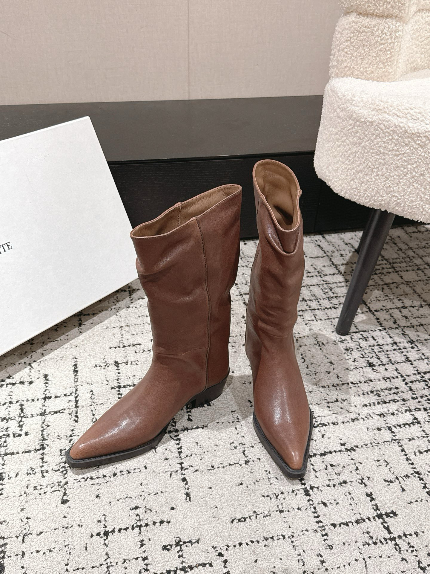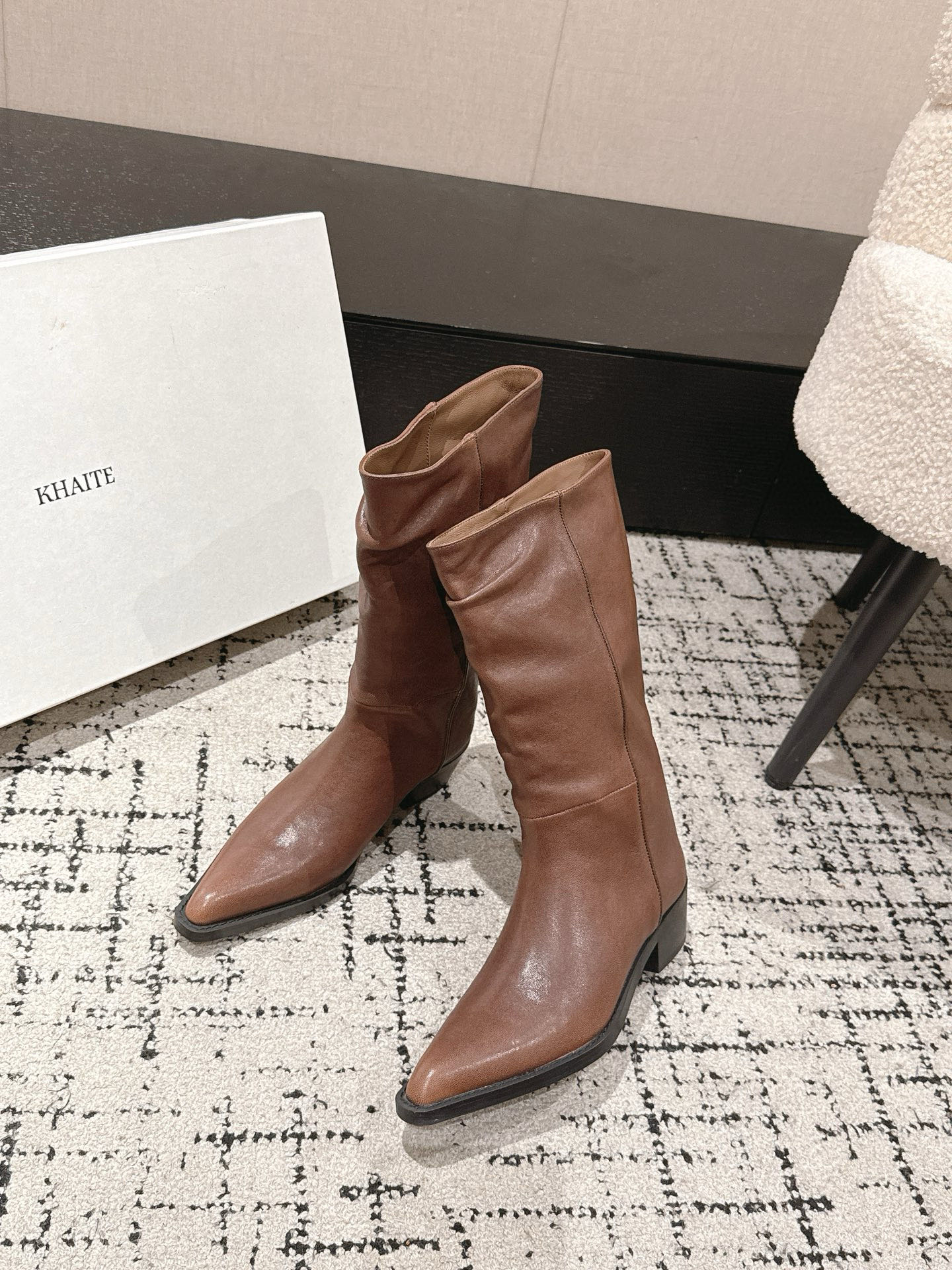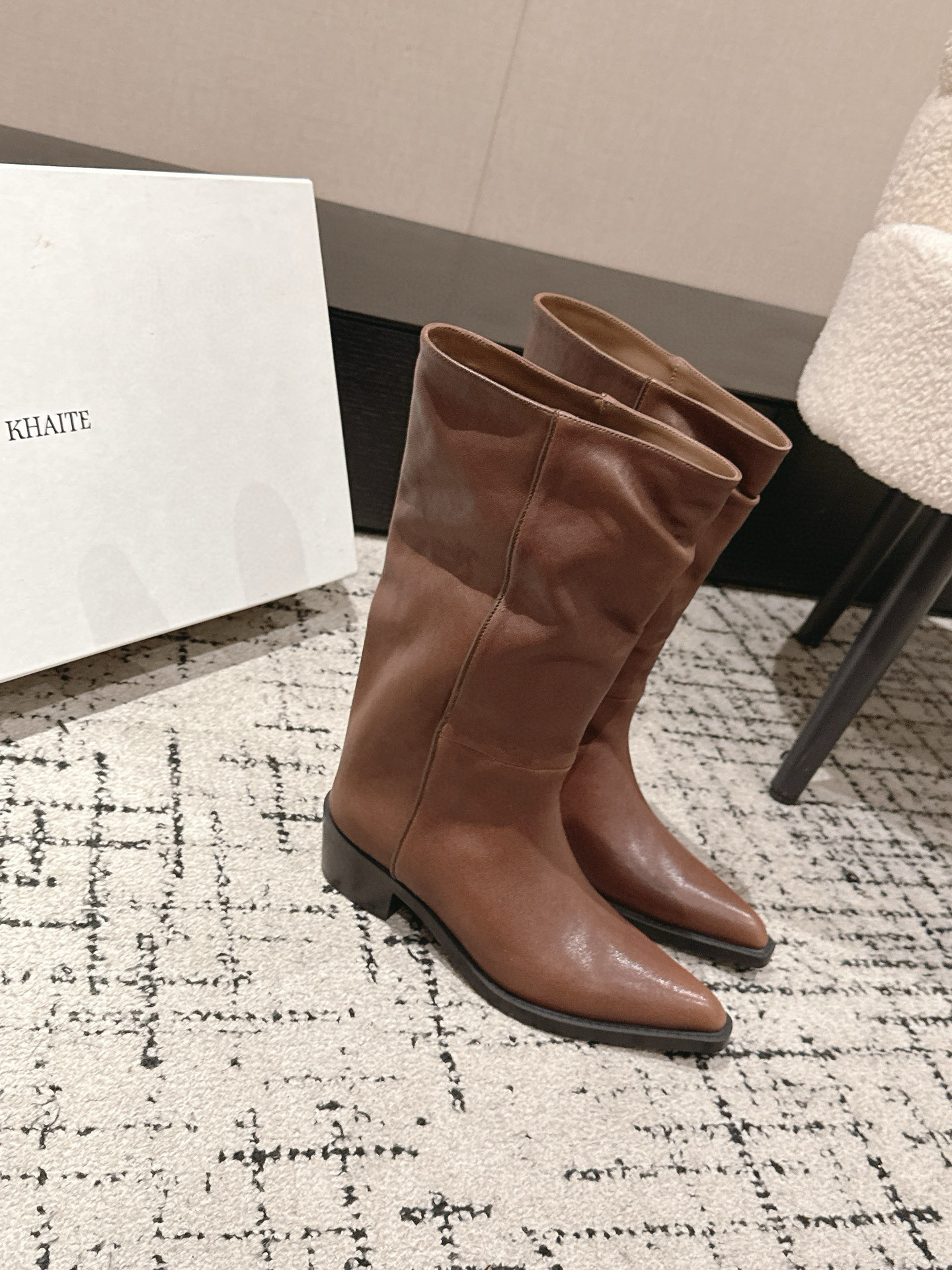 這款鞋子是AAAAA 1:1 質量(非常棒). 使用了和原版一模一樣的材料. 商標部分也保持了和Khaite一樣. 圖片拍攝是實物鞋子拍攝, 您所收到的實物保證和我們圖片一模一樣.
