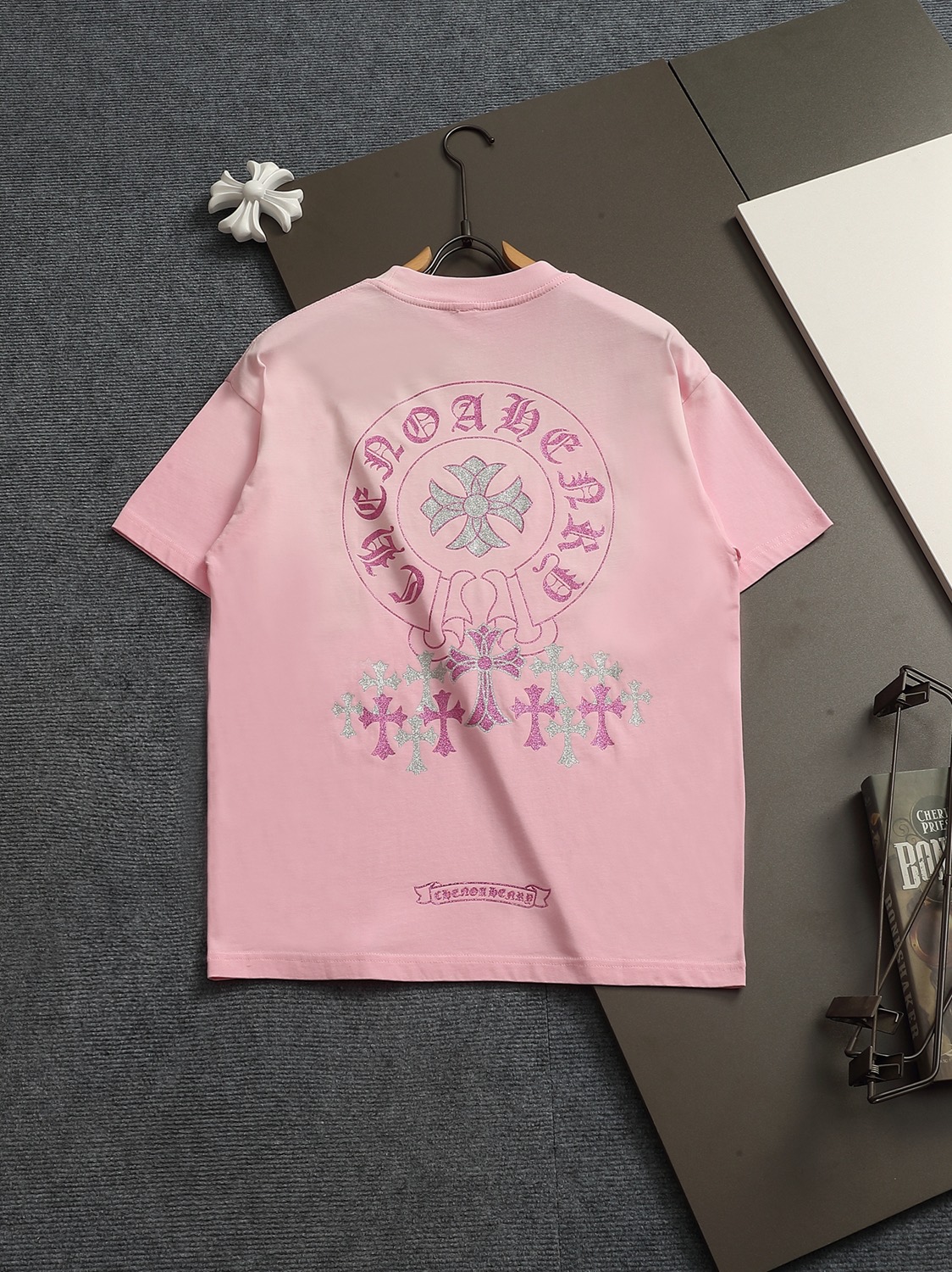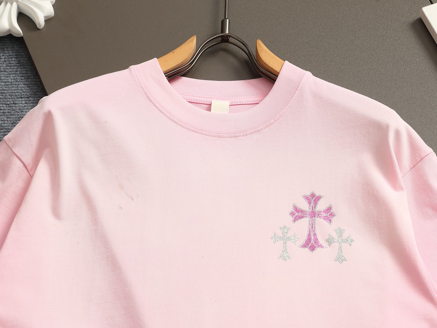 這款衣服是AAAAA 1:1 質量(非常棒). 使用了和原版一模一樣的材料. 商標部分也保持了和鉻心/Chrome Hearts一樣. 圖片拍攝是實物衣服拍攝, 您所收到的實物保證和我們圖片一模一樣.