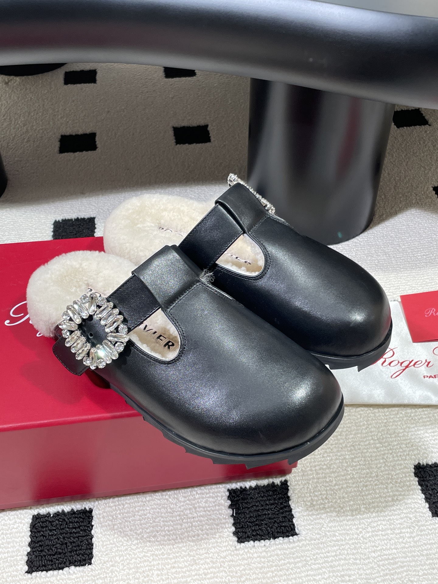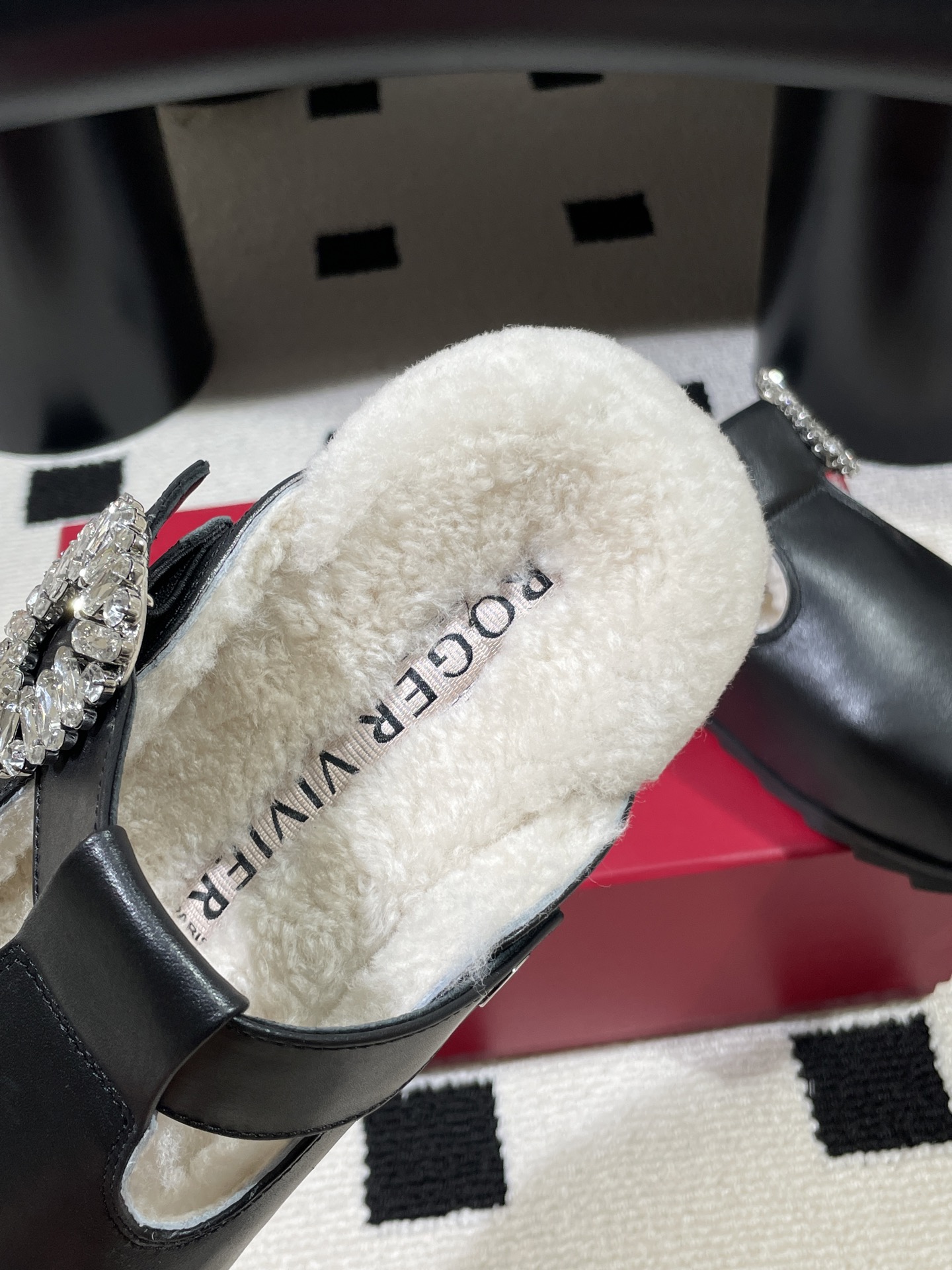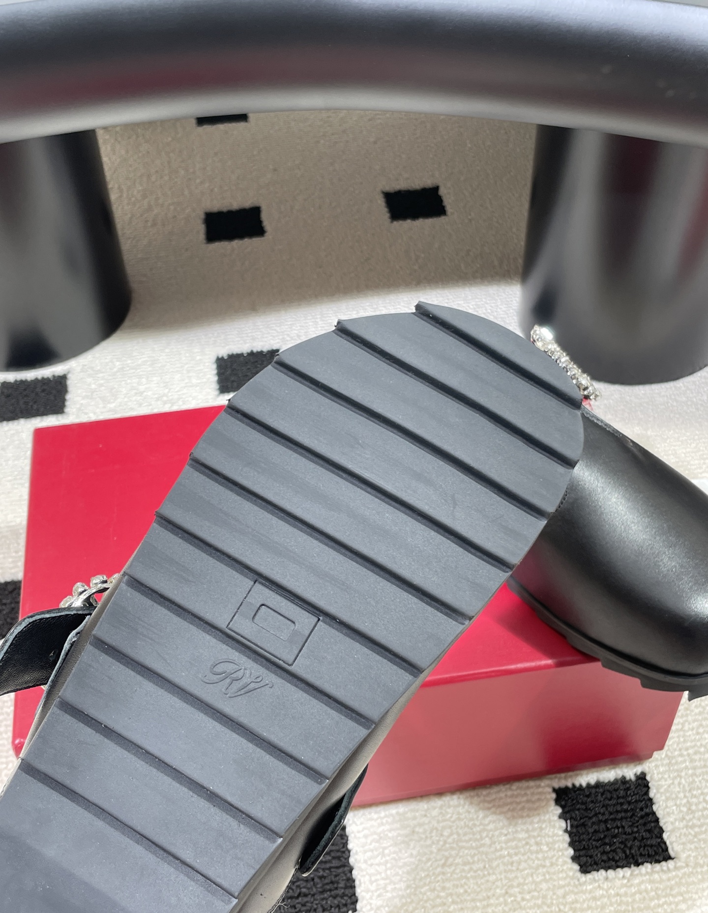 這款鞋子是AAAAA 1:1 質量(非常棒). 使用了和原版一模一樣的材料. 商標部分也保持了和羅傑維維耶/Roger Vivier一樣. 圖片拍攝是實物鞋子拍攝, 您所收到的實物保證和我們圖片一模一樣.