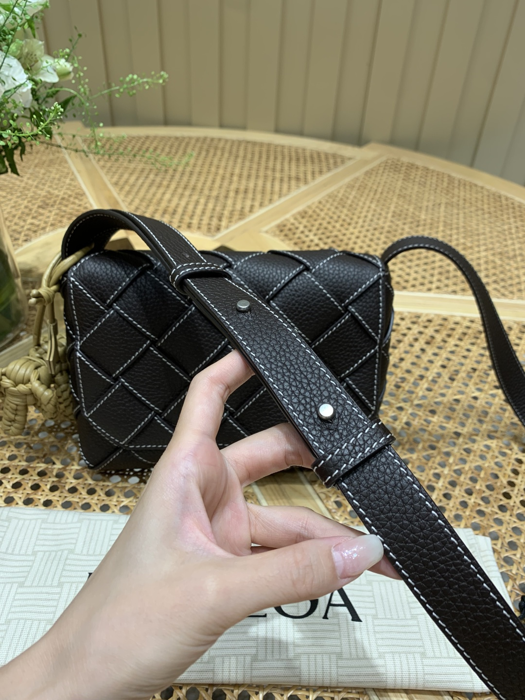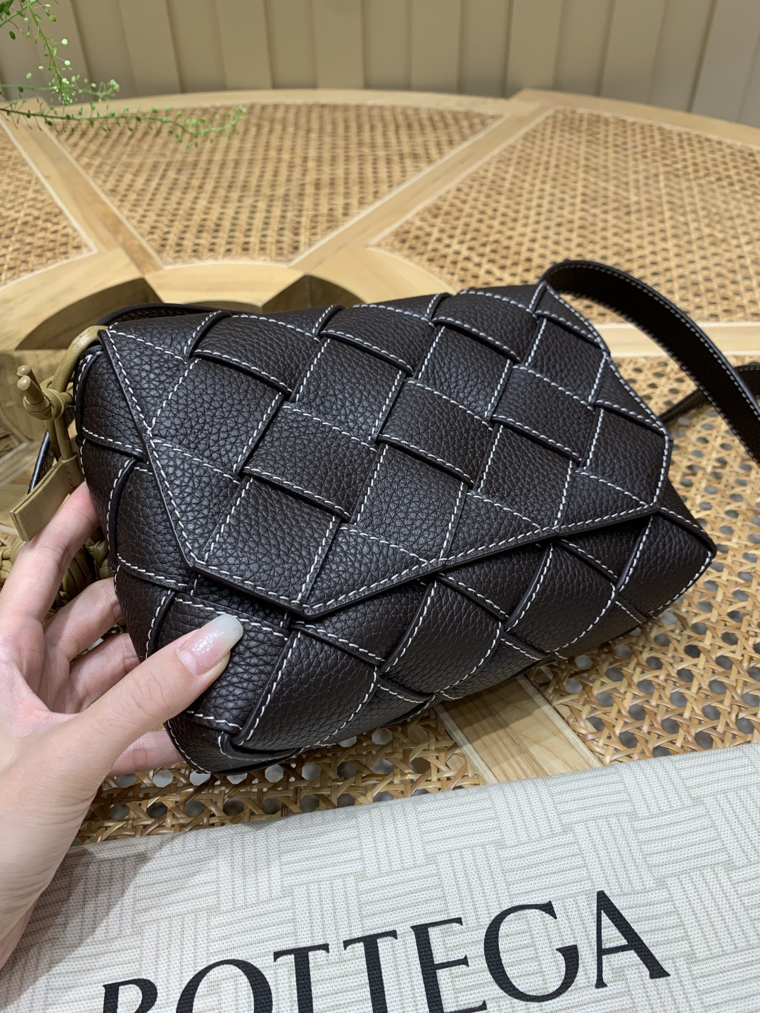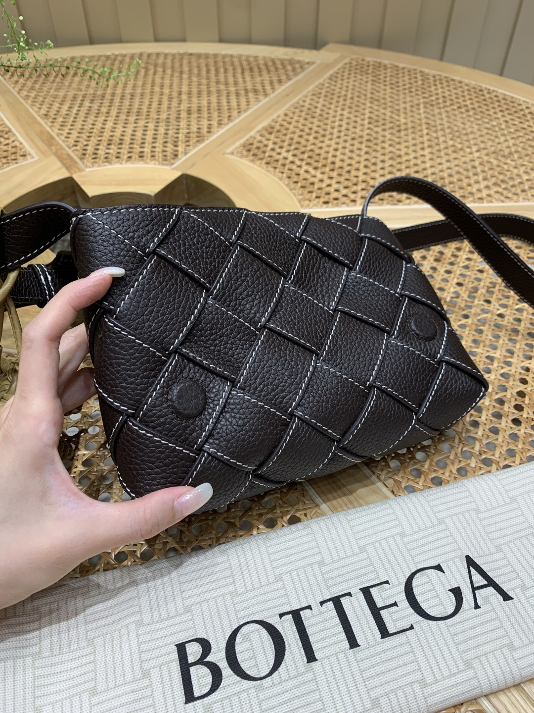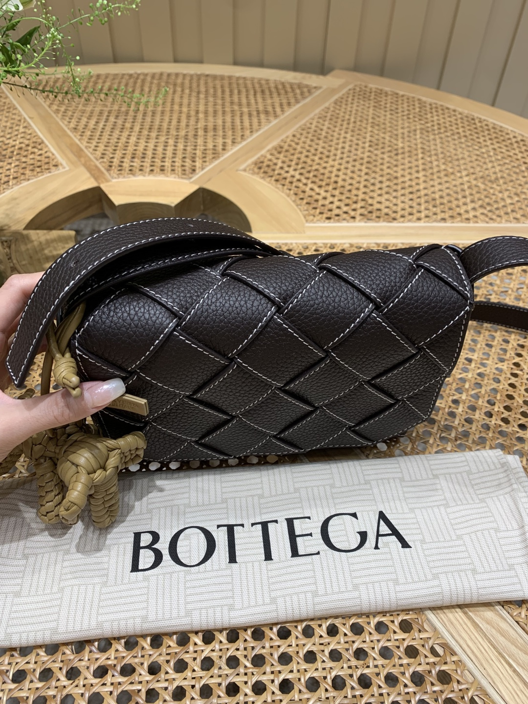 這款包包是AAAAA 1:1 質量(非常棒). 使用了和原版一模一樣的材料. 商標部分也保持了和葆蝶家/Bottega Veneta一樣. 圖片拍攝是實物包包拍攝, 您所收到的實物保證和我們圖片一模一樣.