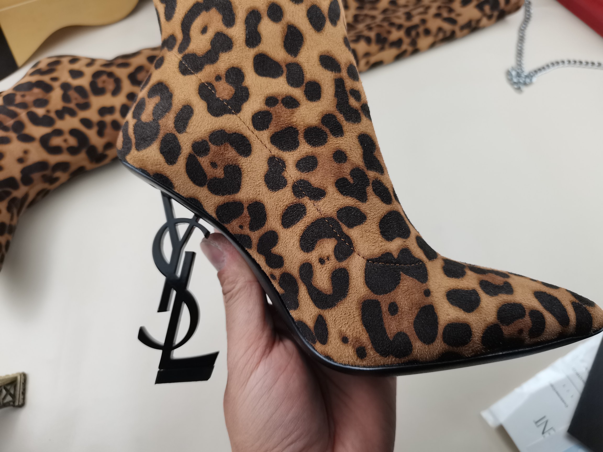 這款鞋子是AAAAA 1:1 質量(非常棒). 使用了和原版一模一樣的材料. 商標部分也保持了和聖羅蘭/Saint Laurent一樣. 圖片拍攝是實物鞋子拍攝, 您所收到的實物保證和我們圖片一模一樣.