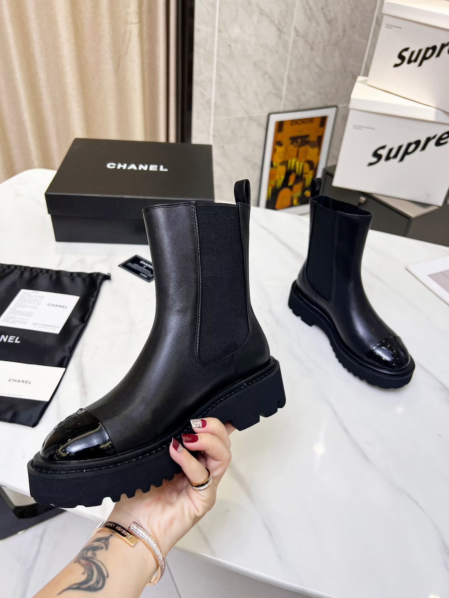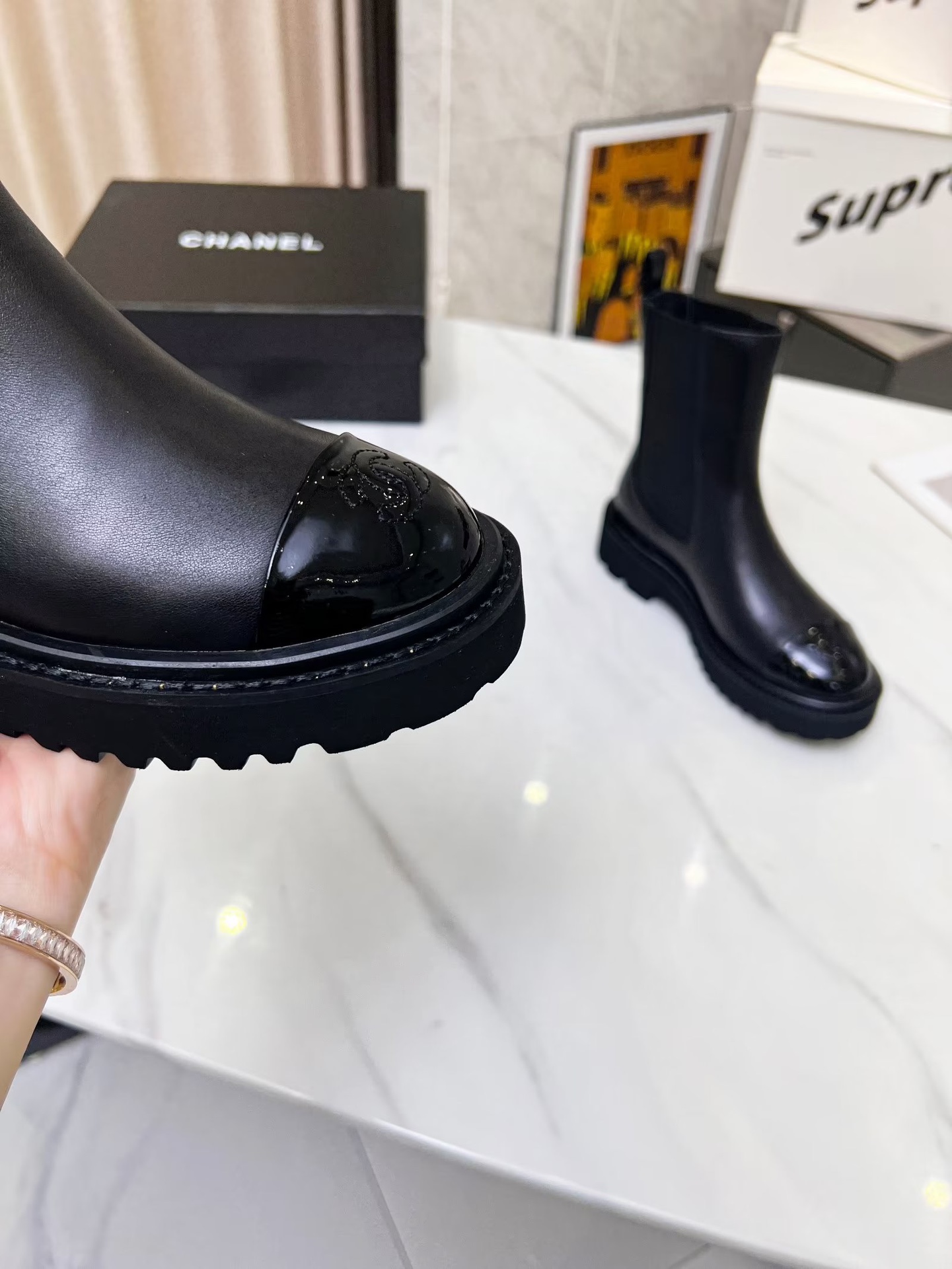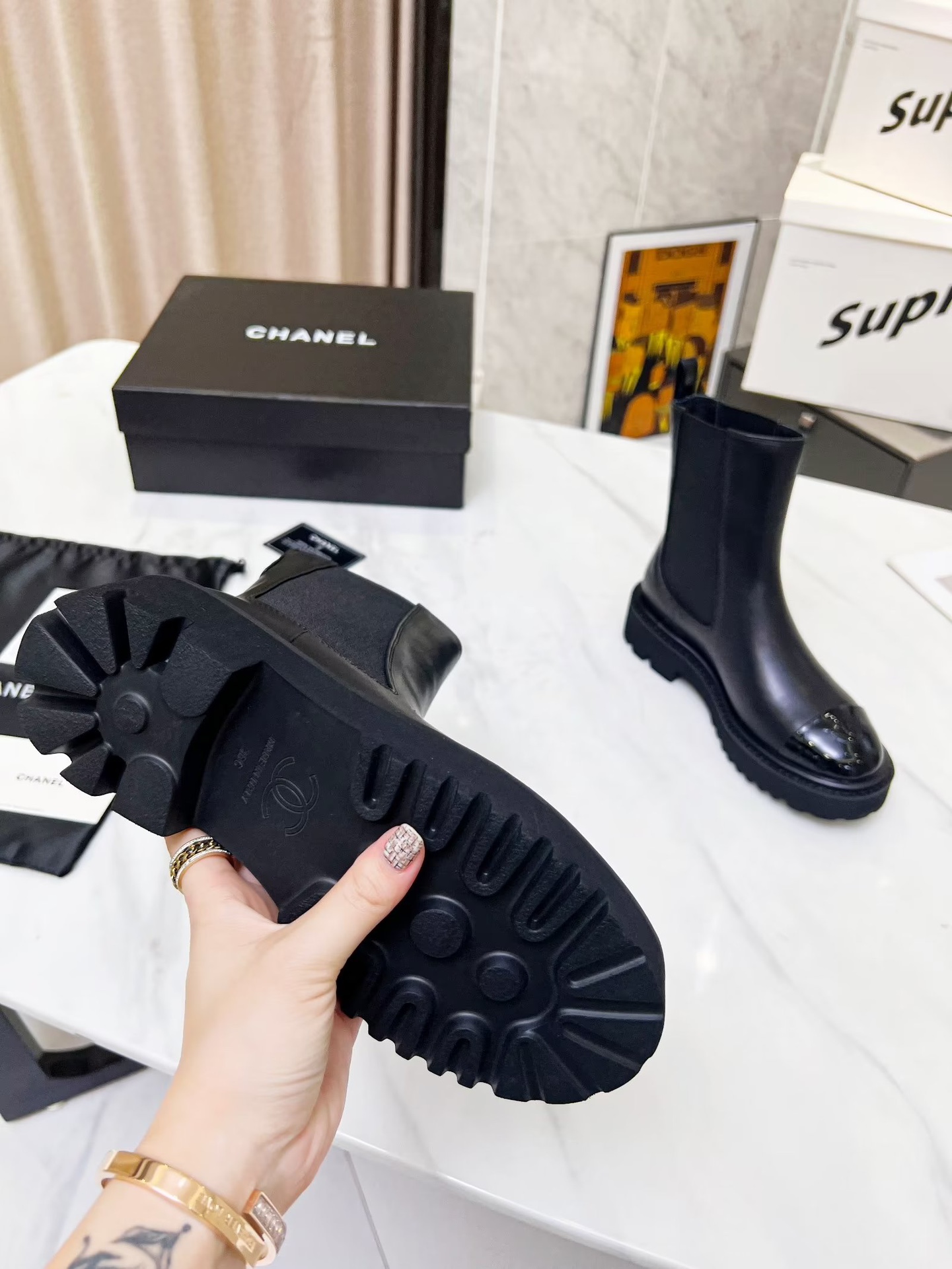 這款鞋子是AAAAA 1:1 質量(非常棒). 使用了和原版一模一樣的材料. 商標部分也保持了和香奈兒/Chanel一樣. 圖片拍攝是實物鞋子拍攝, 您所收到的實物保證和我們圖片一模一樣.