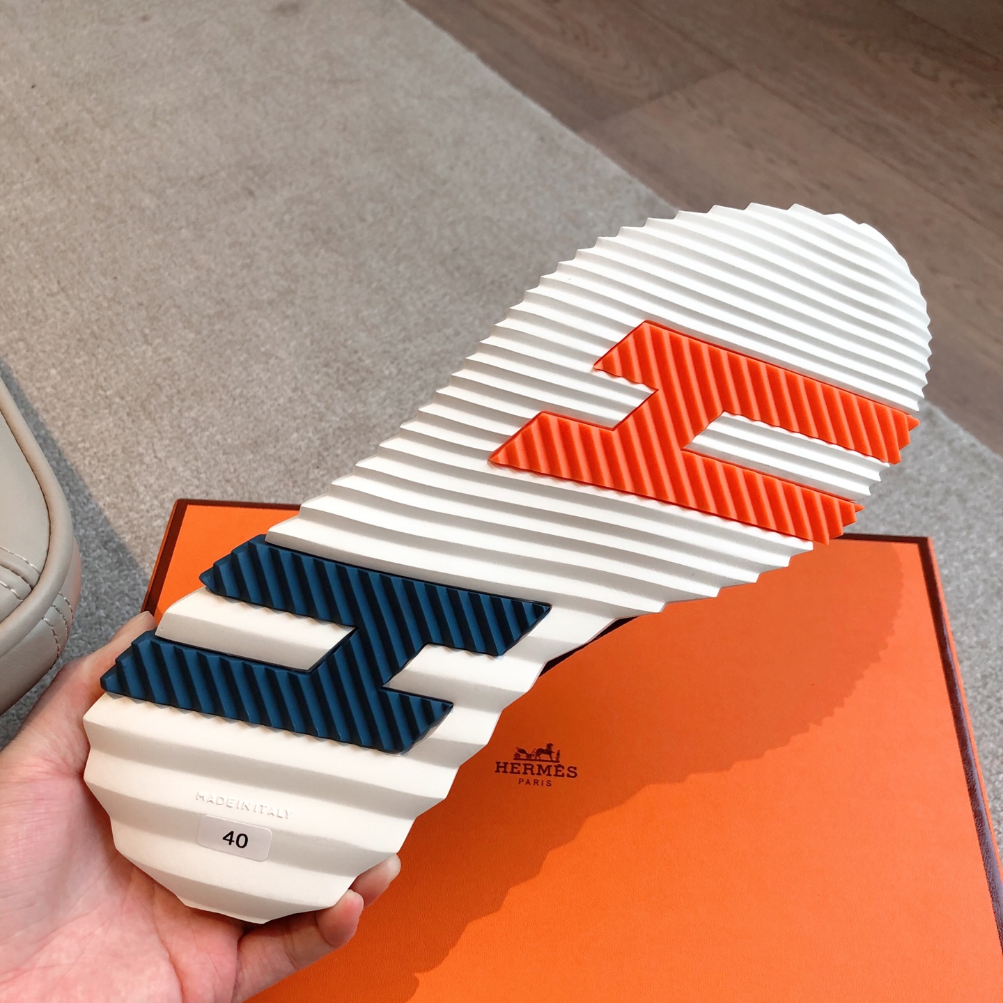 這款鞋子是AAAAA 1:1 質量(非常棒). 使用了和原版一模一樣的材料. 商標部分也保持了和愛馬仕/Hermes一樣. 圖片拍攝是實物鞋子拍攝, 您所收到的實物保證和我們圖片一模一樣.