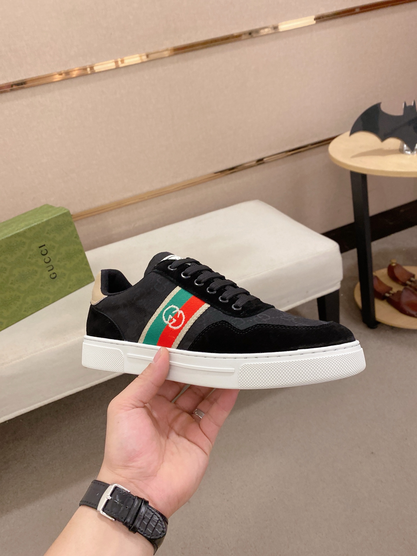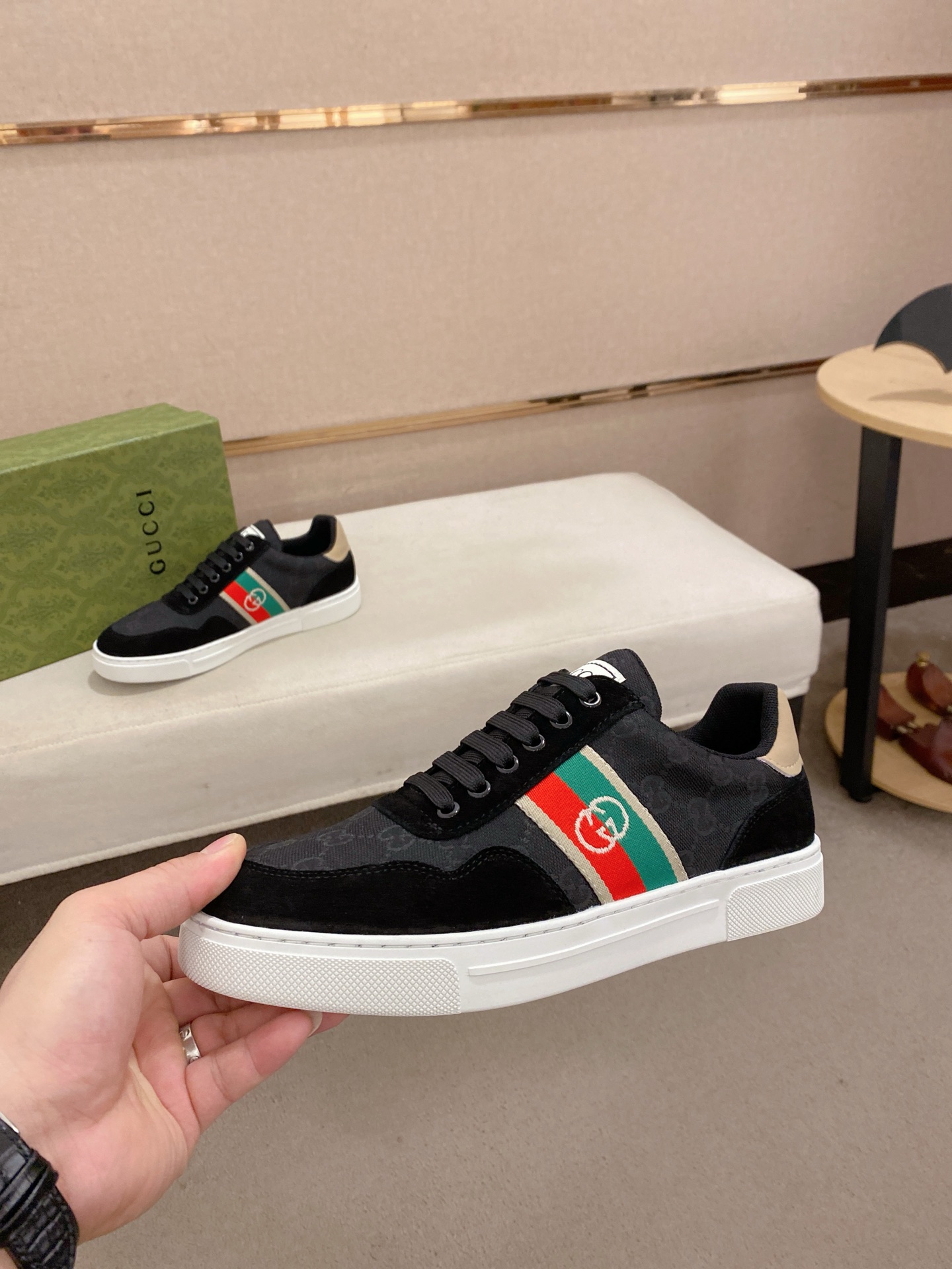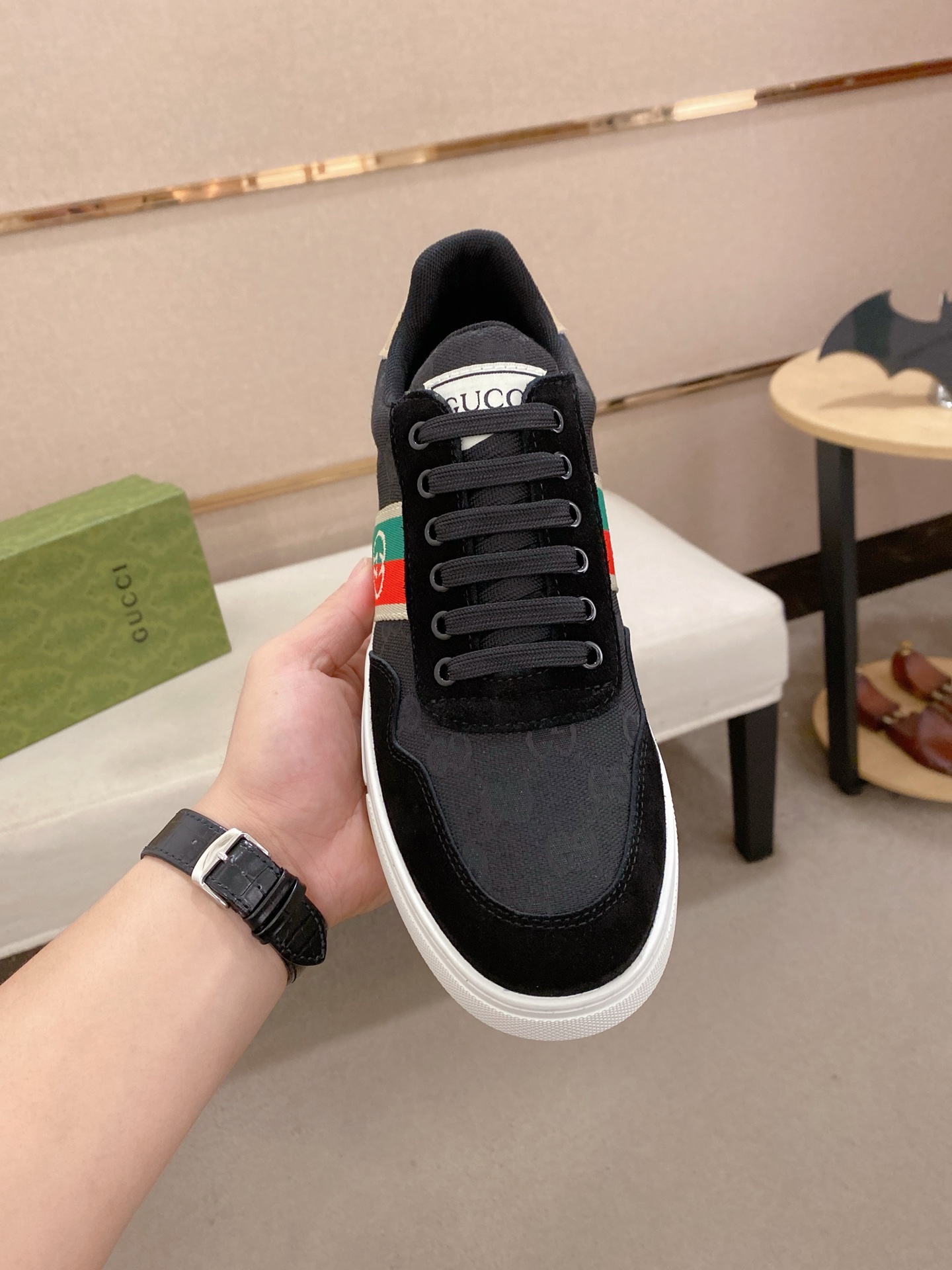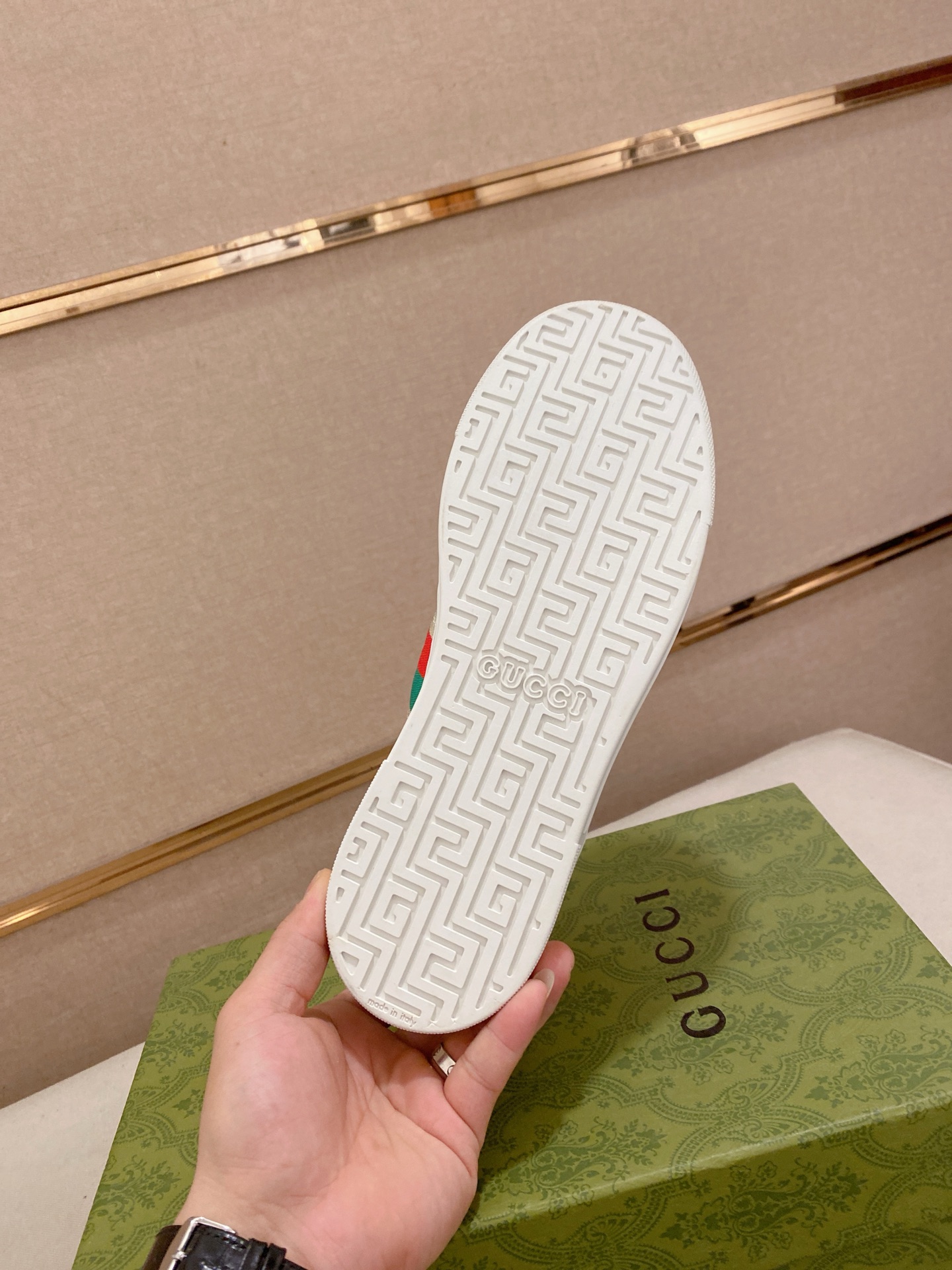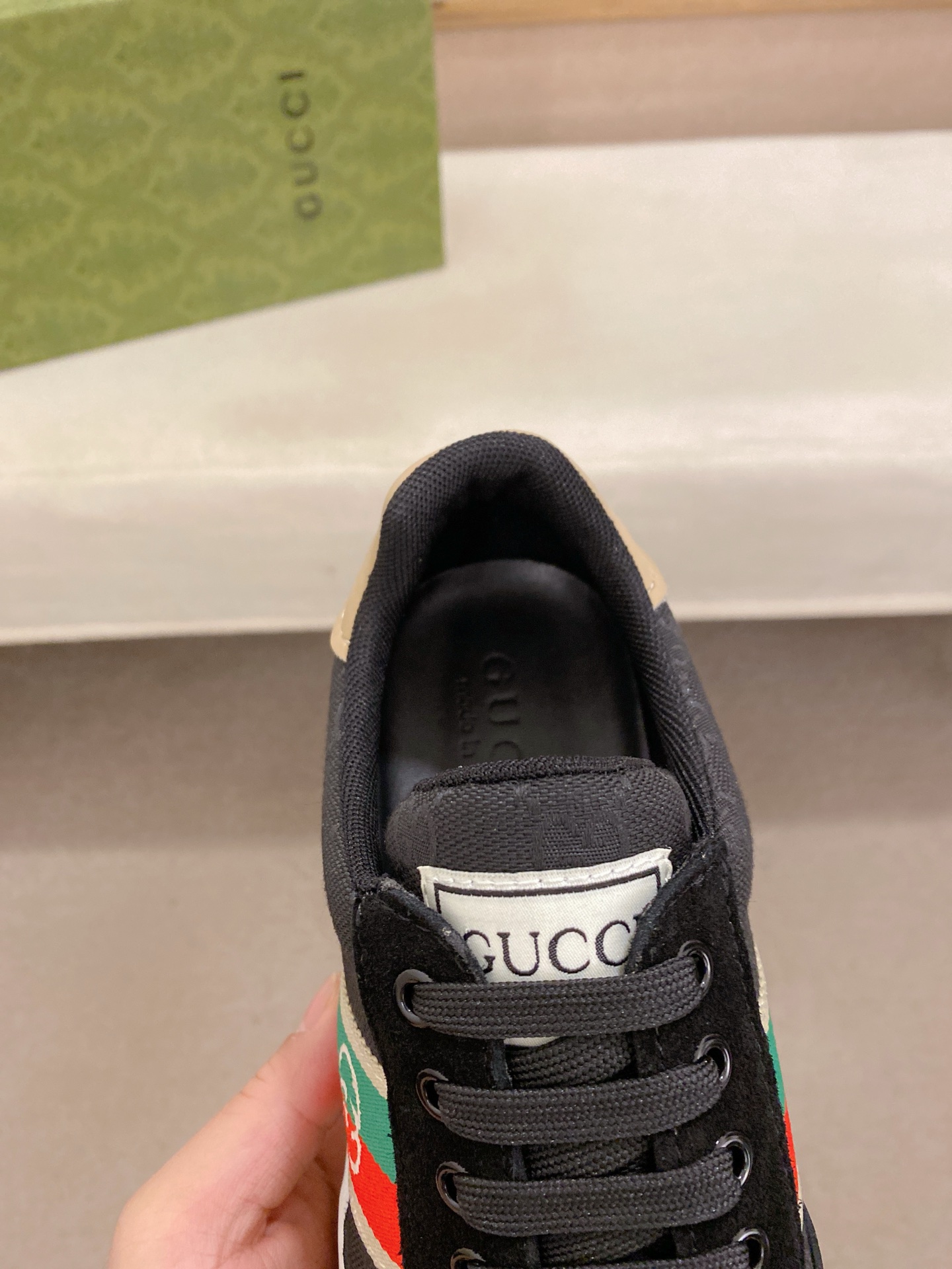 這款鞋子是AAAAA 1:1 質量(非常棒). 使用了和原版一模一樣的材料. 商標部分也保持了和古奇/Gucci一樣. 圖片拍攝是實物鞋子拍攝, 您所收到的實物保證和我們圖片一模一樣.