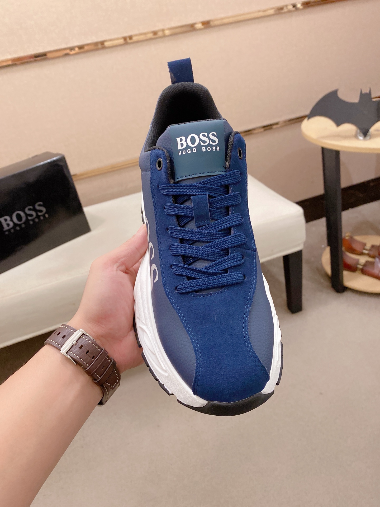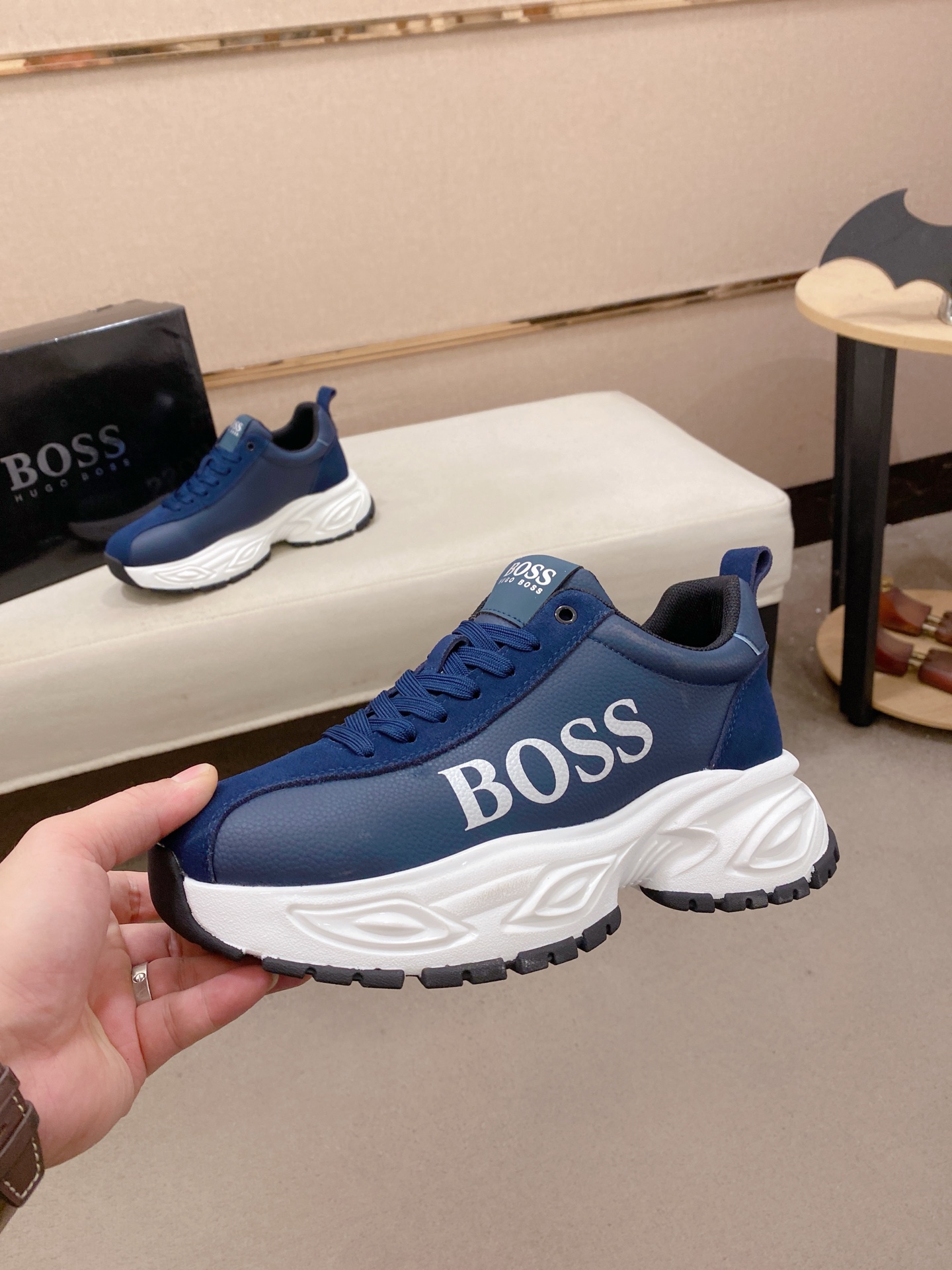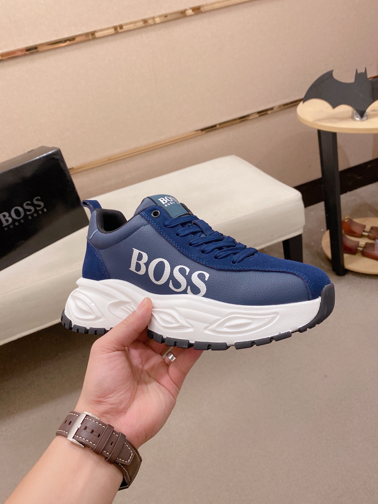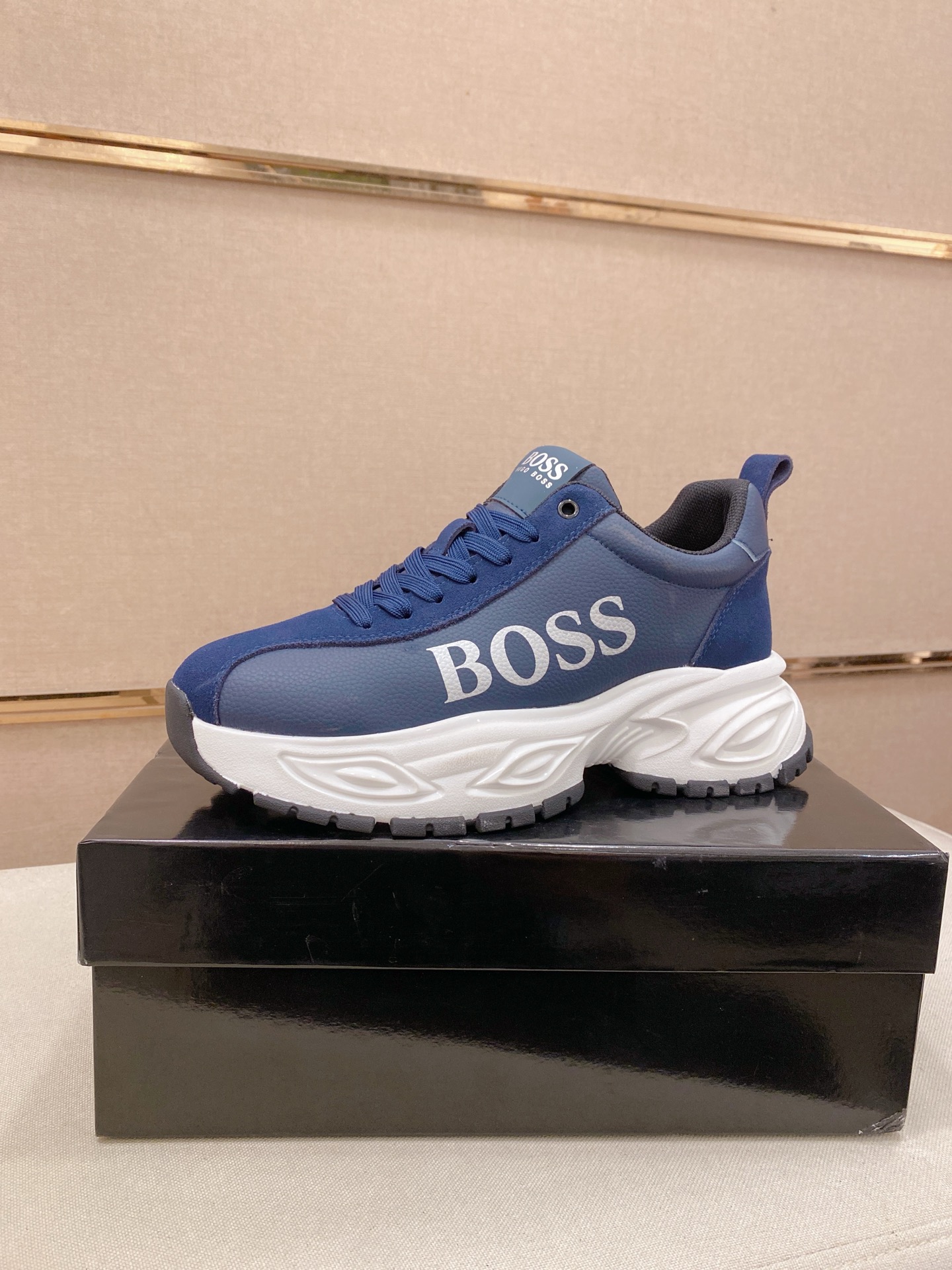 這款鞋子是AAAAA 1:1 質量(非常棒). 使用了和原版一模一樣的材料. 商標部分也保持了和BOSS一樣. 圖片拍攝是實物鞋子拍攝, 您所收到的實物保證和我們圖片一模一樣.