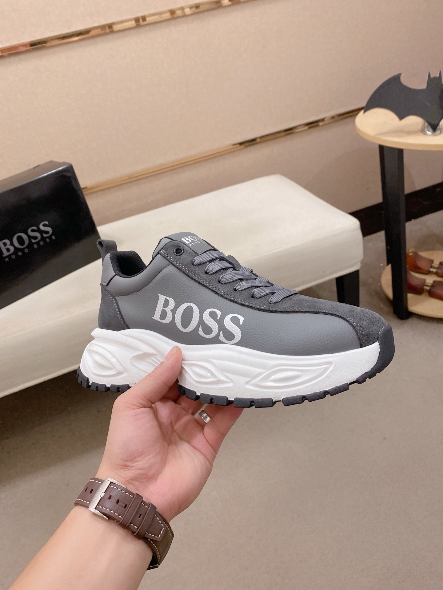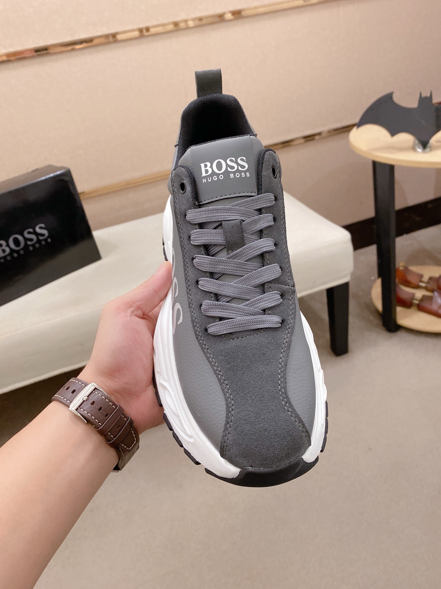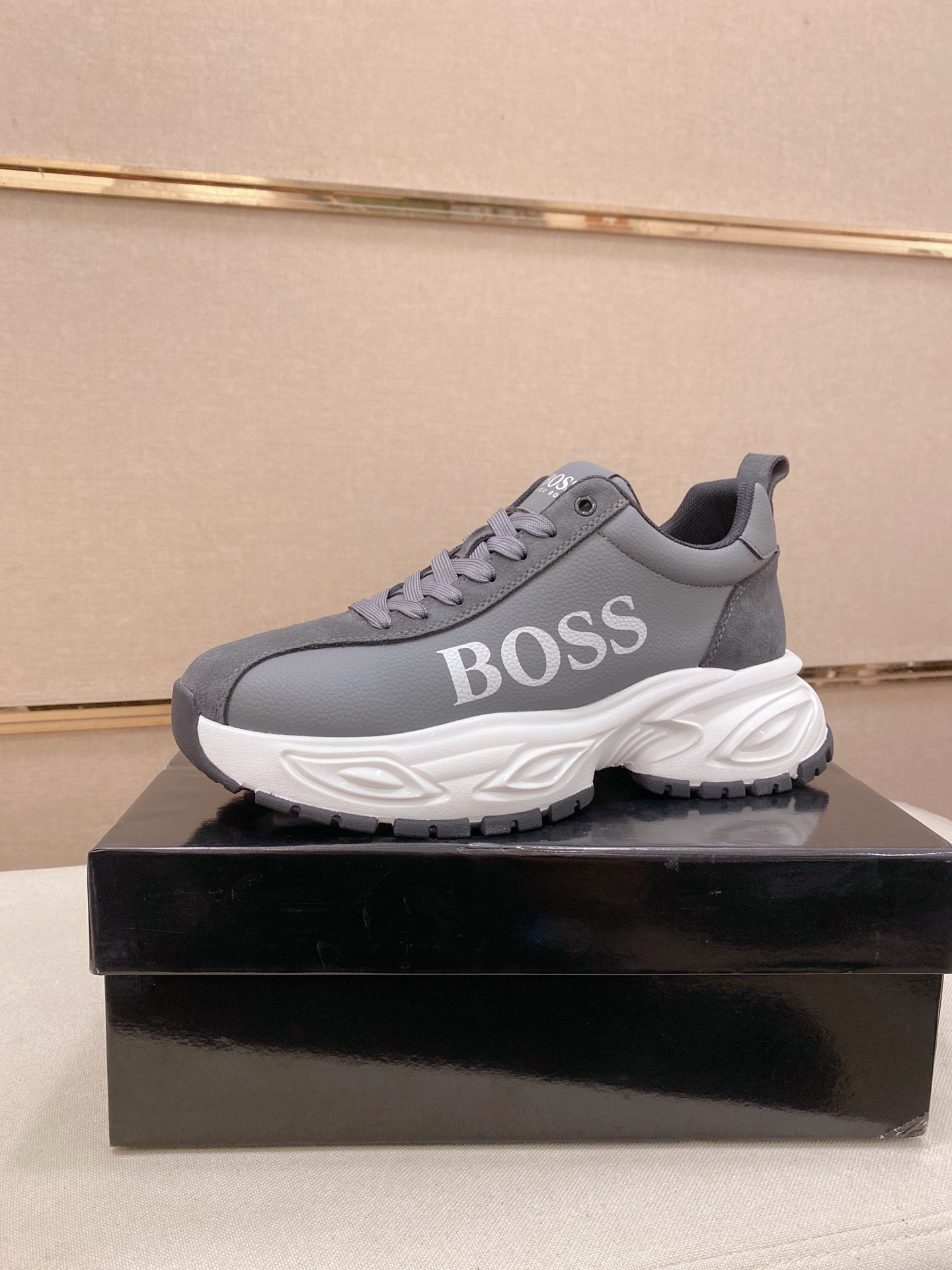 這款鞋子是AAAAA 1:1 質量(非常棒). 使用了和原版一模一樣的材料. 商標部分也保持了和BOSS一樣. 圖片拍攝是實物鞋子拍攝, 您所收到的實物保證和我們圖片一模一樣.