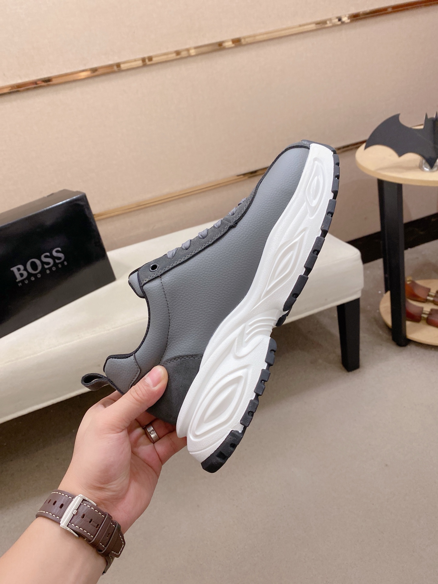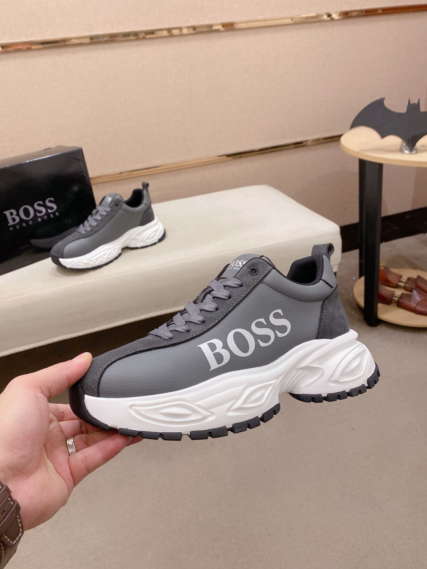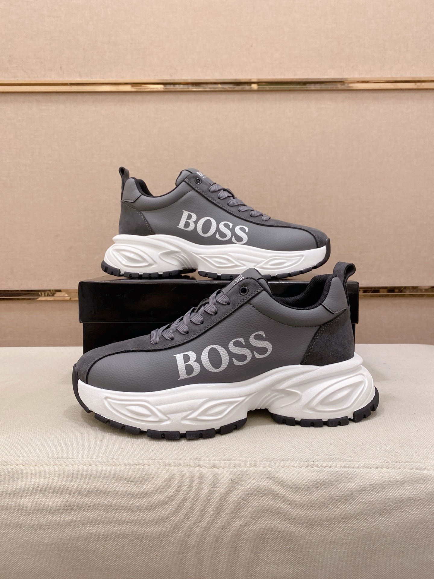 這款鞋子是AAAAA 1:1 質量(非常棒). 使用了和原版一模一樣的材料. 商標部分也保持了和BOSS一樣. 圖片拍攝是實物鞋子拍攝, 您所收到的實物保證和我們圖片一模一樣.