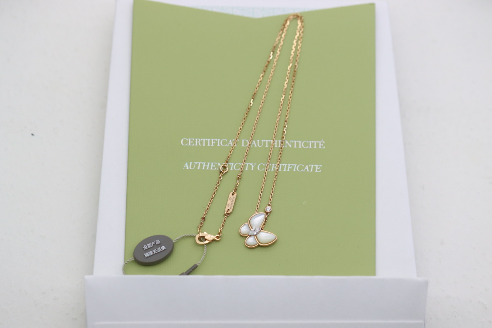 這款首飾是AAAAA 1:1 質量(非常棒). 使用了和原版一模一樣的材料. 商標部分也保持了和梵克雅寶/Van Cleef & Arpels一樣. 圖片拍攝是實物首飾拍攝, 您所收到的實物保證和我們圖片一模一樣.