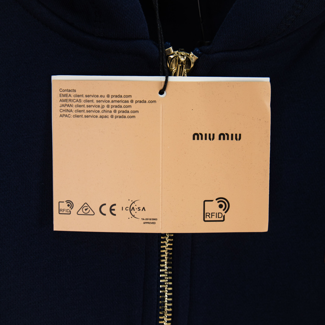 這款衣服是AAAAA 1:1 質量(非常棒). 使用了和原版一模一樣的材料. 商標部分也保持了和繆繆/Miu Miu一樣. 圖片拍攝是實物衣服拍攝, 您所收到的實物保證和我們圖片一模一樣.