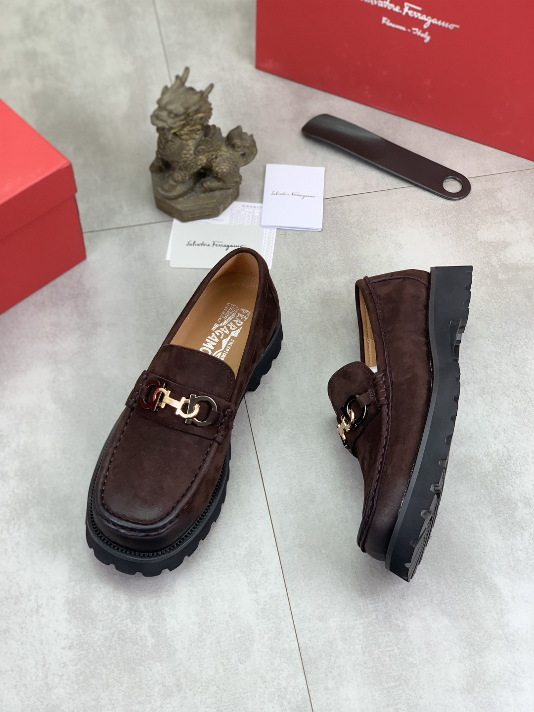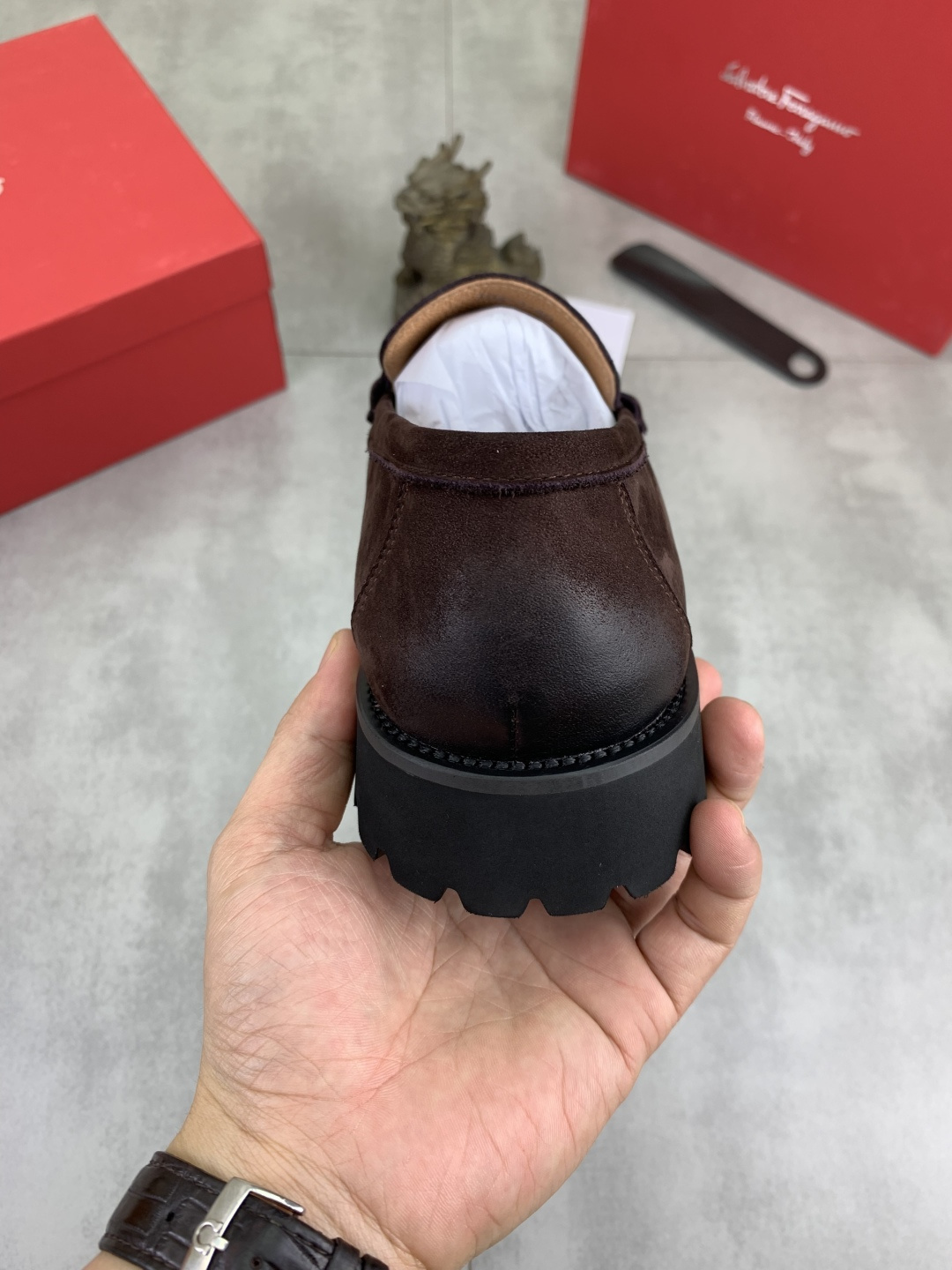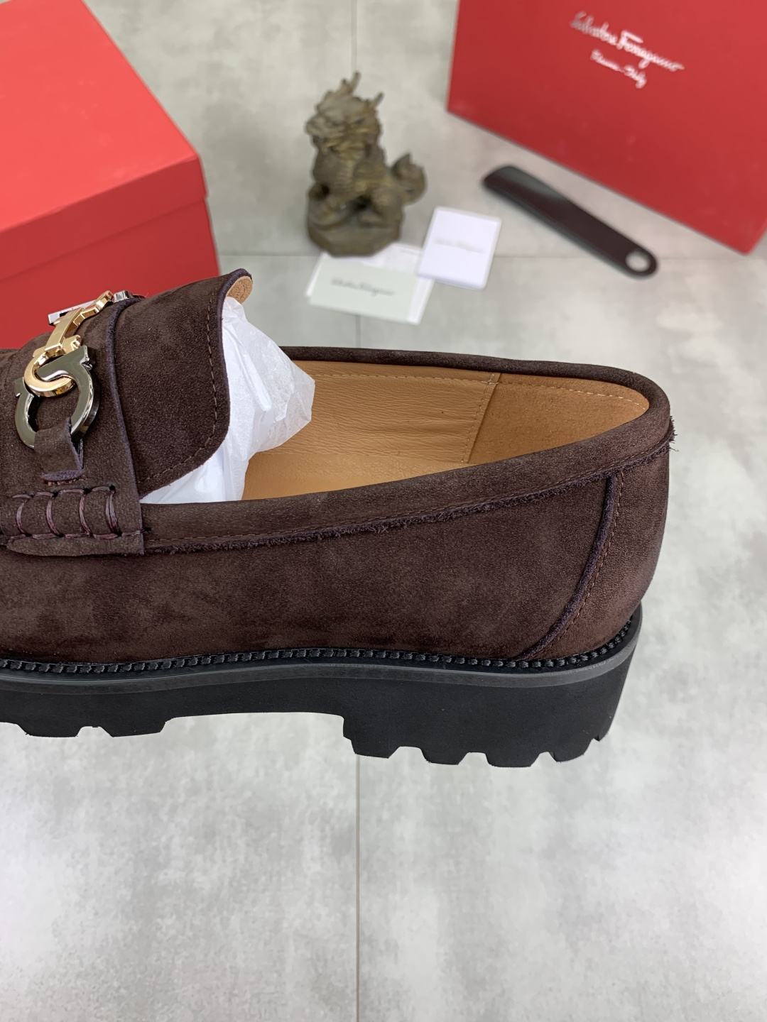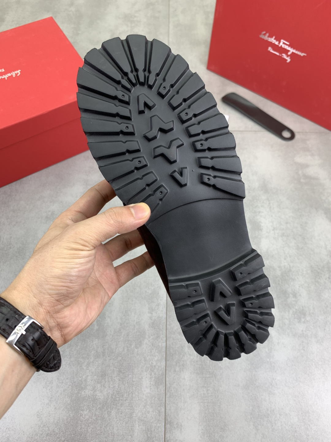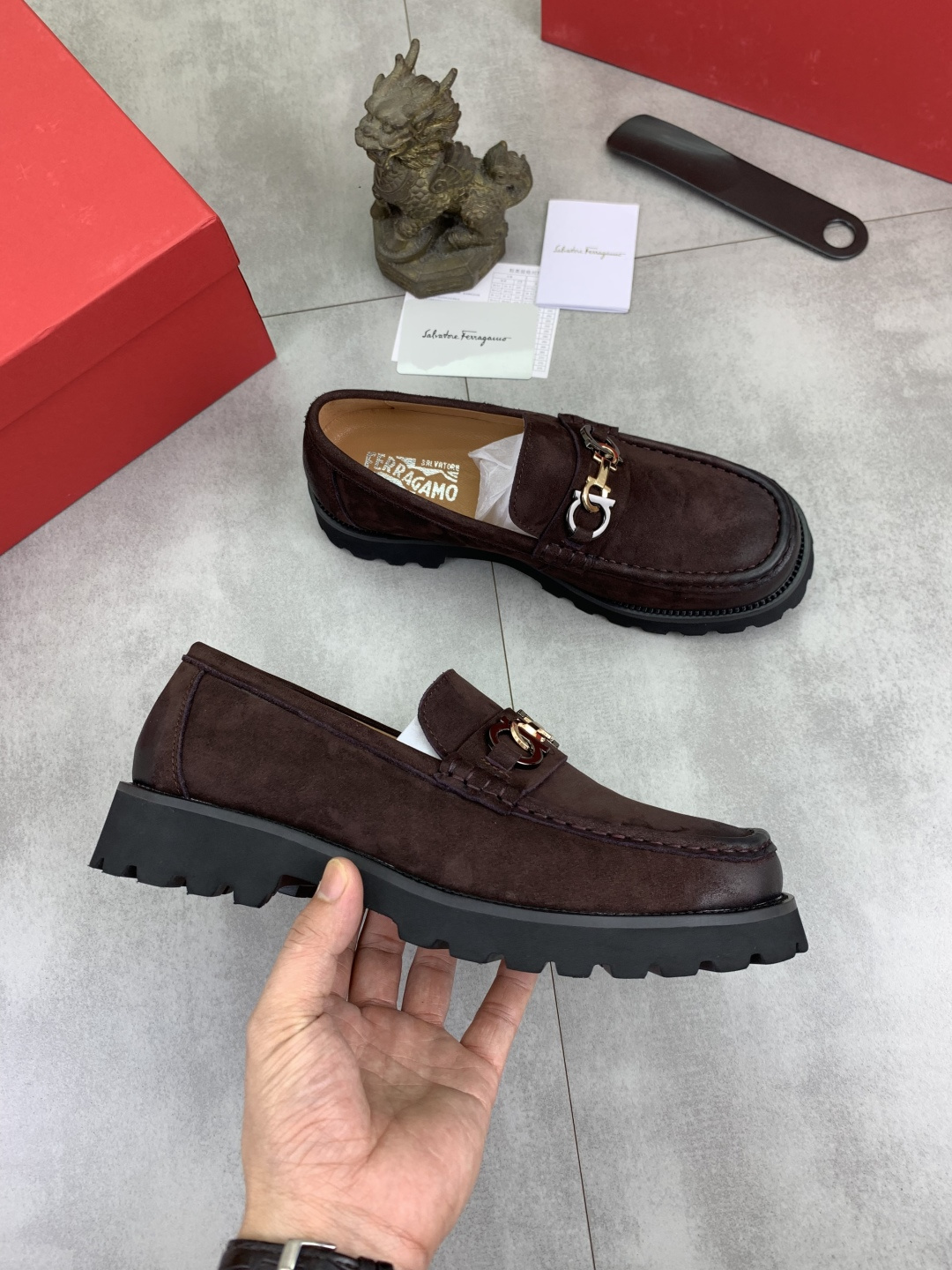 這款鞋子是AAAAA 1:1 質量(非常棒). 使用了和原版一模一樣的材料. 商標部分也保持了和菲拉格慕/Salvatore Ferragamo一樣. 圖片拍攝是實物鞋子拍攝, 您所收到的實物保證和我們圖片一模一樣.