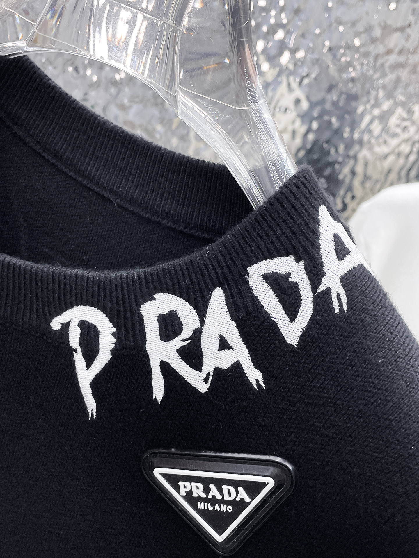 這款衣服是AAAAA 1:1 質量(非常棒). 使用了和原版一模一樣的材料. 商標部分也保持了和普拉達/Prada一樣. 圖片拍攝是實物衣服拍攝, 您所收到的實物保證和我們圖片一模一樣.