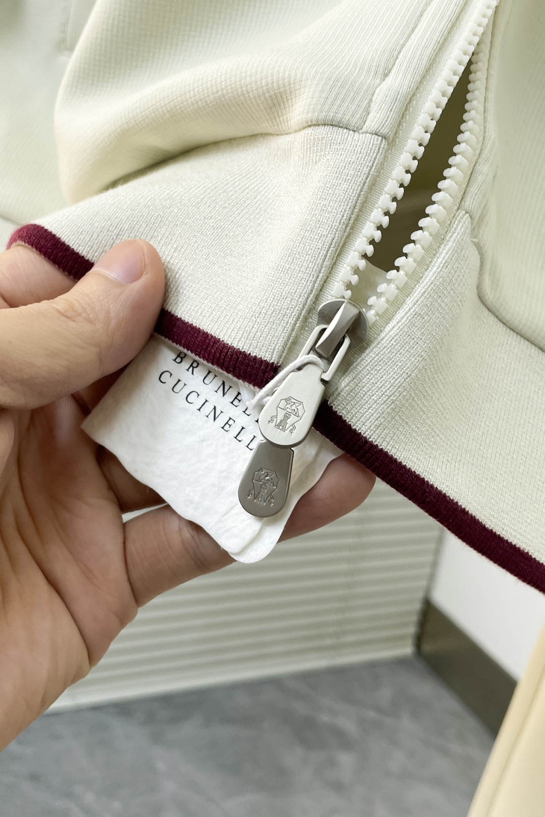 這款衣服是AAAAA 1:1 質量(非常棒). 使用了和原版一模一樣的材料. 商標部分也保持了和Brunello Cucinelli一樣. 圖片拍攝是實物衣服拍攝, 您所收到的實物保證和我們圖片一模一樣.