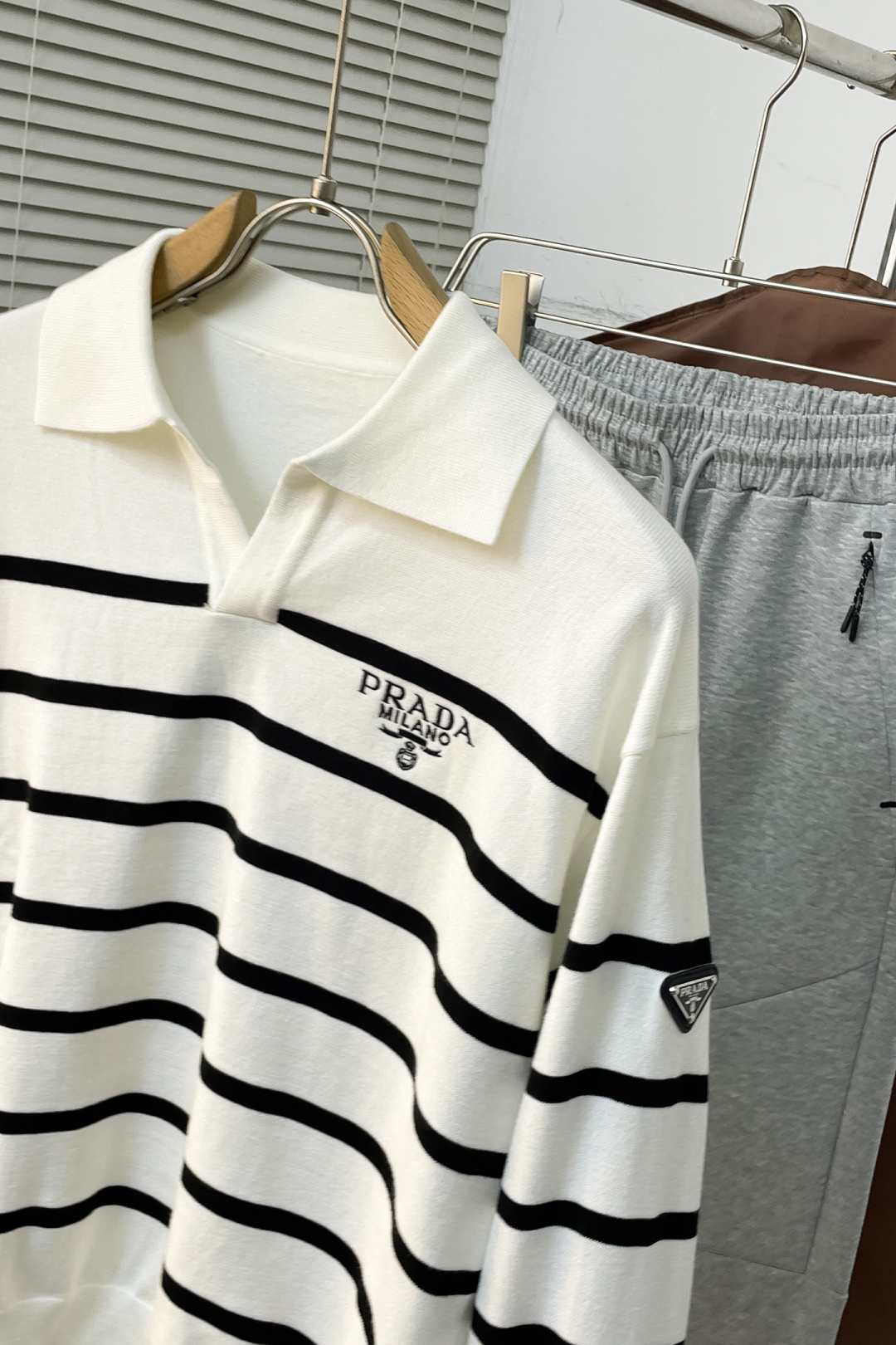 這款衣服是AAAAA 1:1 質量(非常棒). 使用了和原版一模一樣的材料. 商標部分也保持了和普拉達/Prada一樣. 圖片拍攝是實物衣服拍攝, 您所收到的實物保證和我們圖片一模一樣.