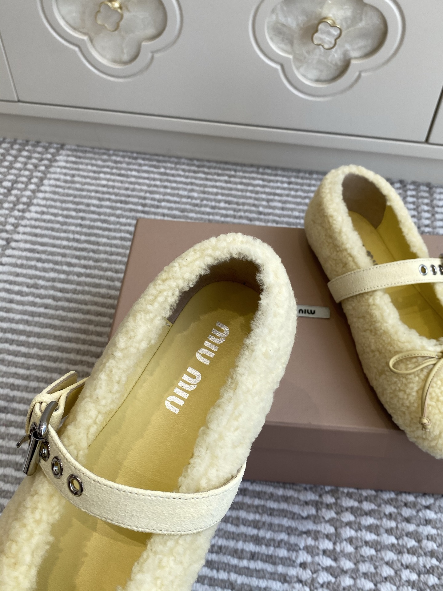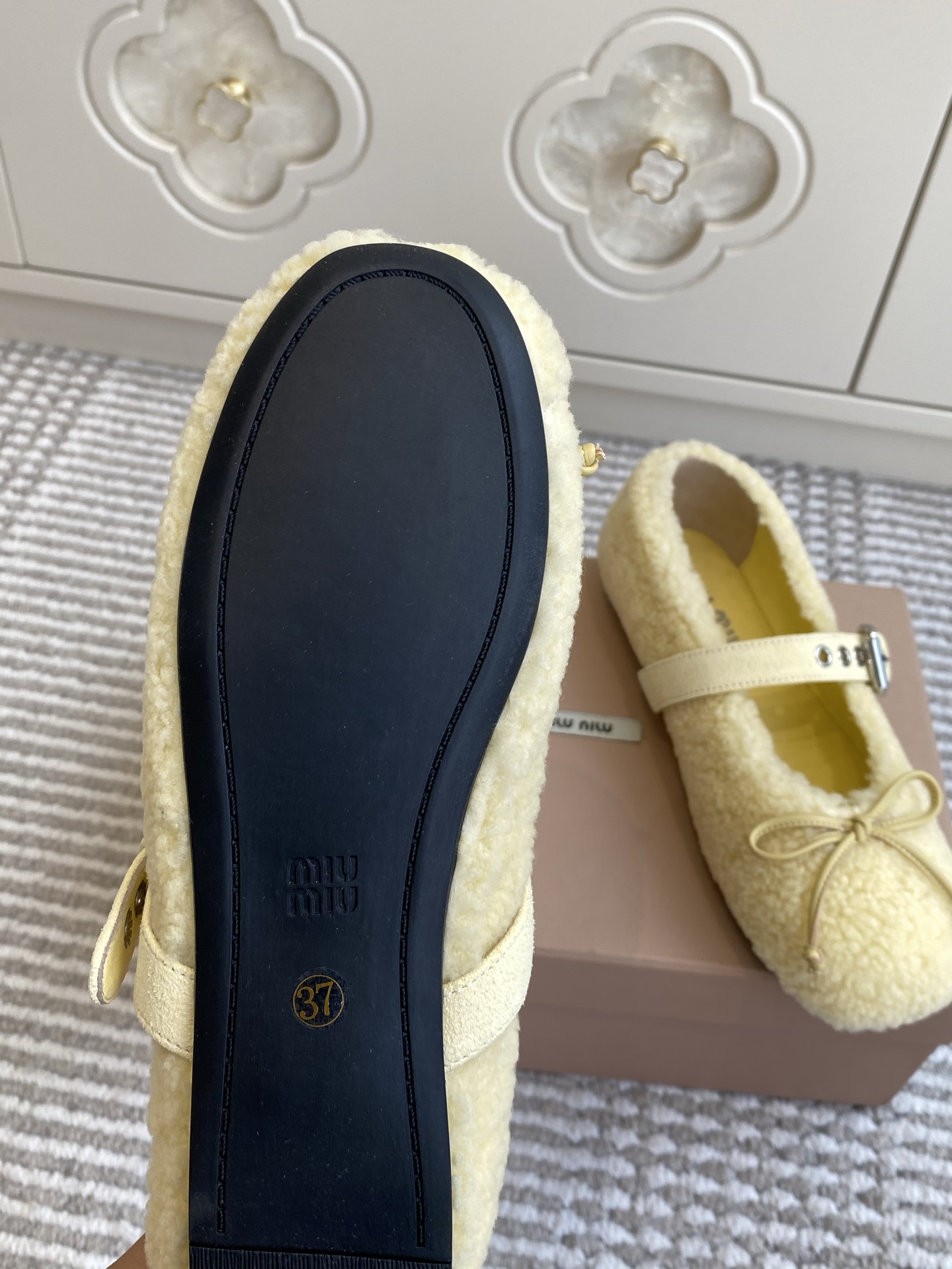 這款鞋子是AAAAA 1:1 質量(非常棒). 使用了和原版一模一樣的材料. 商標部分也保持了和繆繆/Miu Miu一樣. 圖片拍攝是實物鞋子拍攝, 您所收到的實物保證和我們圖片一模一樣.