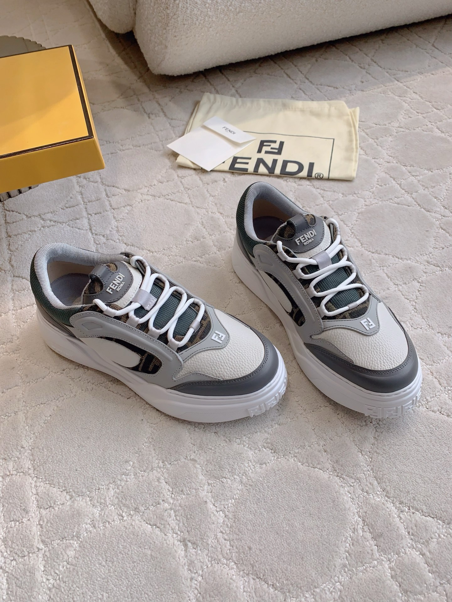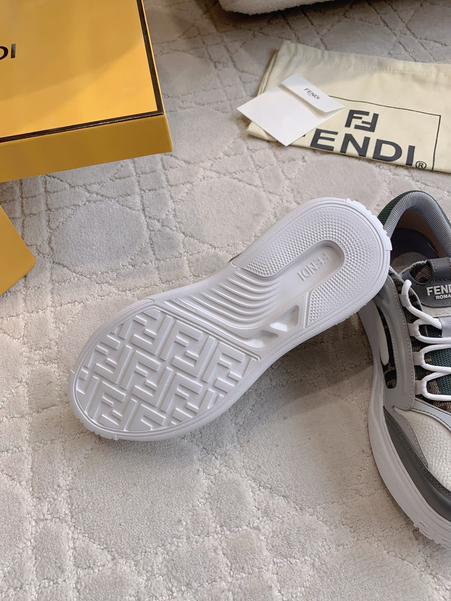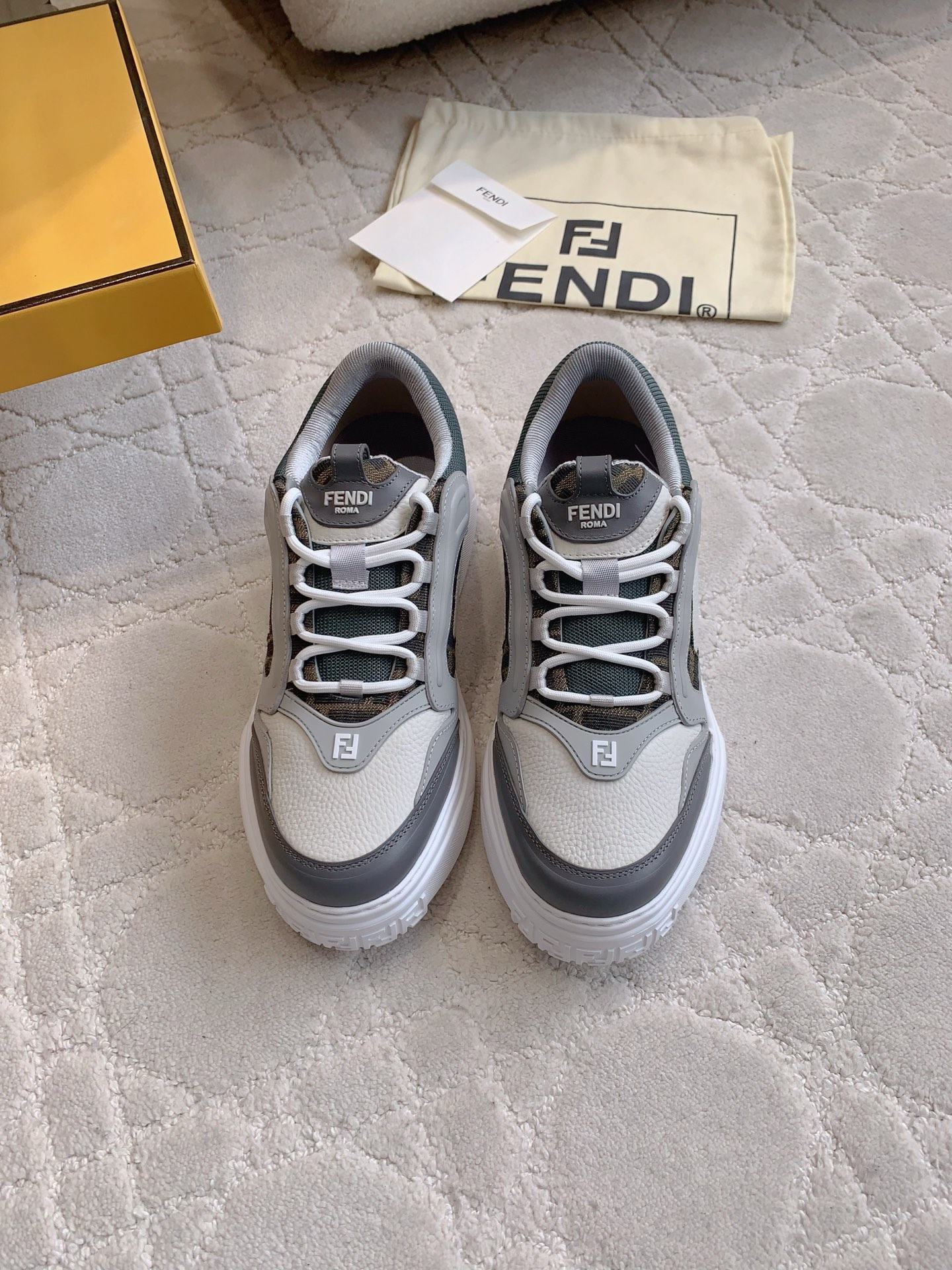 這款鞋子是AAAAA 1:1 質量(非常棒). 使用了和原版一模一樣的材料. 商標部分也保持了和芬迪/Fendi一樣. 圖片拍攝是實物鞋子拍攝, 您所收到的實物保證和我們圖片一模一樣.