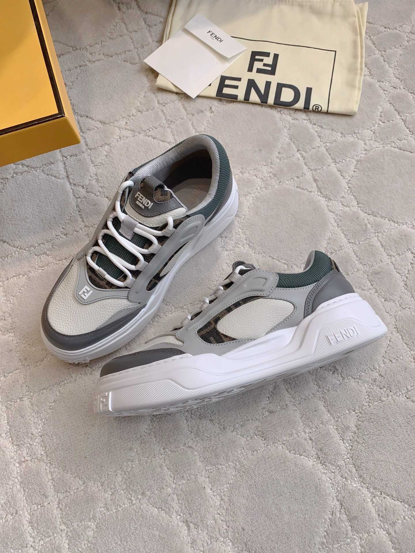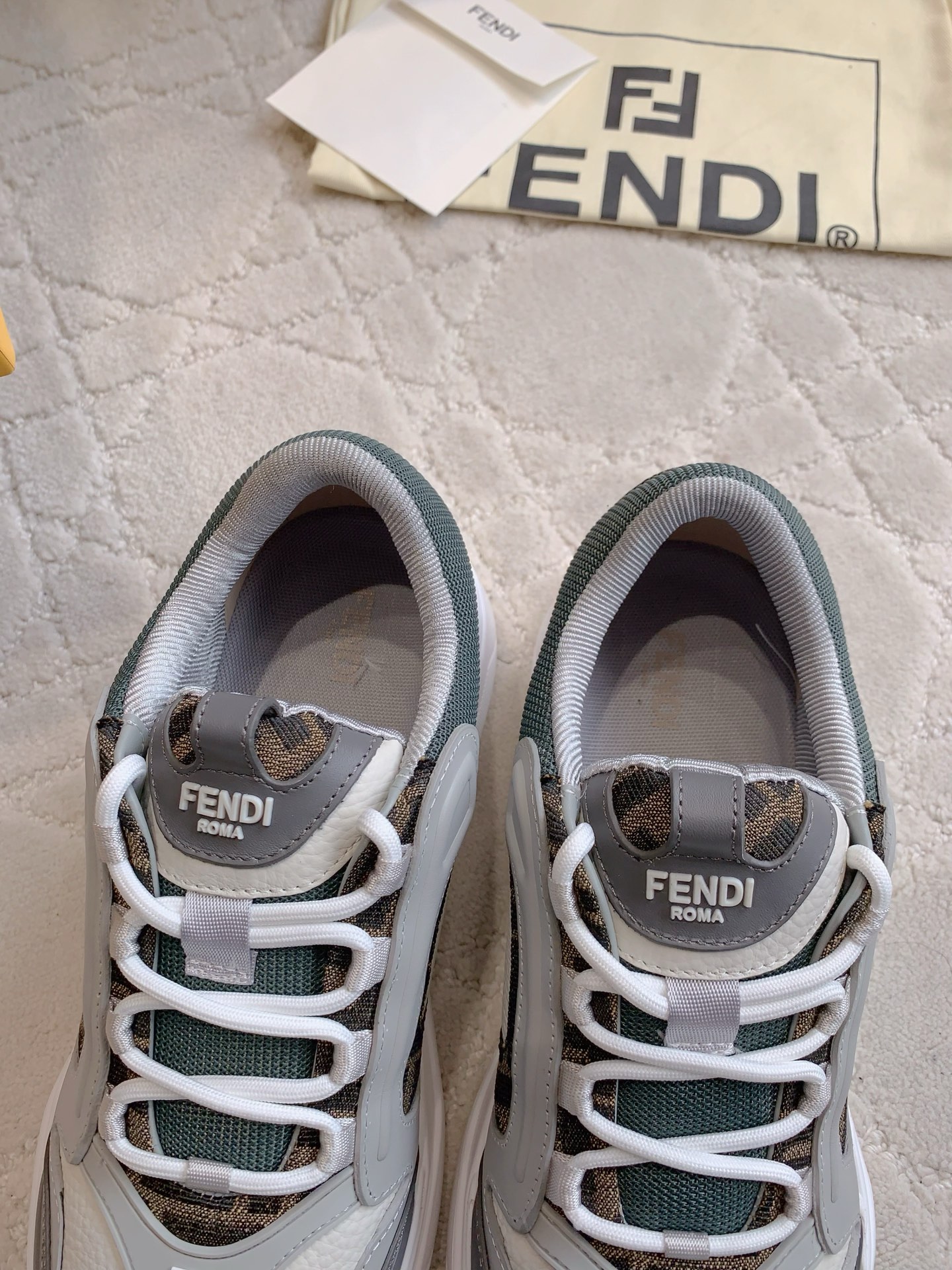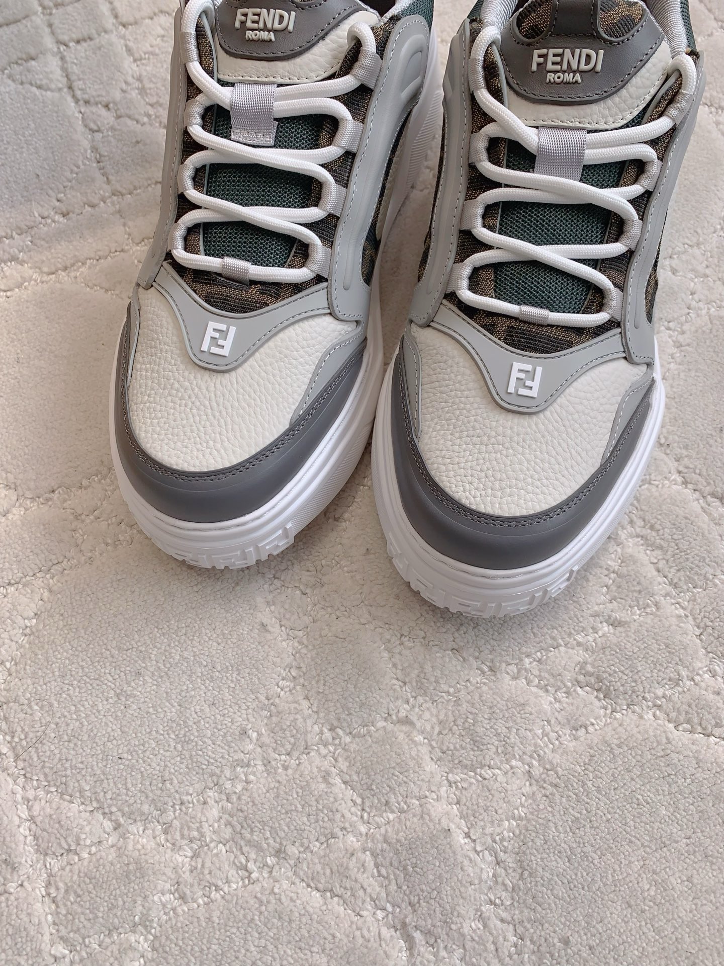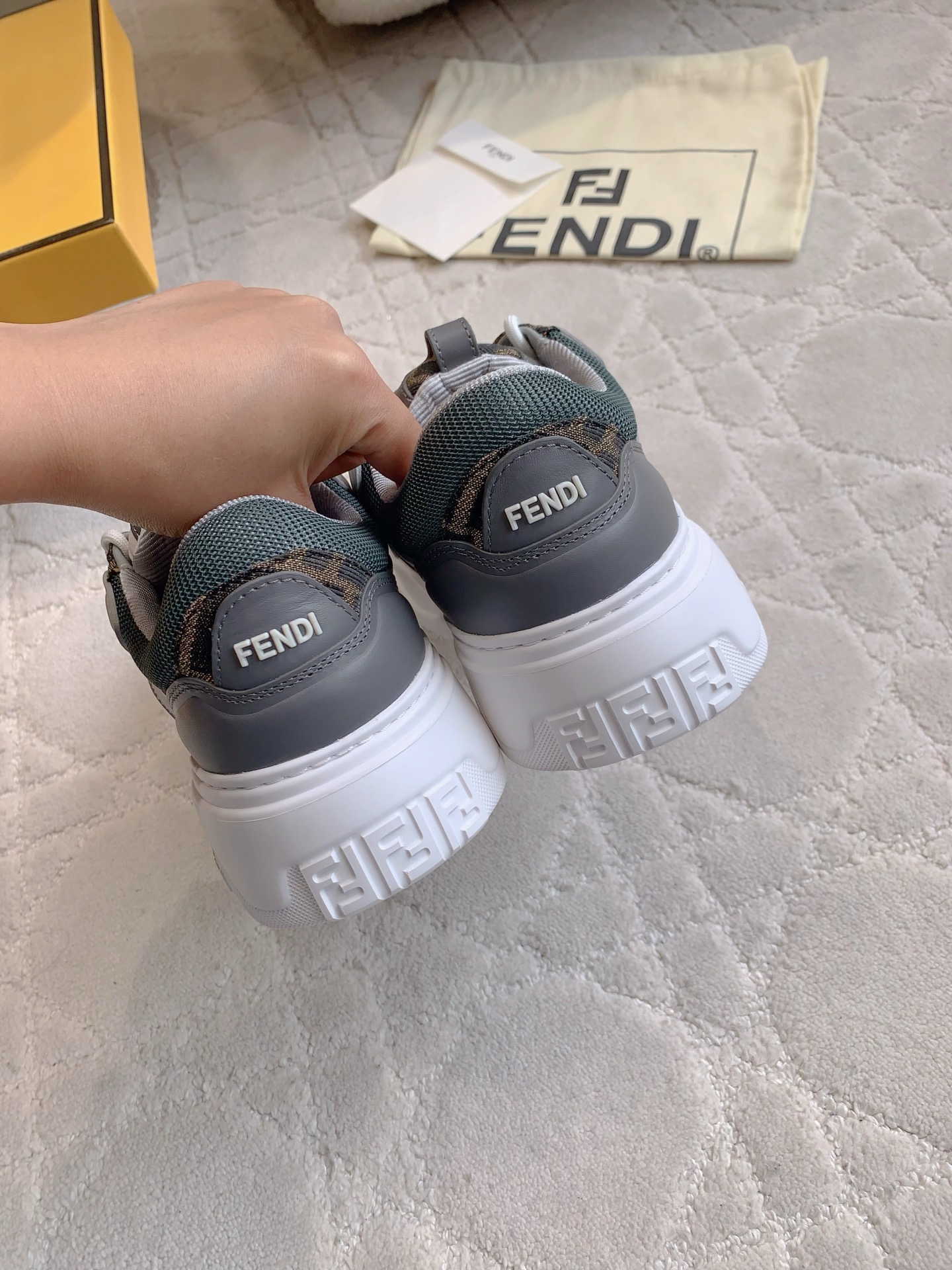 這款鞋子是AAAAA 1:1 質量(非常棒). 使用了和原版一模一樣的材料. 商標部分也保持了和芬迪/Fendi一樣. 圖片拍攝是實物鞋子拍攝, 您所收到的實物保證和我們圖片一模一樣.