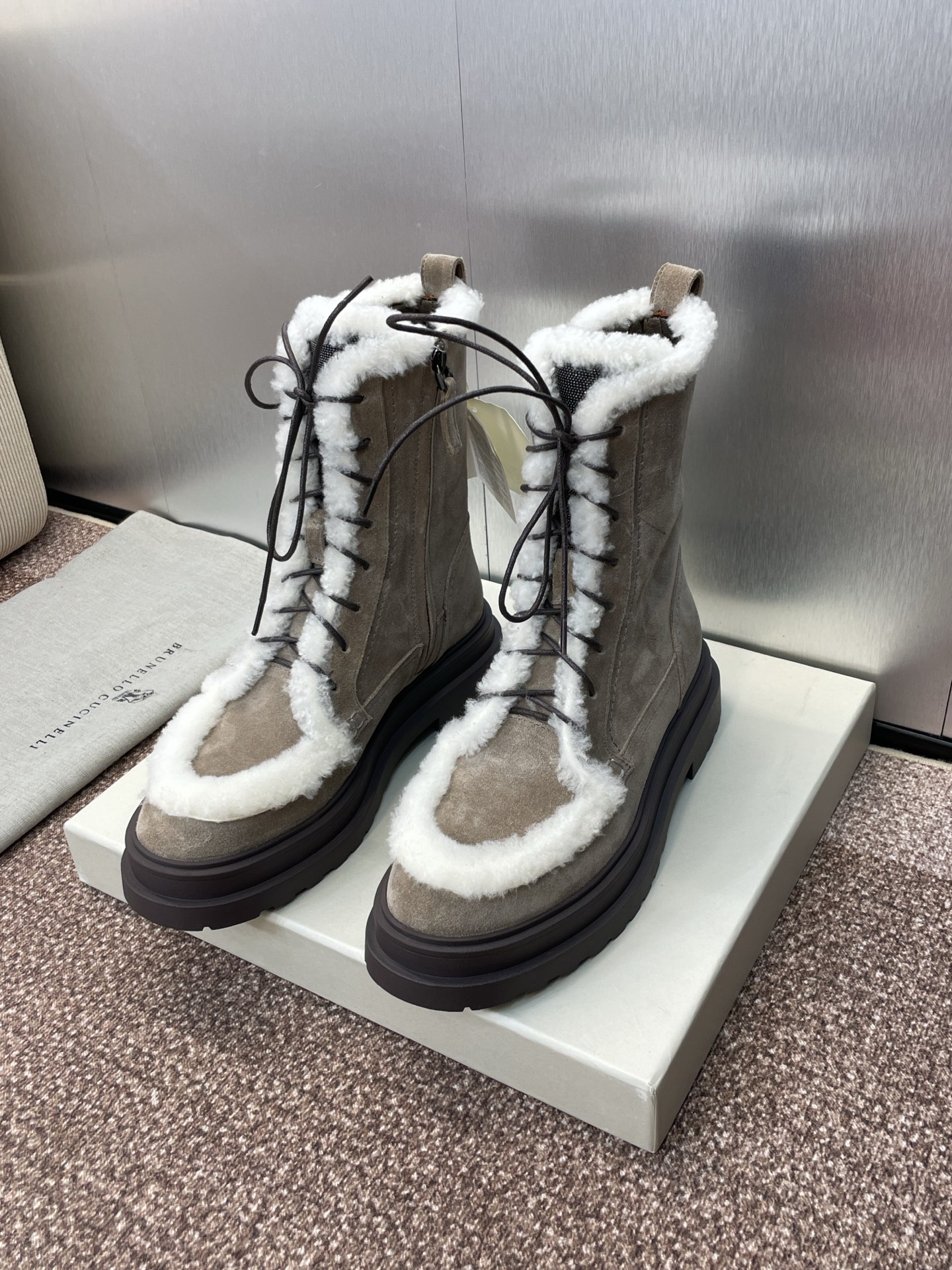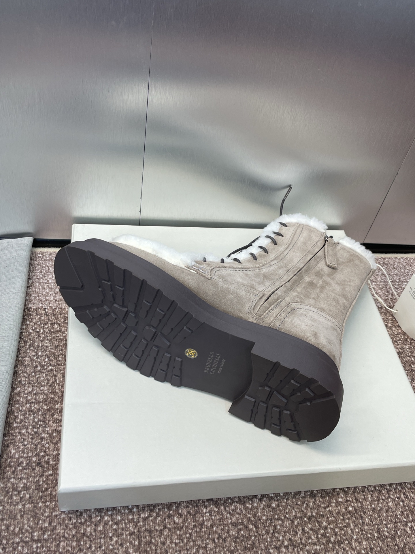 這款鞋子是AAAAA 1:1 質量(非常棒). 使用了和原版一模一樣的材料. 商標部分也保持了和Brunello Cucinelli一樣. 圖片拍攝是實物鞋子拍攝, 您所收到的實物保證和我們圖片一模一樣.